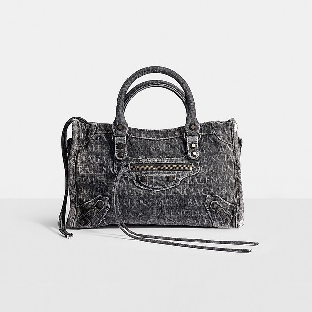 Balenciaga Le City 褪色牛仔机车包