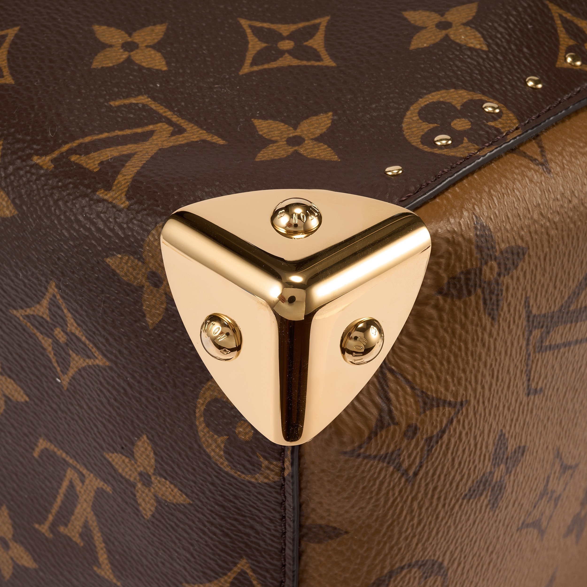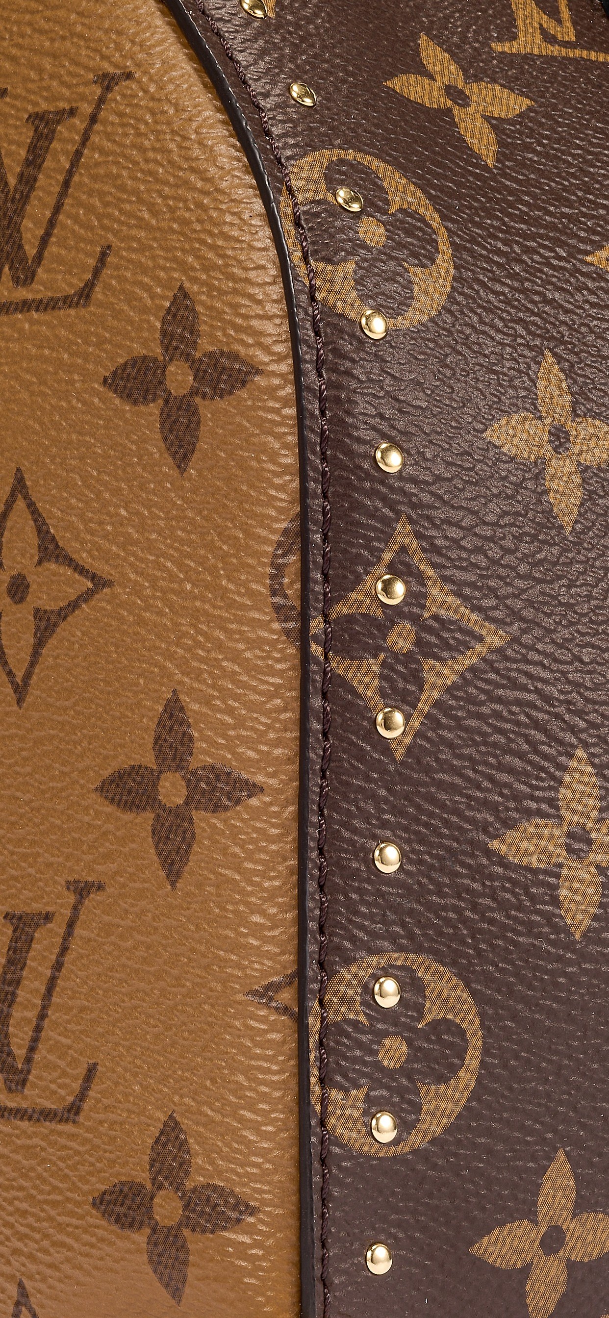 包包采用棕褐色 Monogram 帆布包身主体拼接 Monogram Reverse 帆布侧面,双色设计更显年轻活泼。