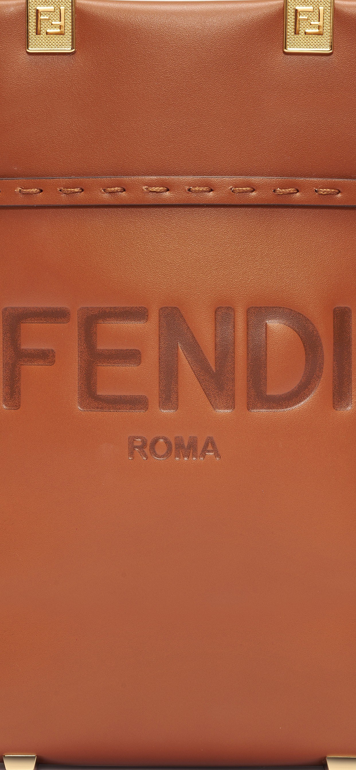 包身中央运用热压烫印工艺呈现「FENDI ROMA」字样,不仅具有加深效果,还带有轻微的起伏触感,高调标出品牌 DNA。