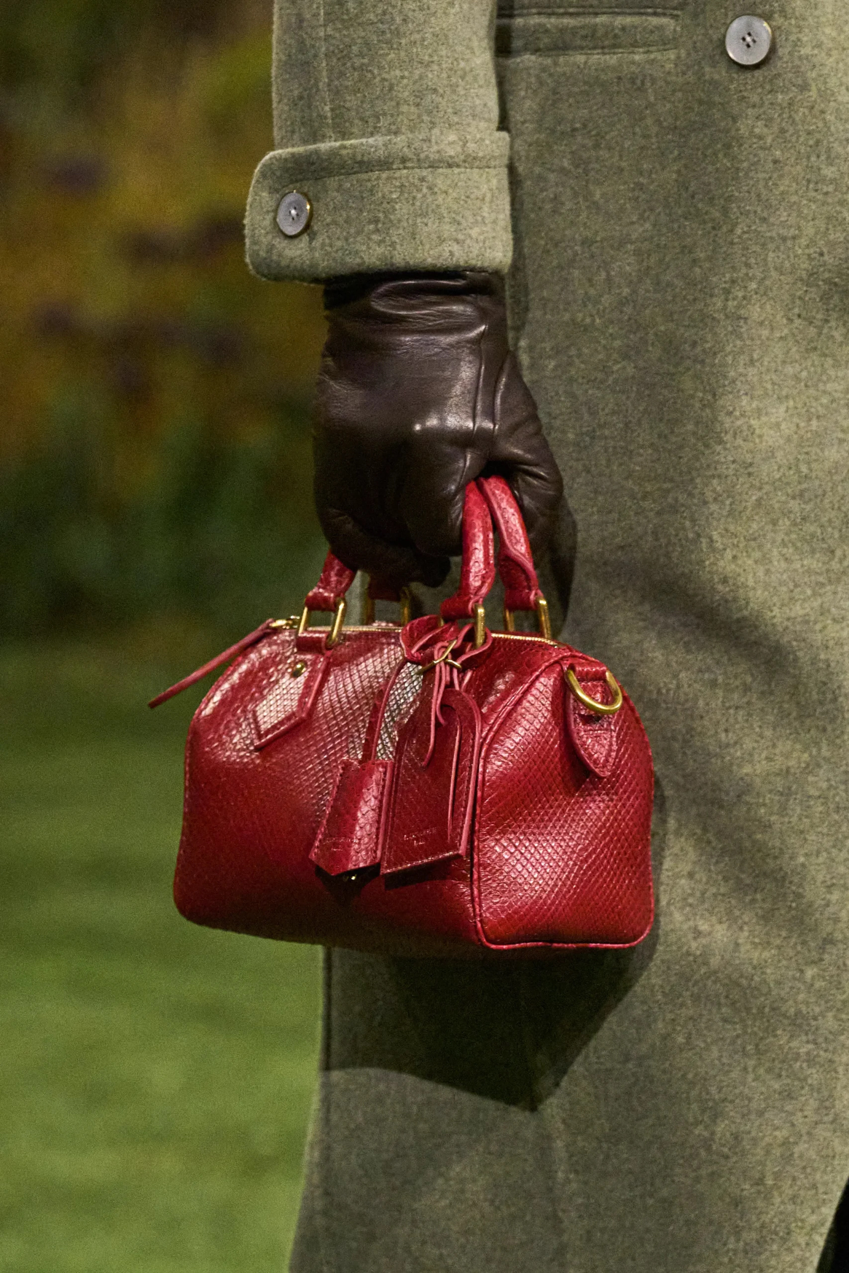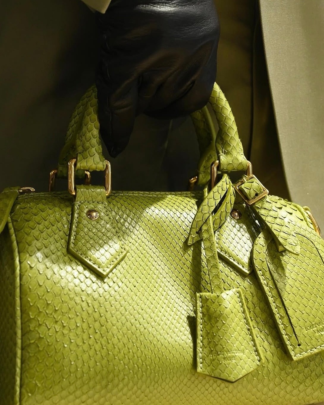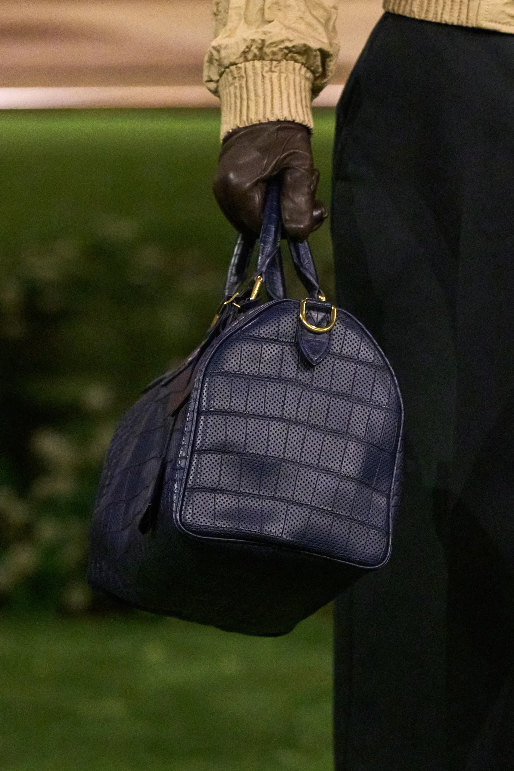 男士系列标志性 Speedy P9 手袋本季推出双面可翻转款式,一面采用苹果绿、无花果色、银色或云空蓝色 Buttersoft 皮革,另一面为纯色绗缝皮革,可拆卸金属手柄可灵活固定于任意一侧,提供25、30、40三种尺寸。