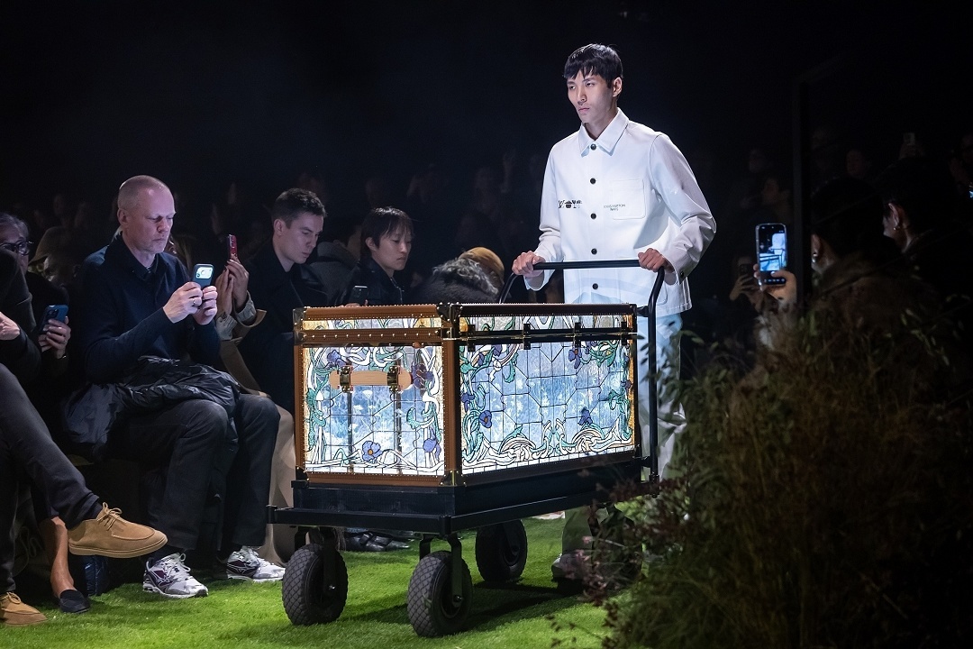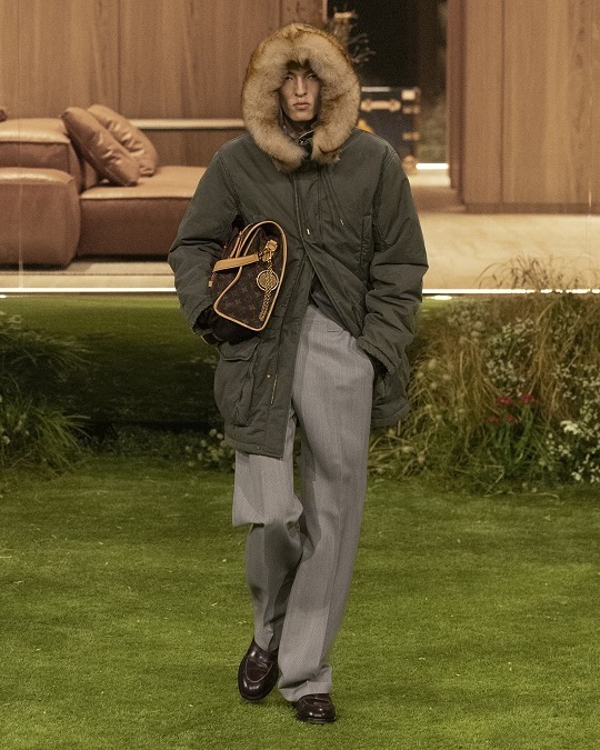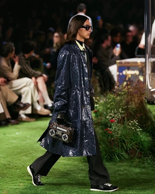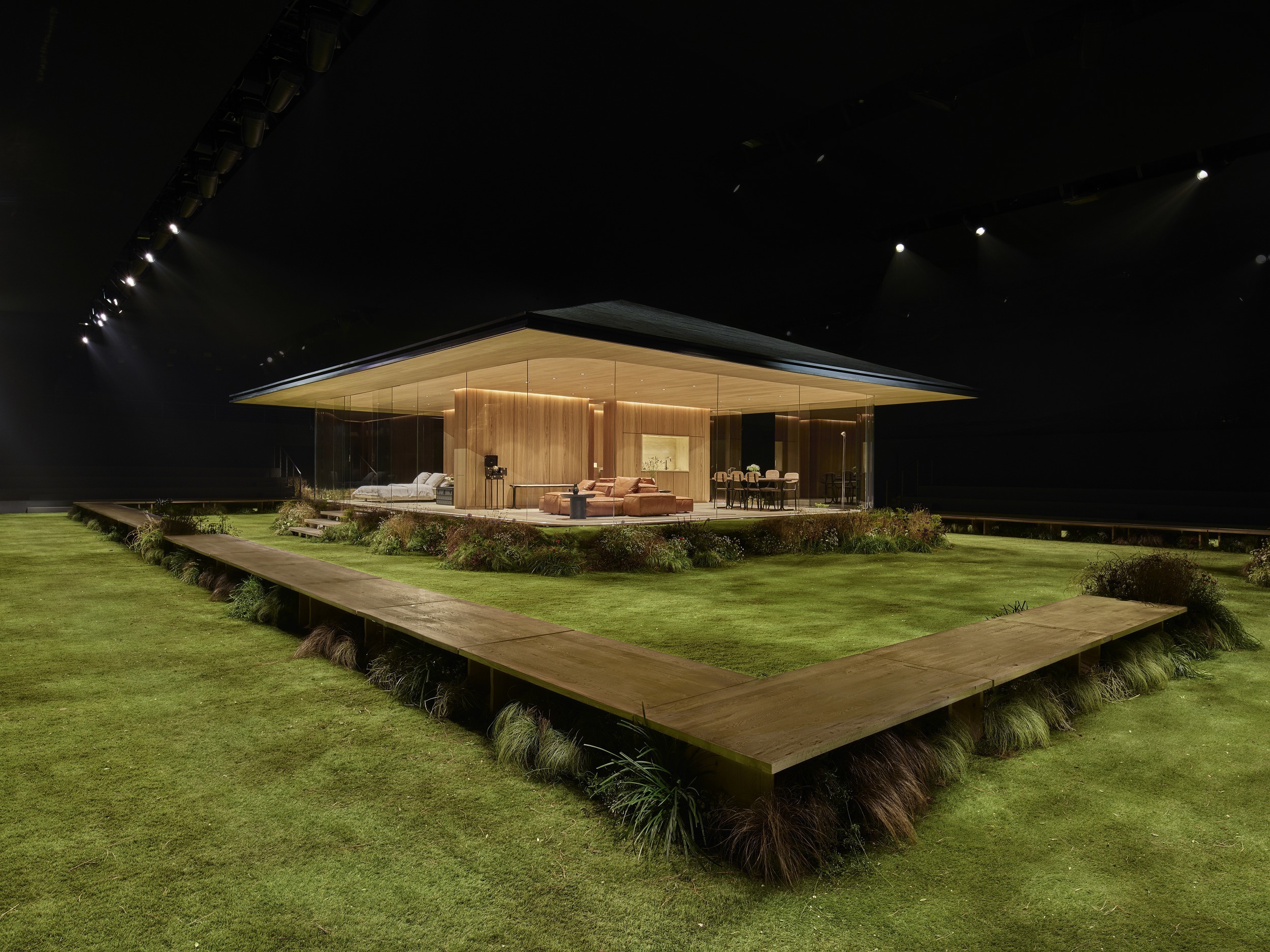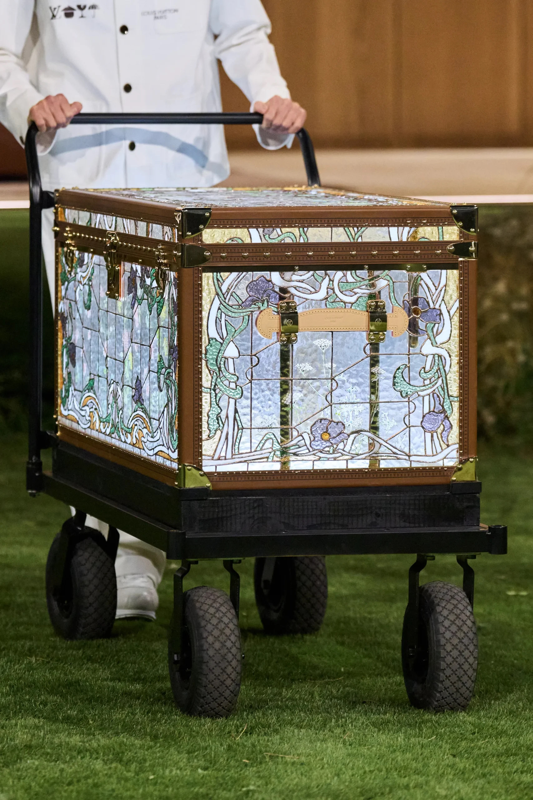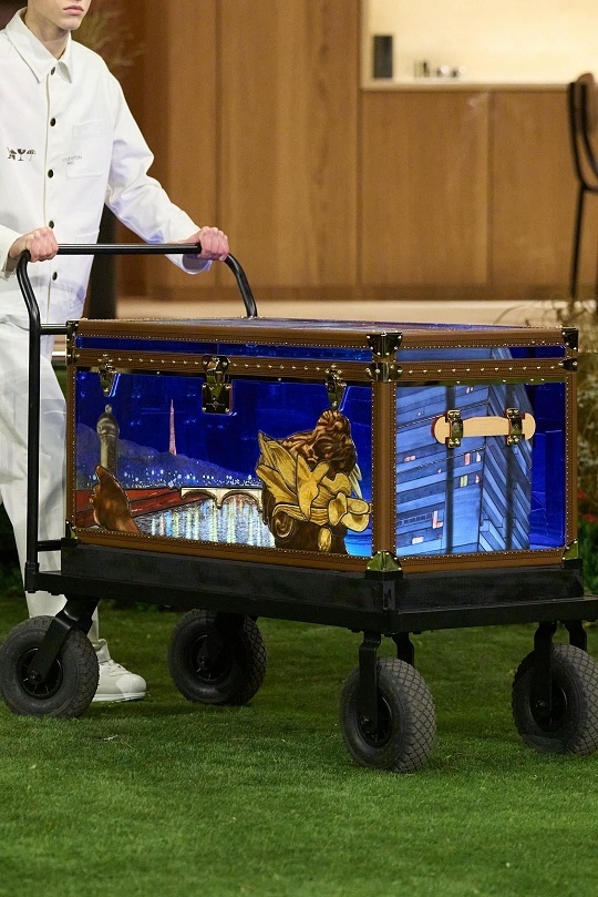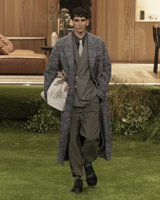 本季秀场选址于巴黎动植物驯化园,秀场中央布置一座由 Pharrell Williams 与日本建筑事务所 Not A Hotel 共同构思的概念性居所「DROPHAUS」,被设想为坐落于繁茂花园中的永恒未来生活空间,内部陈设 Pharrell Williams 为本次秀场专属设计的 HOMEWORK 家具系列,勾勒出路易威登绅士的未来生活图景。