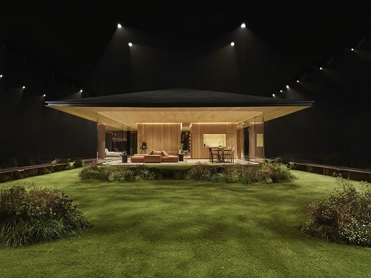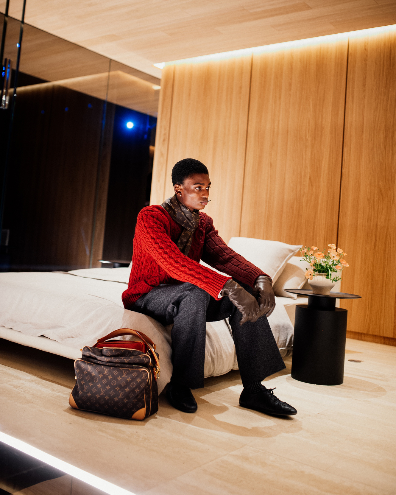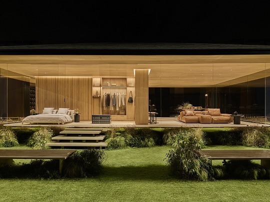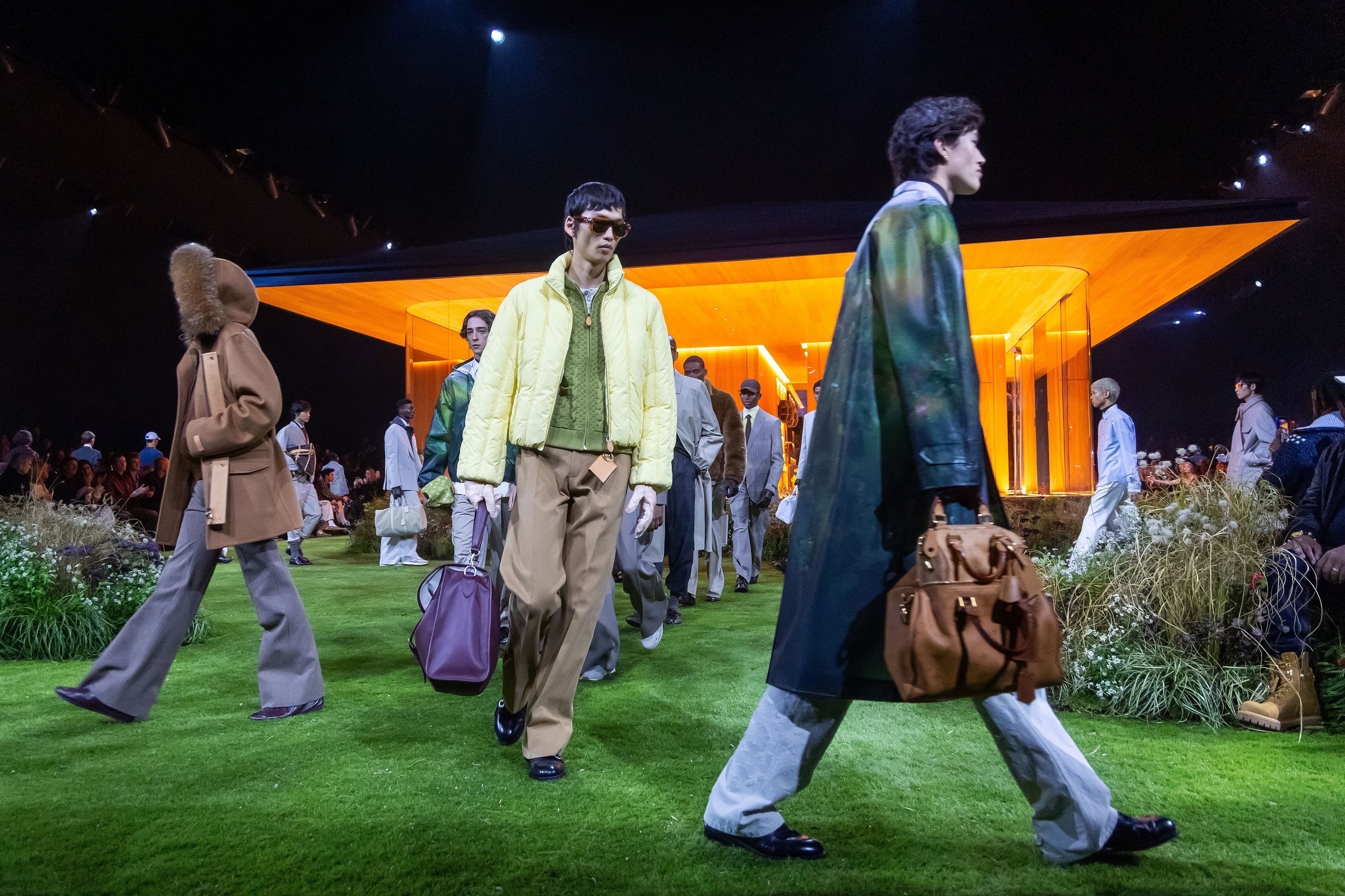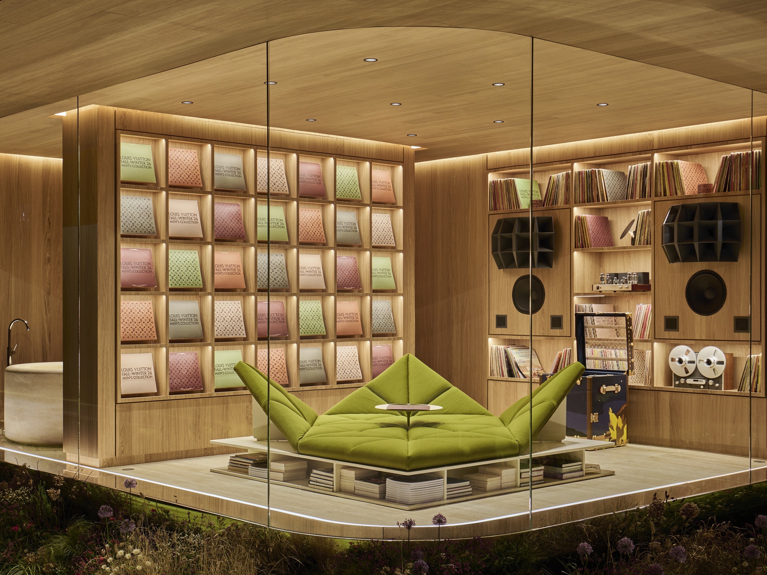 本季秀场选址于巴黎动植物驯化园,秀场中央布置一座由 Pharrell Williams 与日本建筑事务所 Not A Hotel 共同构思的概念性居所「DROPHAUS」,被设想为坐落于繁茂花园中的永恒未来生活空间,内部陈设 Pharrell Williams 为本次秀场专属设计的 HOMEWORK 家具系列,勾勒出路易威登绅士的未来生活图景。