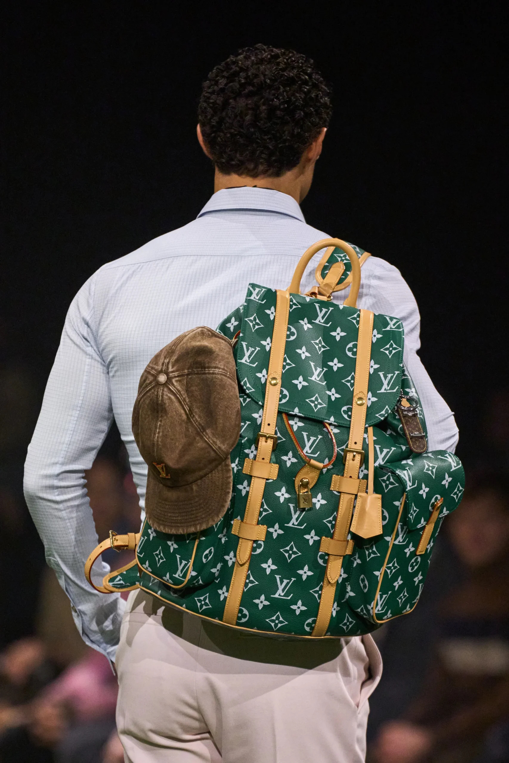 Christopher P9 双肩包采用 Monogram 皮革材质登场,延续2023年初代 Speedy P9 手袋的红黄蓝绿原色配色。全新 Dandy Duffle 旅行袋配备 VVN 皮革包角,同时推出 Malletier 皮革版本。Mini Shopper 手袋采用 VVN 色调鳄鱼皮革制作而成,搭配古铜色金属 LOUIS VUITTON 徽标,皮革色调会随着时间流逝而自然变深,呈现独特的使用印记。