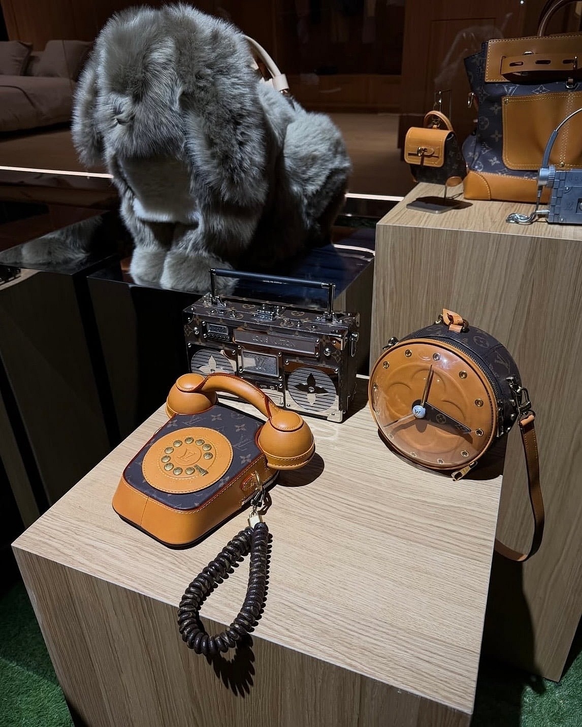 创意款包包受到复古未来主义风潮启发,采用手提音响、闹钟、老式固定电话等造型登场,兔形剪羊毛手袋致意巴黎塞纳河左岸的动物墓园。