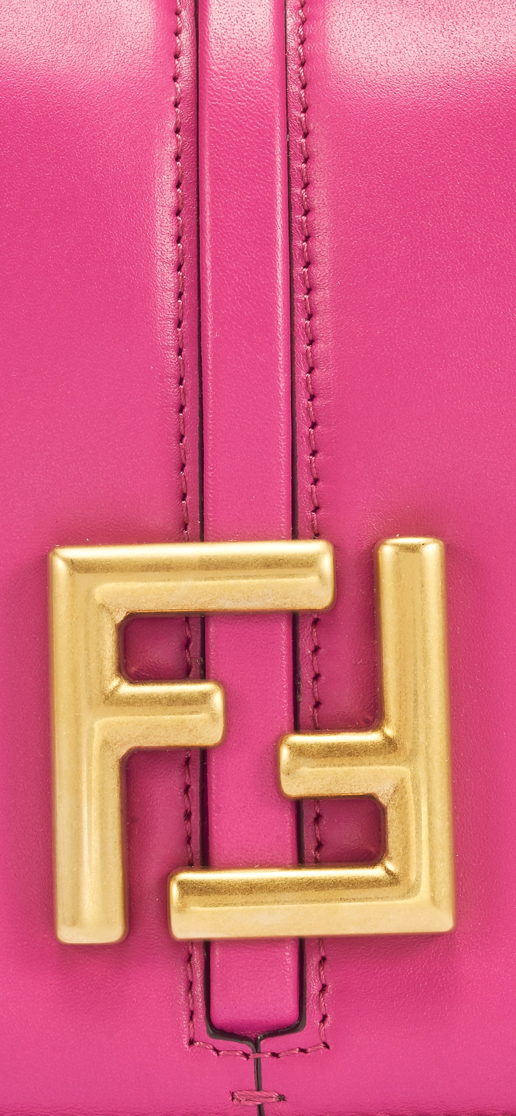 本款包袋最醒目的装饰元素莫过于一枚 FF 复古金色包扣,衬以一条纵贯包身的皮带设计。棱角分明的包扣字母搭配圆润包型,营造出反差美感。