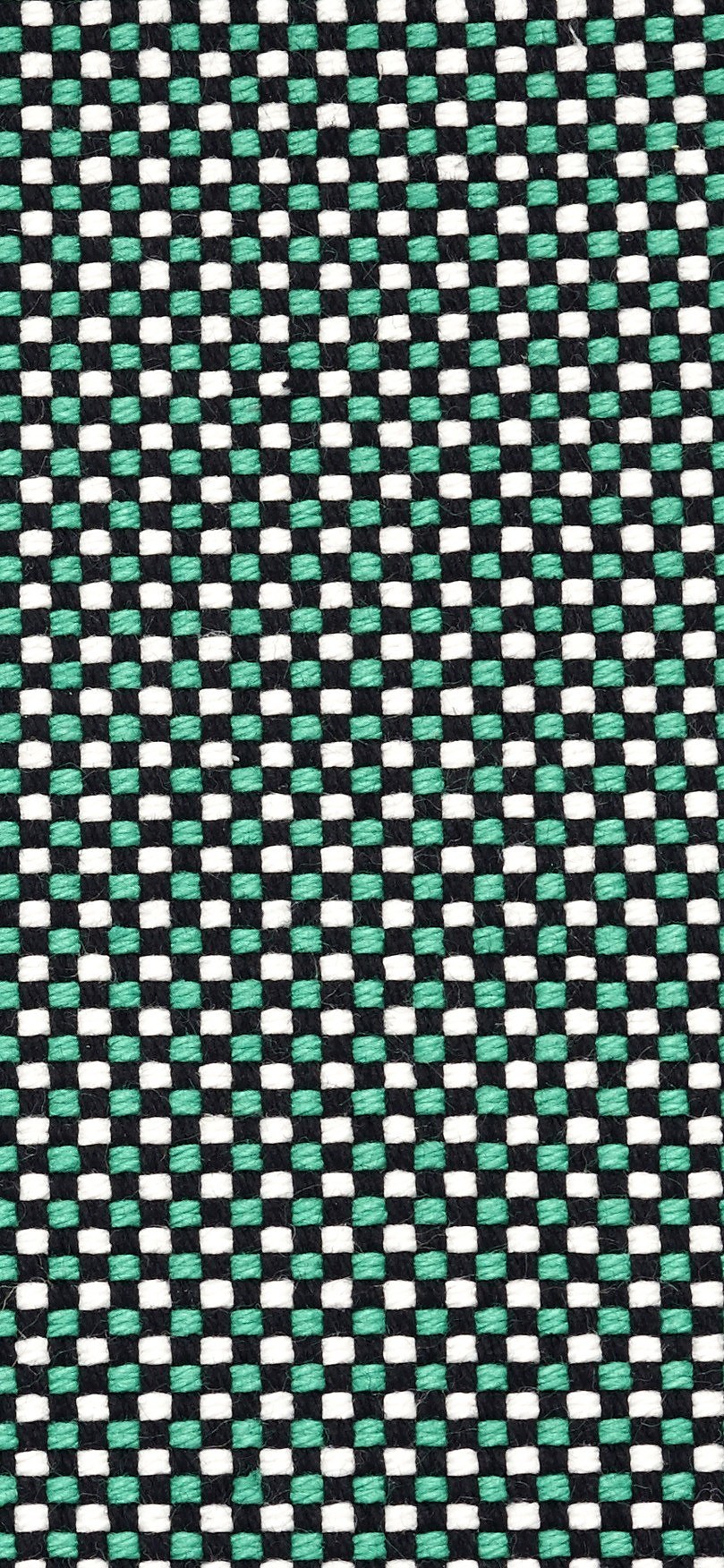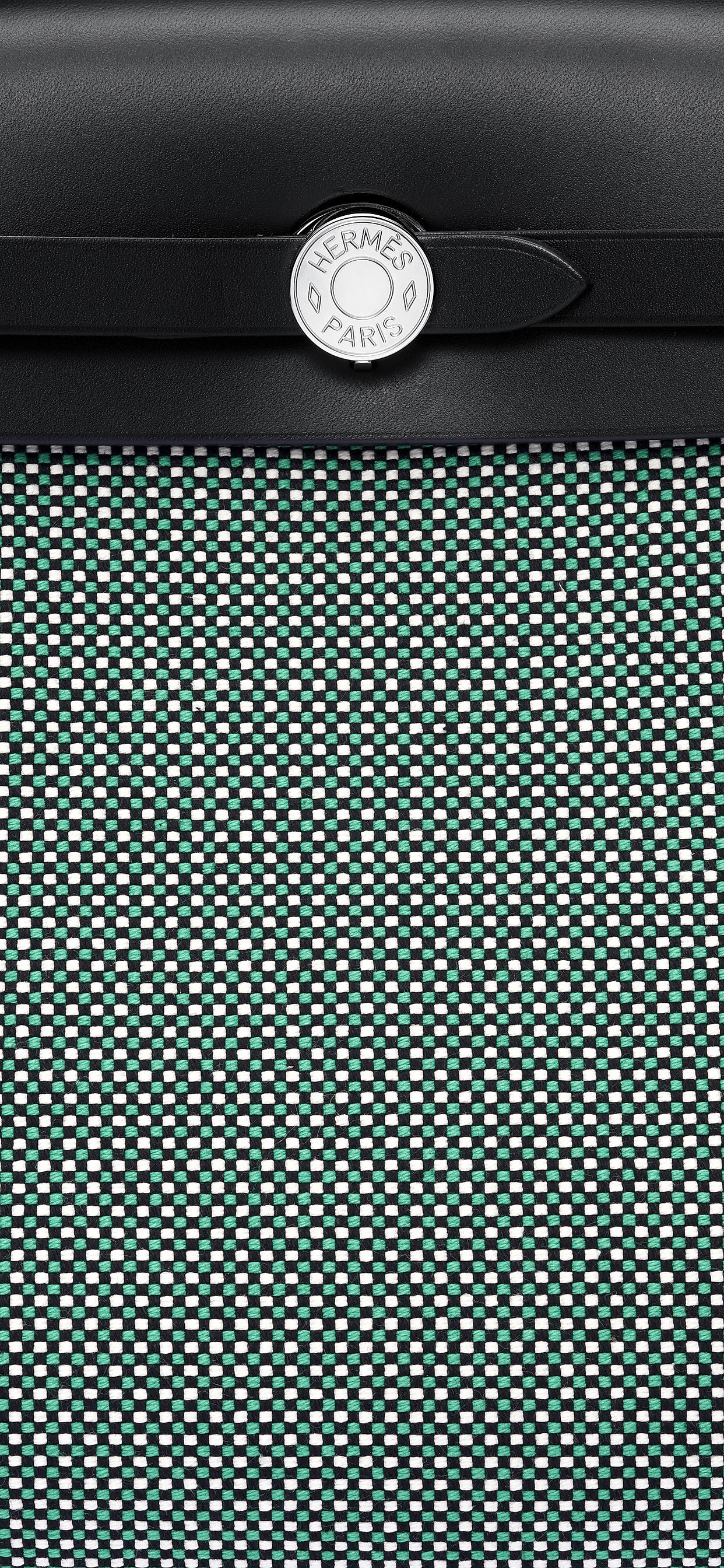 黑、白、绿3色梭织工艺清晰展现 Quadrille 帆布从横交错的网格纹理,整体色调和谐而内敛。帆布背面涂有保护层以加强硬挺质感,提高耐用度并赋予其防水性能,颜值与实用性并存。