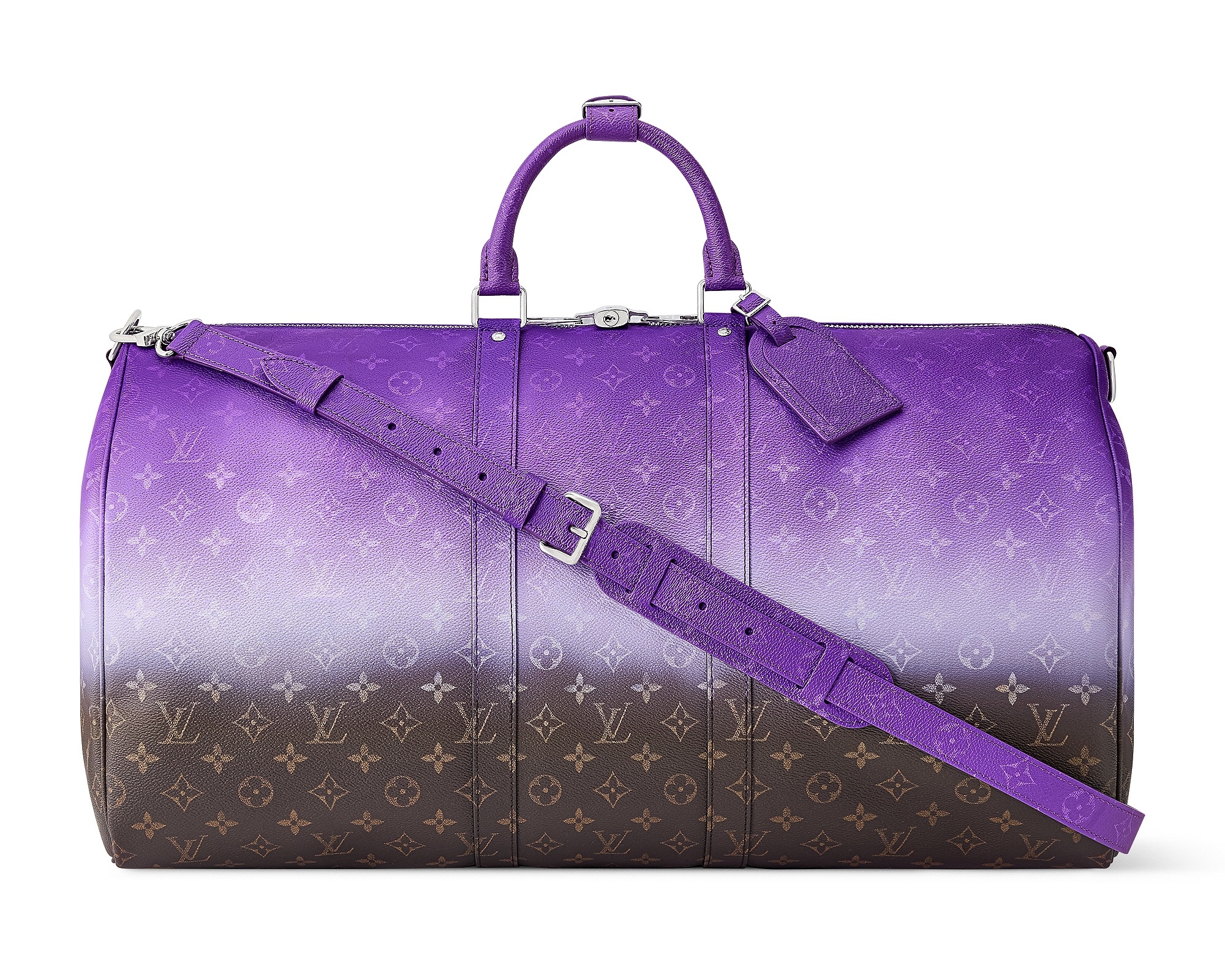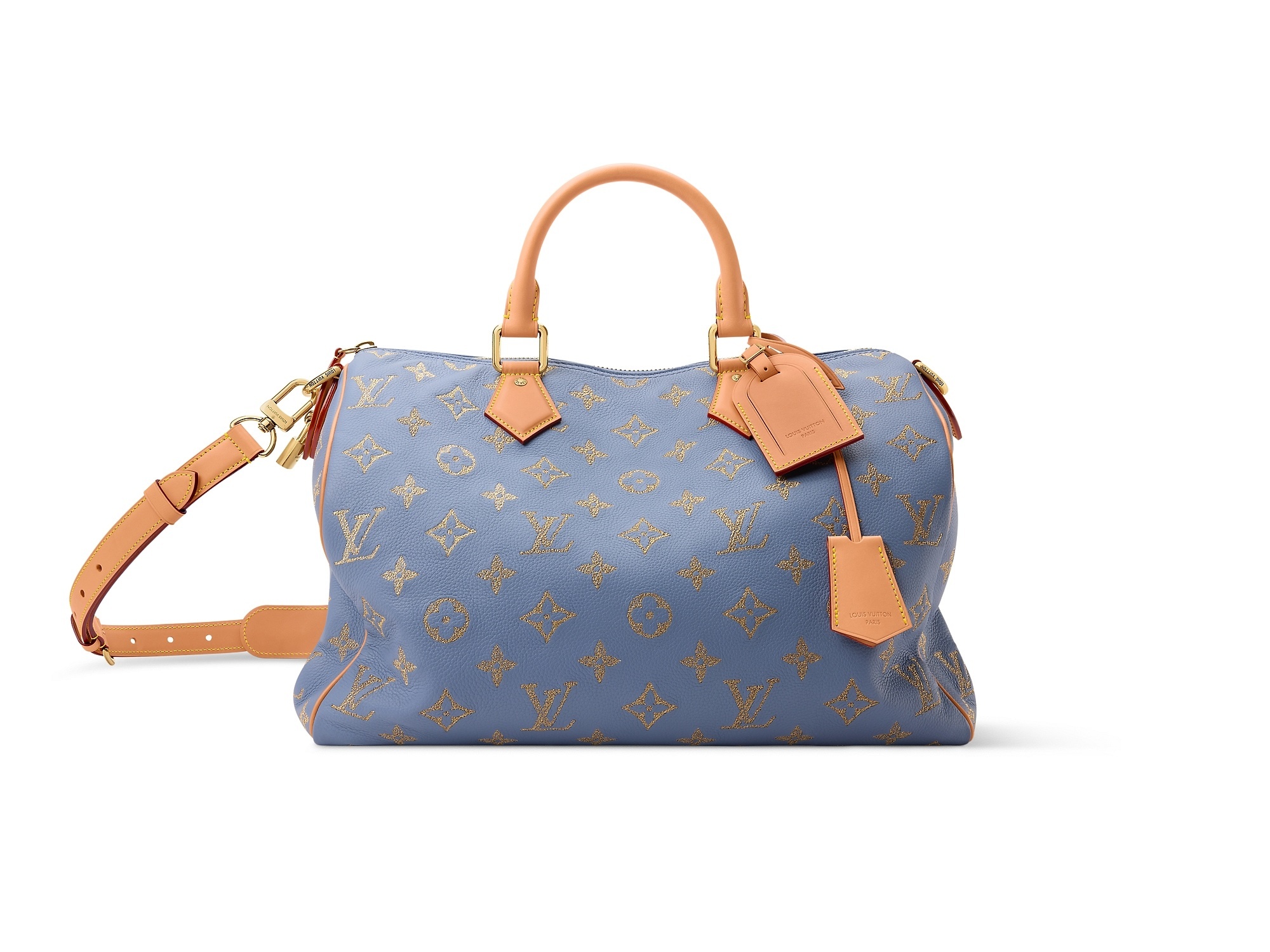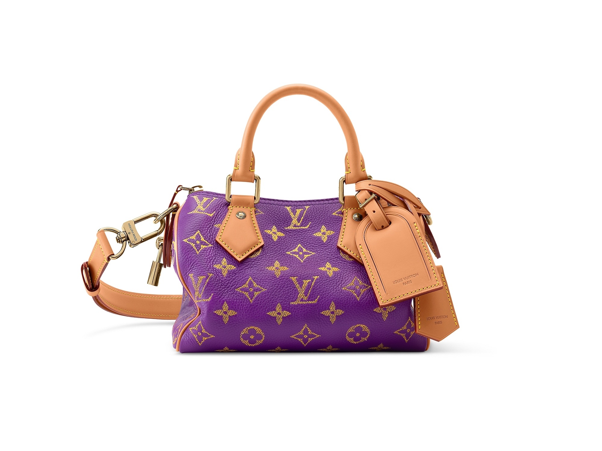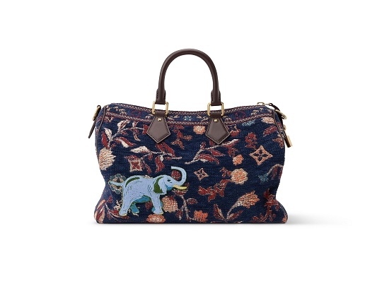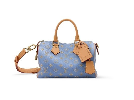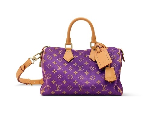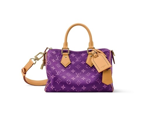 紫色和蓝色款 Speedy P9 手袋通过金属线刺绣工艺在皮革上打造金属光泽 Monogram 图案,灵感来自印度金线刺绣工艺,诠释精致优雅的丹迪美学风格。