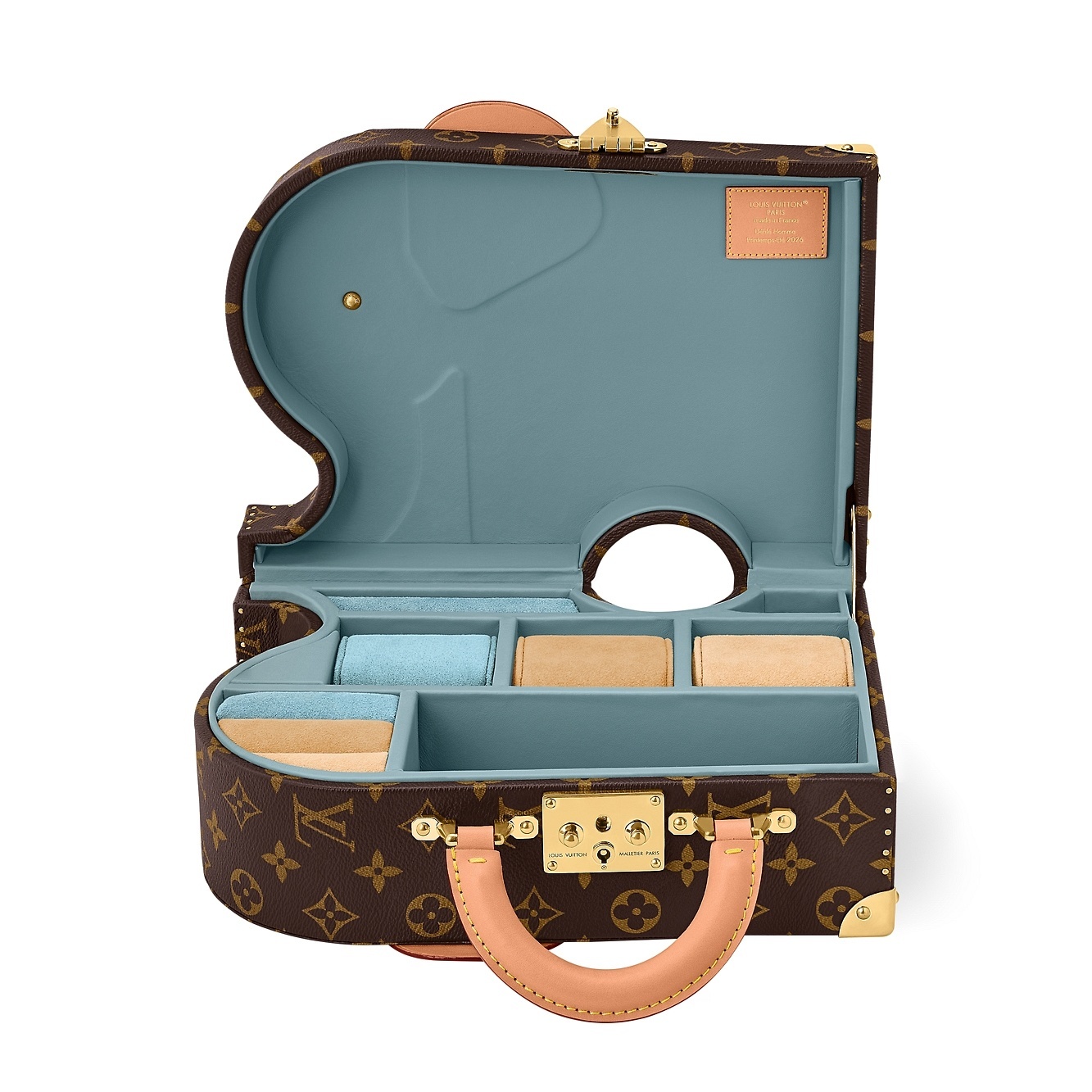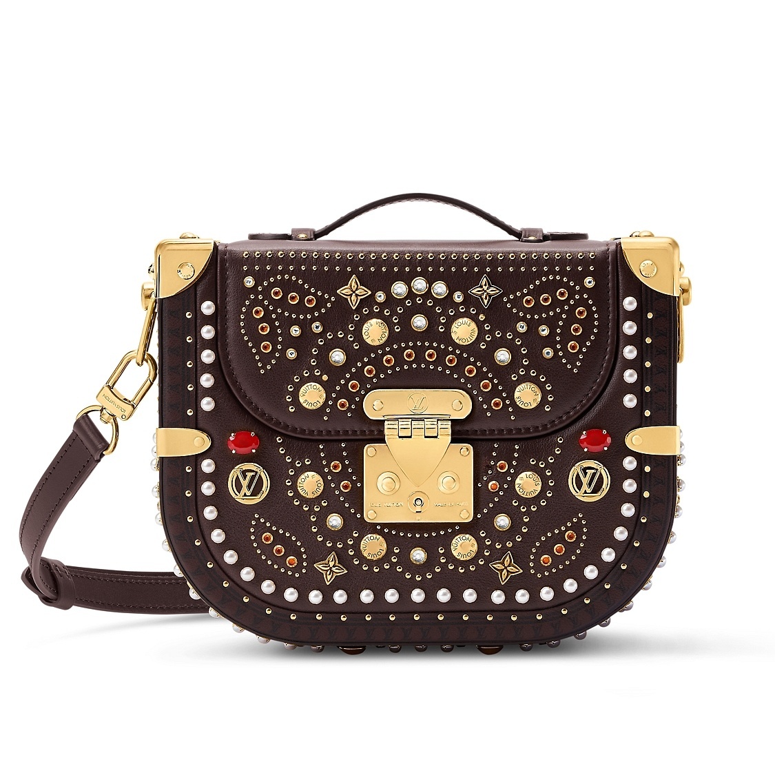 Montsouris LV Adornments 硬箱通体铺镶树脂人造石、珠饰和路易威登经典铆钉,约1500颗饰钉和宝石构筑出充满异域情调的海娜彩绘纹样,致敬印度传统珠宝匠艺。