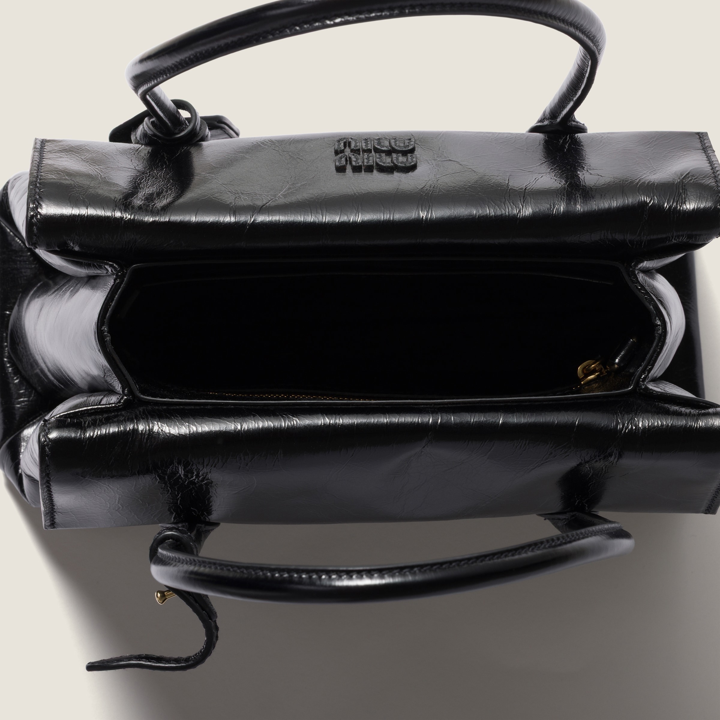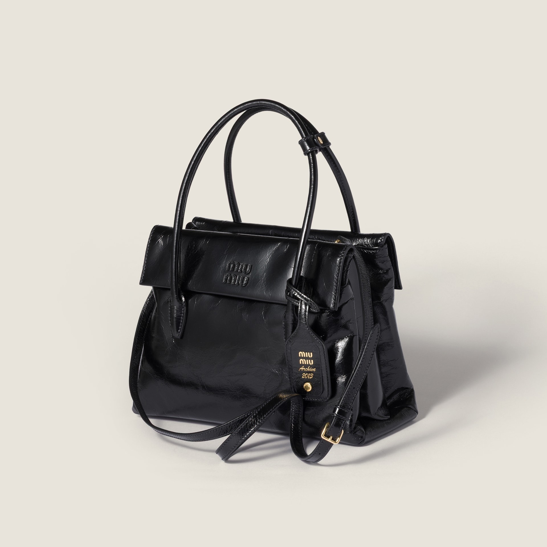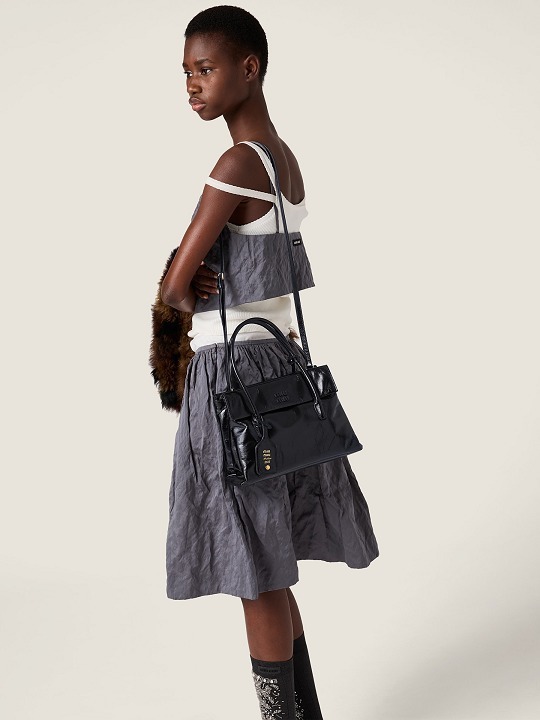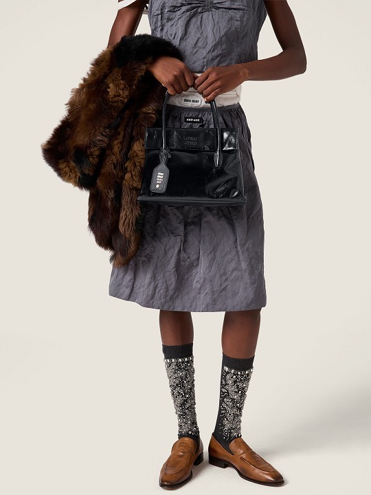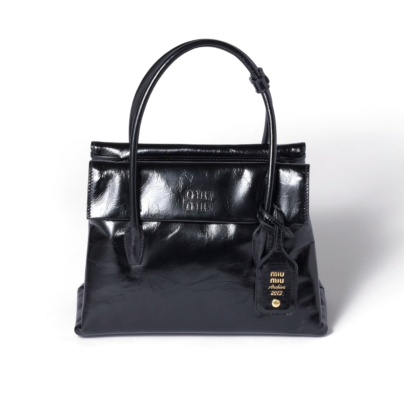 Miu Miu Solitaire 手袋在2025秋冬秀场上首次亮相,灵感来自品牌2013年典藏包款。包包的廓形汲取自复古公文包构型,最大亮点是前后对称的双翻盖设计,管状皮革双提手营造出优雅又古灵精怪的气质,All black 全黑配色流露隽永格调。