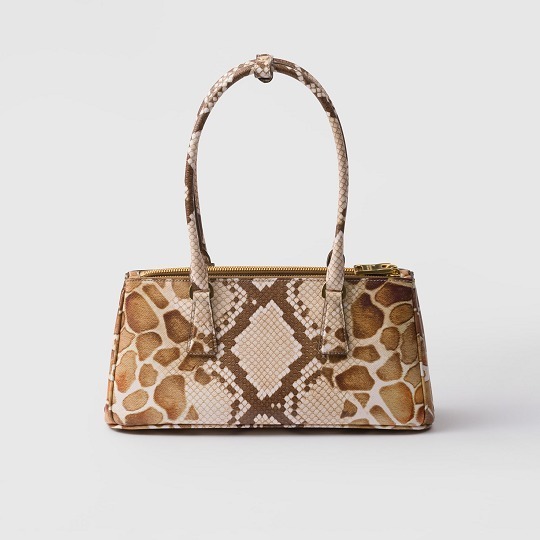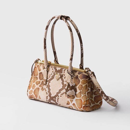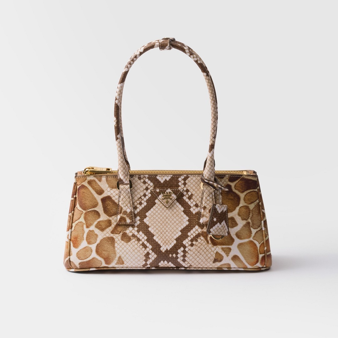 PRADA Galleria 手袋家族在2025年迎来新成员,新作将经典杀手包的比例调整为横款 East-West 廓形,并将手柄延长至可以肩背的长度,充满异域情调的动物纹印花令人联想到极繁主义盛行的千禧年代。
