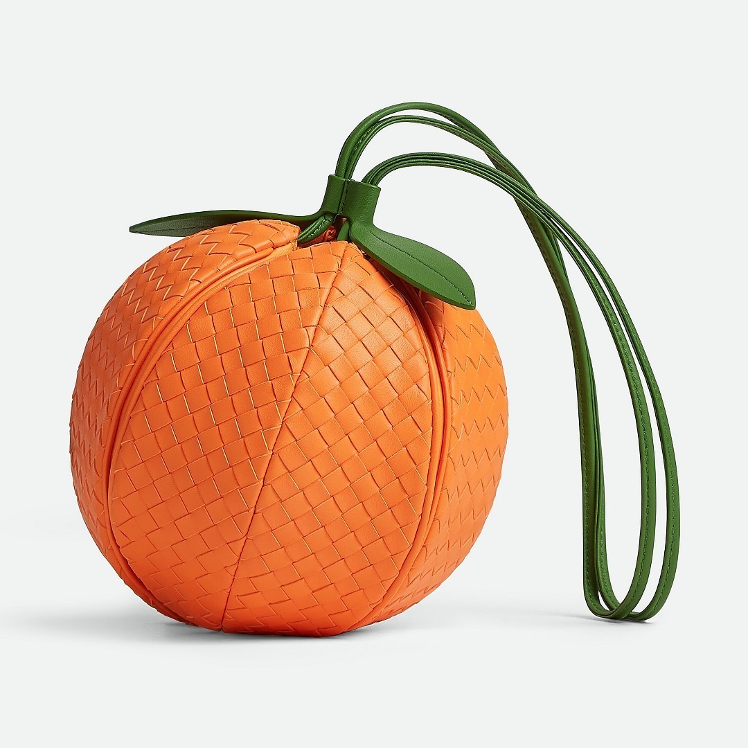 Bottega Veneta Orange Multi-Pouch 手袋出自2025夏季系列,以生动有趣的水果造型诠释品牌精湛的皮革技艺和匠心精神。包包采用品牌标志性Intrecciato 编织羊皮革塑造圆润饱满的橘子🍊廓形,最大亮点是包包真的跟橘子一样可以剥成四瓣,每一瓣都设有拉链开合。顶部的绿色叶片巧妙幻化为包包的抽绳束口,明亮撞色营造出鲜活的夏日气息。官价 415,000日元