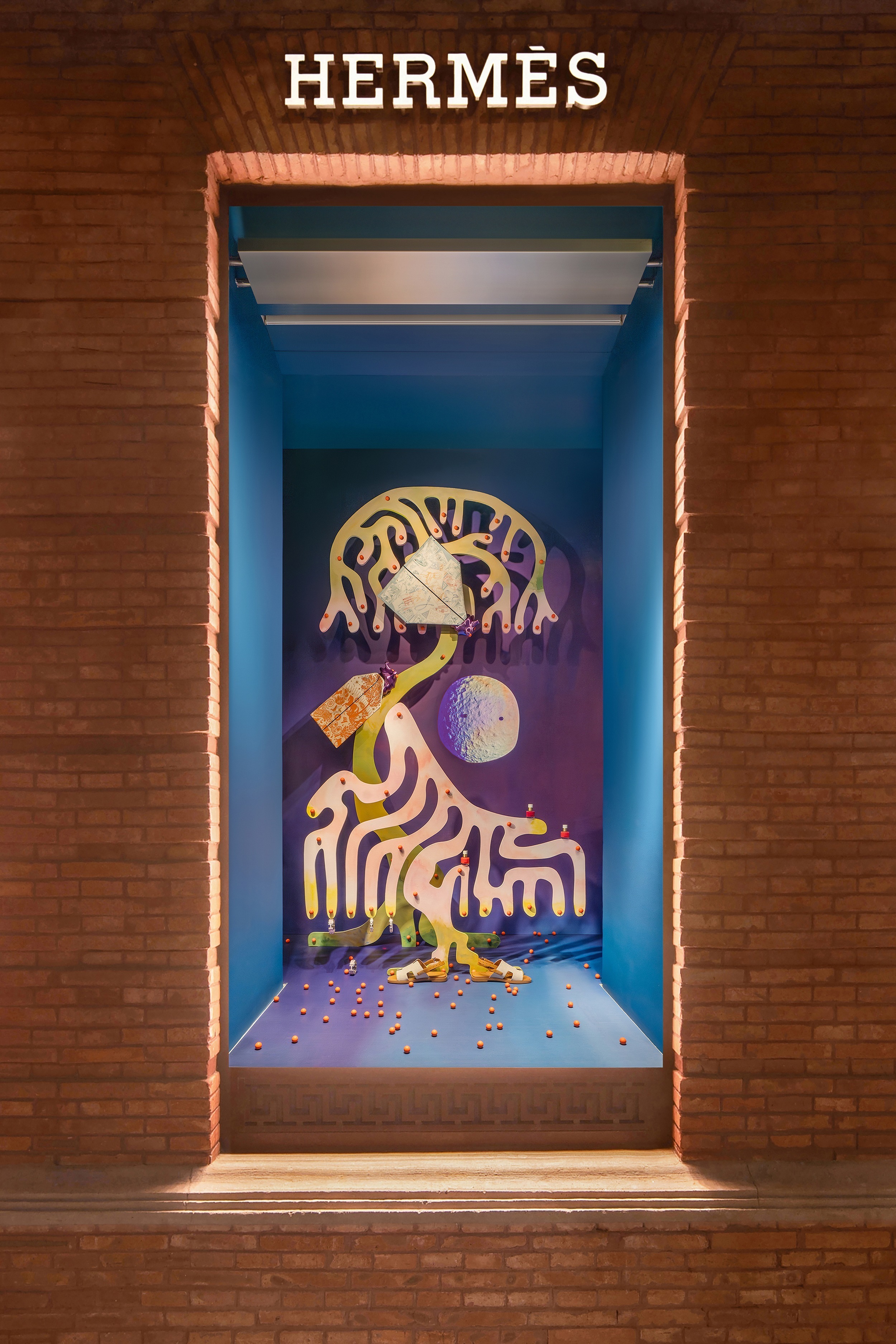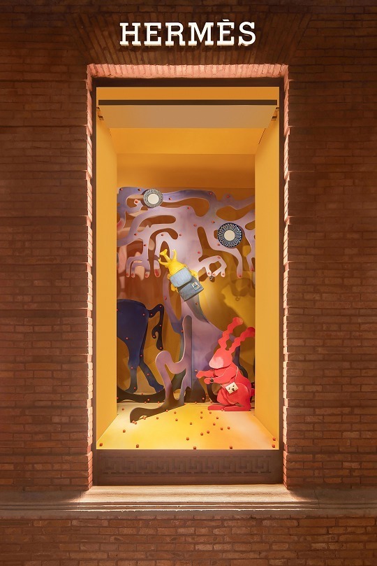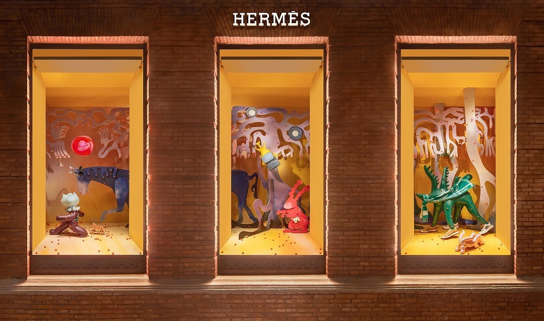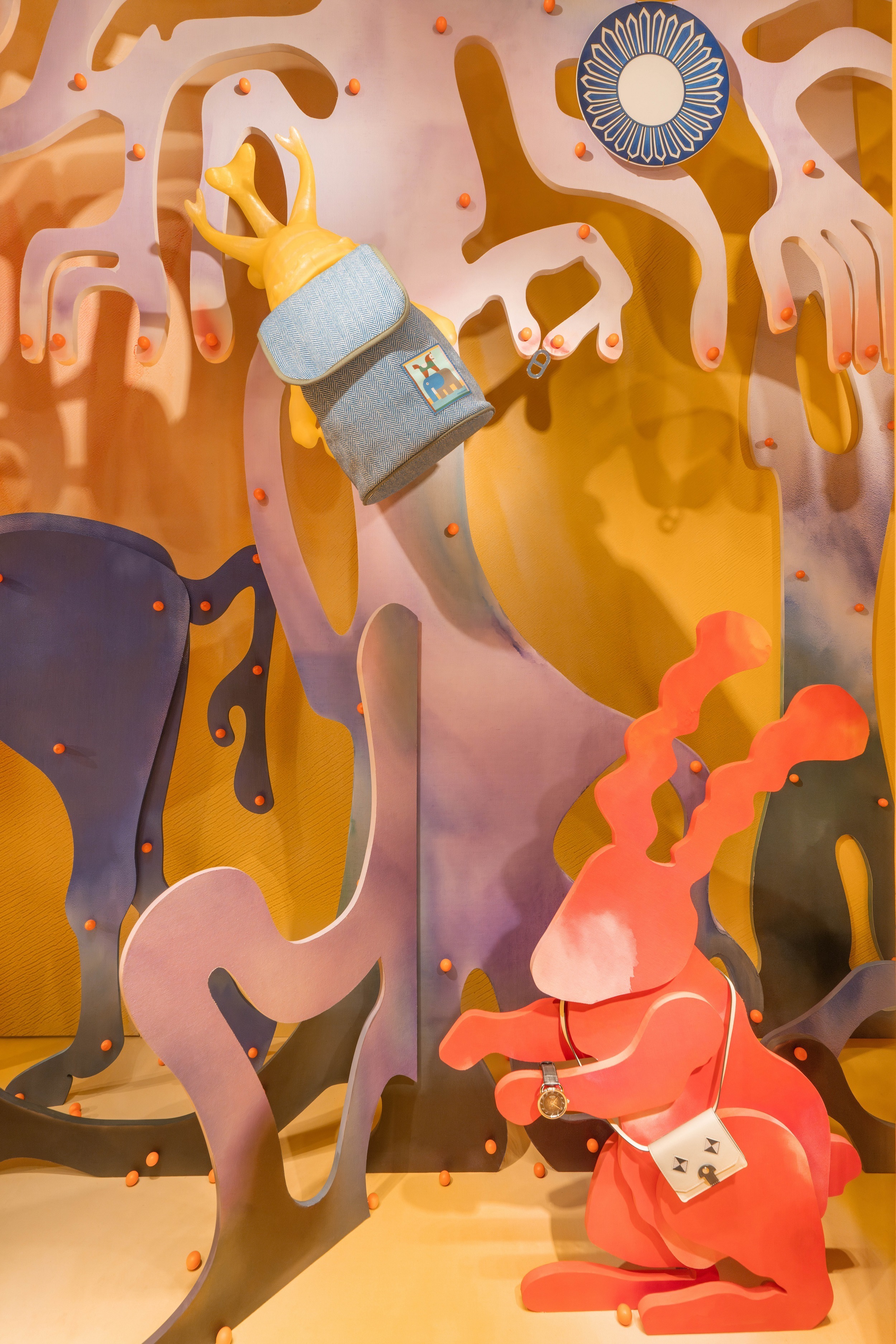 男性世界橱窗通往金光洒落的林径,花灵牵引骏马,阔步前行;动物们以爱马仕物件为奇巧身躯,纷纷汇入春之舞的队列。无论从哪一侧走近,观者都可以随时加入这场通往林间的春日庆典。