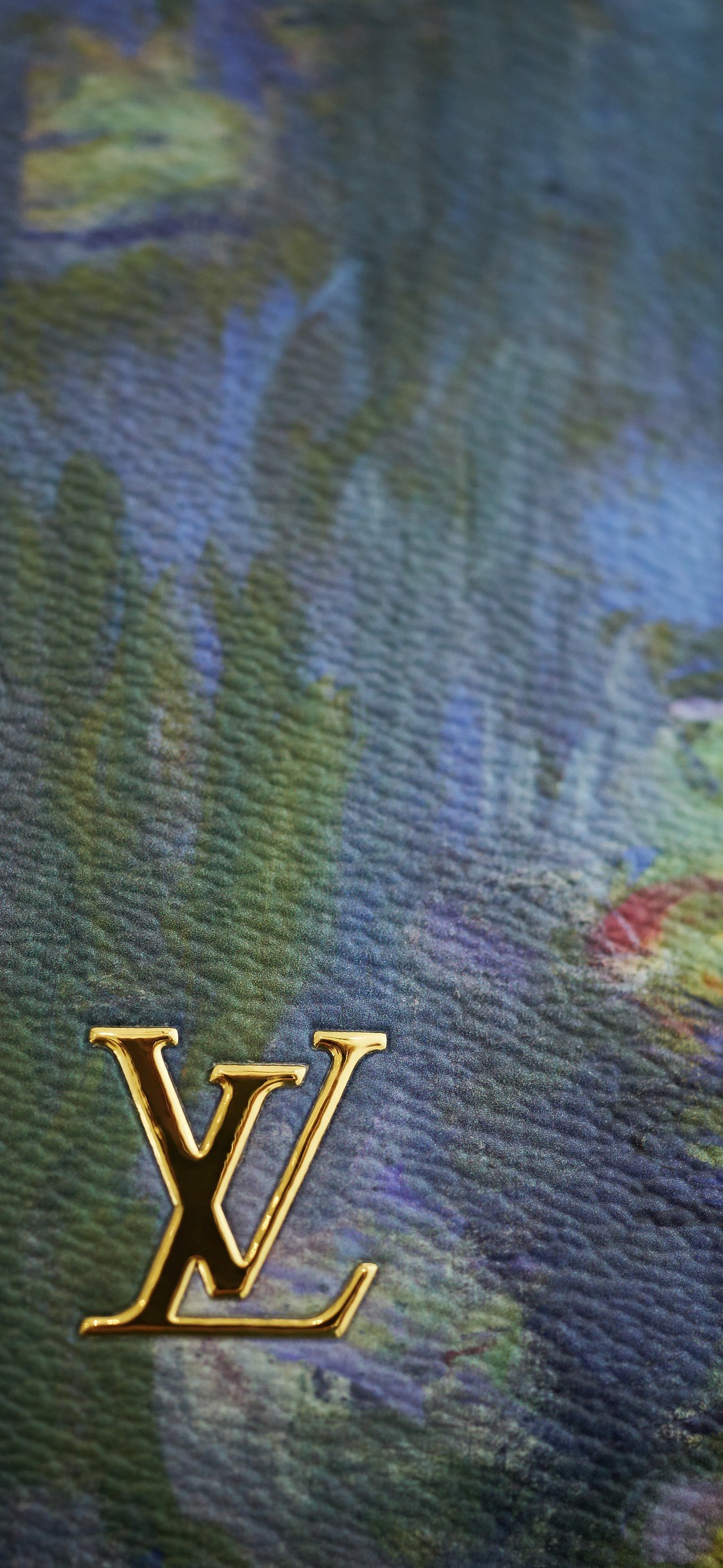 涂层帆布上还原了凹凸的油画质感,正面是莫奈的名字——「MONET」,金属的亮眼与油画色彩形成完美对比。Monogram 图案首次被改动,加入了 Jeff Koons 的首字母缩写 JK 以及他的个人签名,以烫金工艺呈现,是包身闪亮的装饰。