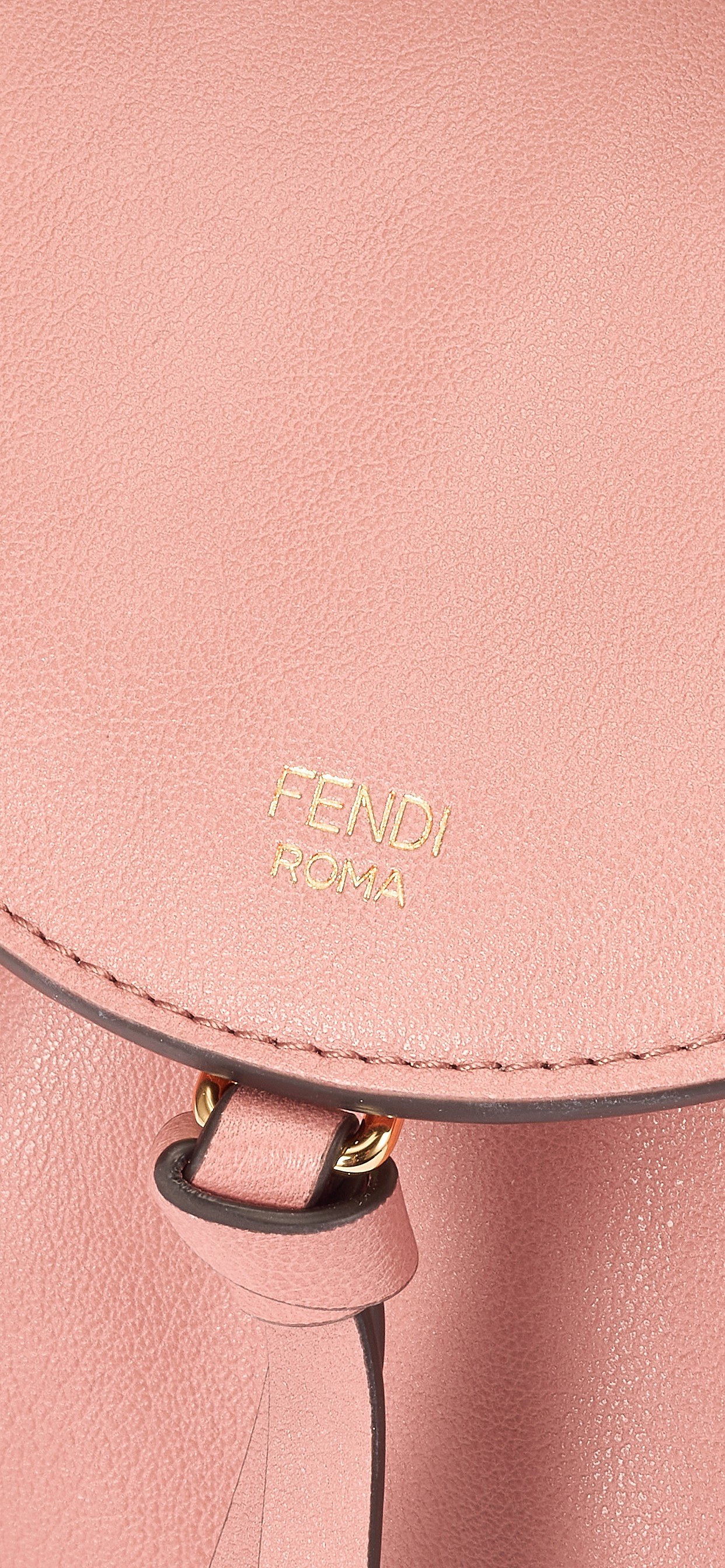 小号 Spy Bag 还配有一根可拆卸可调节的皮革长肩带,可以斜挎解放双手,前侧皮革飘带随步伐摇曳生姿,为包包增添灵动点缀,FENDI ROMA 烫金标识低调宣示品牌身份。
