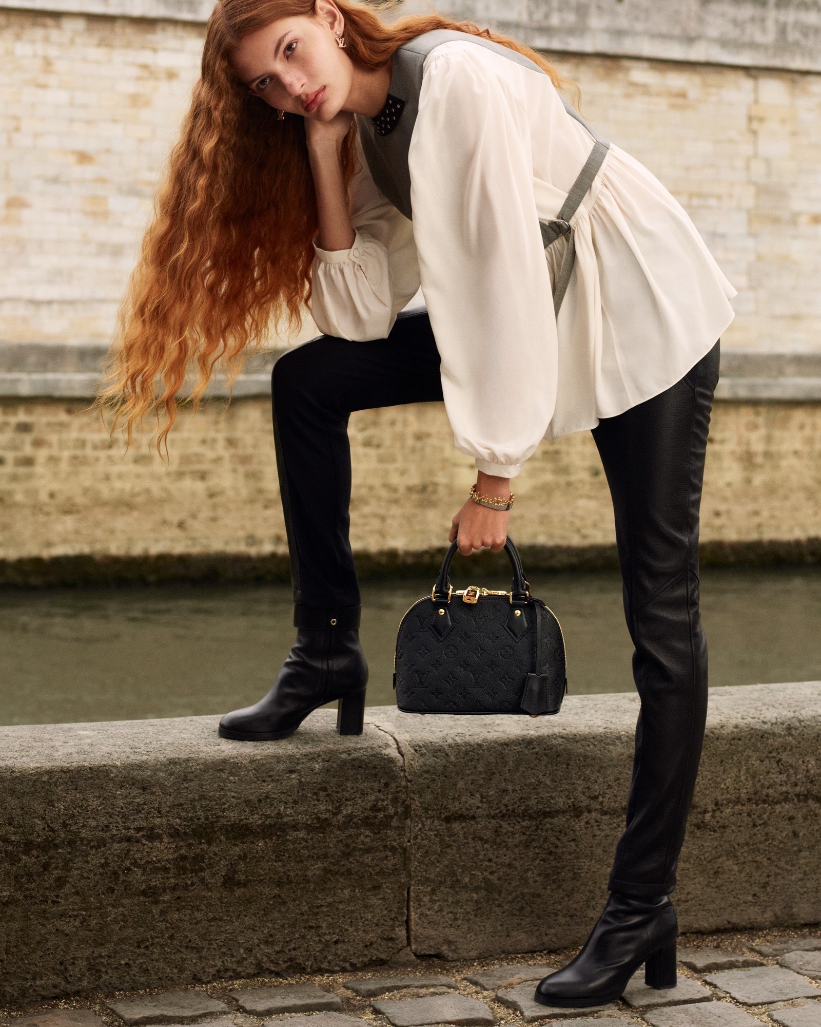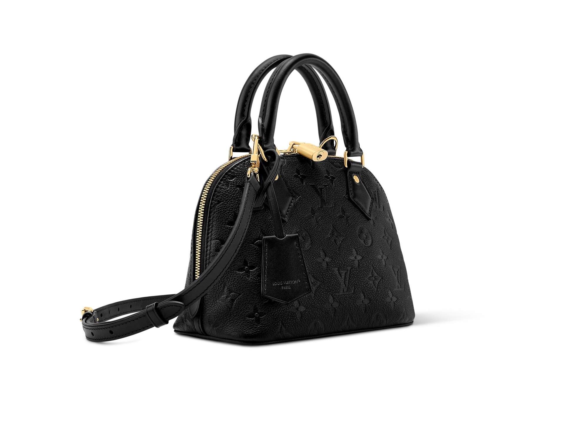 新季 Alma 手袋采用 Monogram Empreinte 压纹牛皮革制作而成,挺括构型点缀经典钥匙包与挂锁,致意1934年 Square 手袋设计,可拆卸肩带实现多种背法,同样推出中号和小号2种尺寸,耀目金属件完善考究格调。
