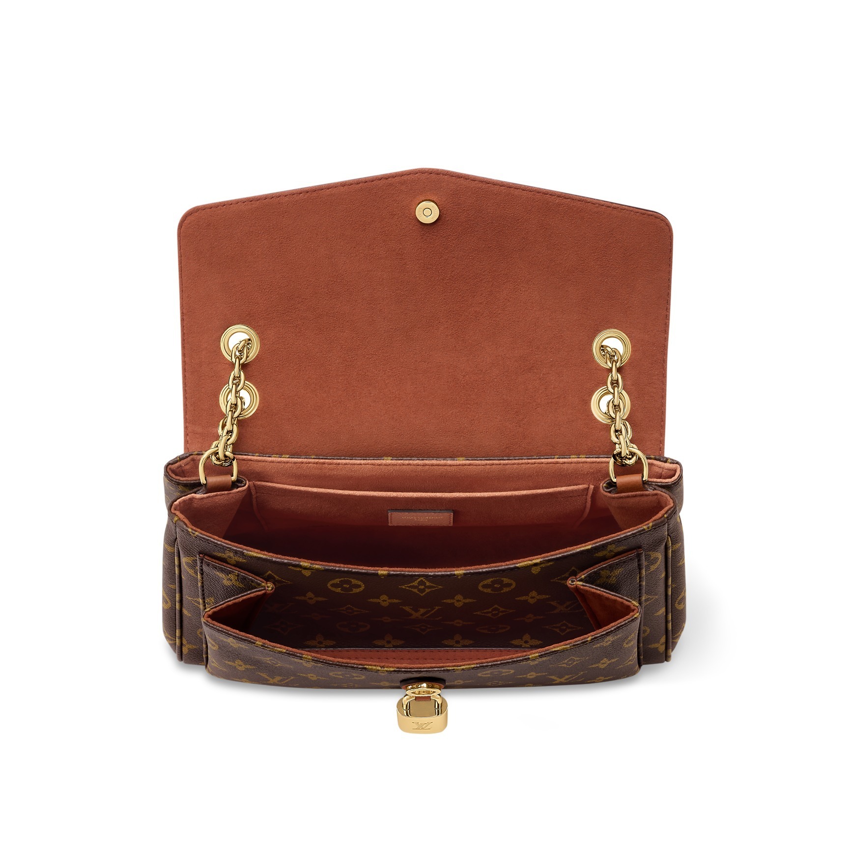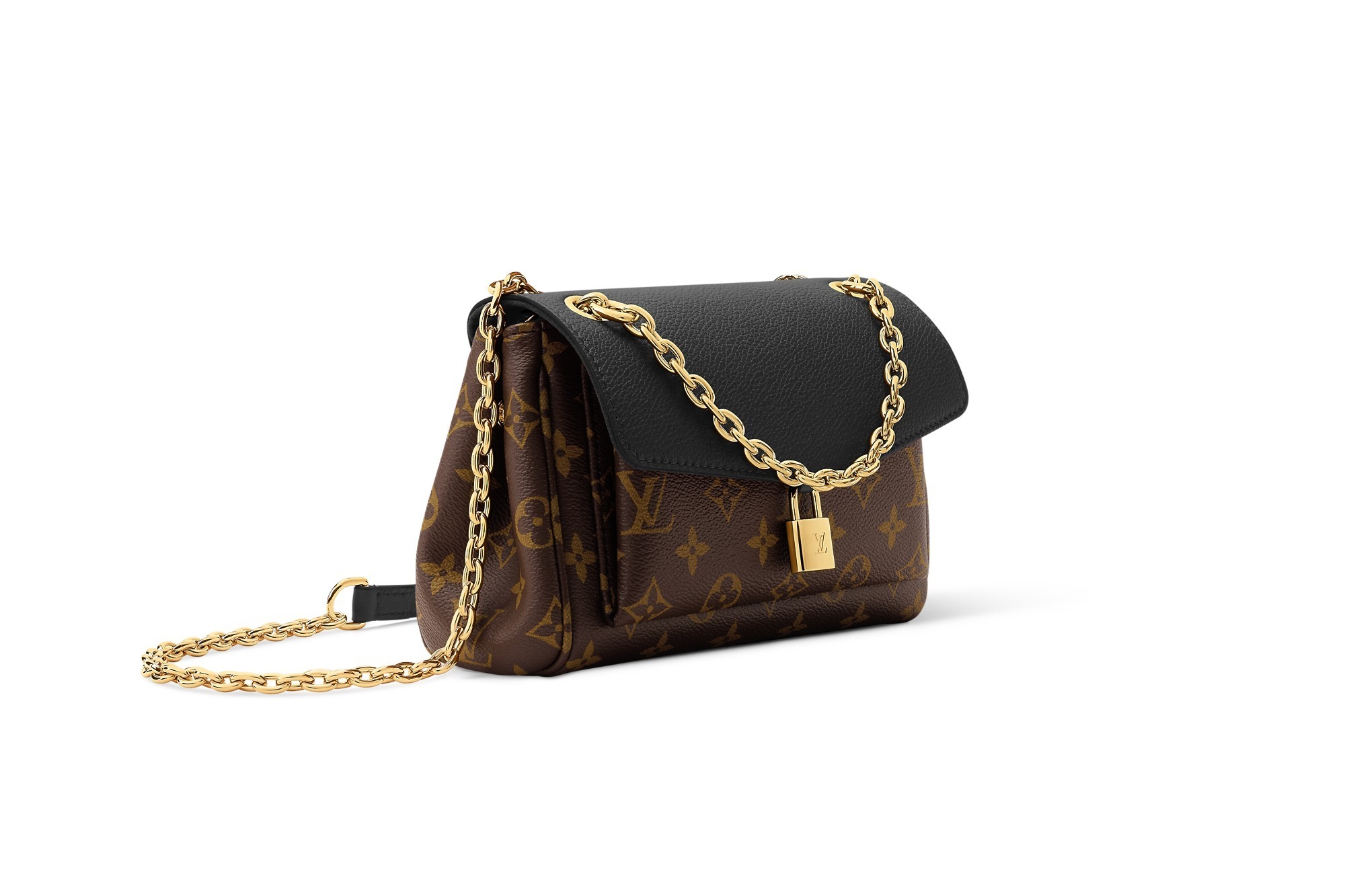 Saint-Germain 手袋以塞纳河左岸的「圣日耳曼大道」(Boulevard Saint-Germain)命名,包型设计与品牌经典 Metis 邮差包有几分相似,采用 Monogram 帆布包身搭配粒面牛皮革翻盖,前侧口袋丰富包身层次感,隐藏式磁扣便于单手开合,金色 LV 挂锁与链条肩带相互呼应,滑链设计满足肩背或斜挎需求。推出中号和小号2种尺寸,经典老花搭配黑色、棕色或酒红色包盖,优雅百搭且不褪流行。