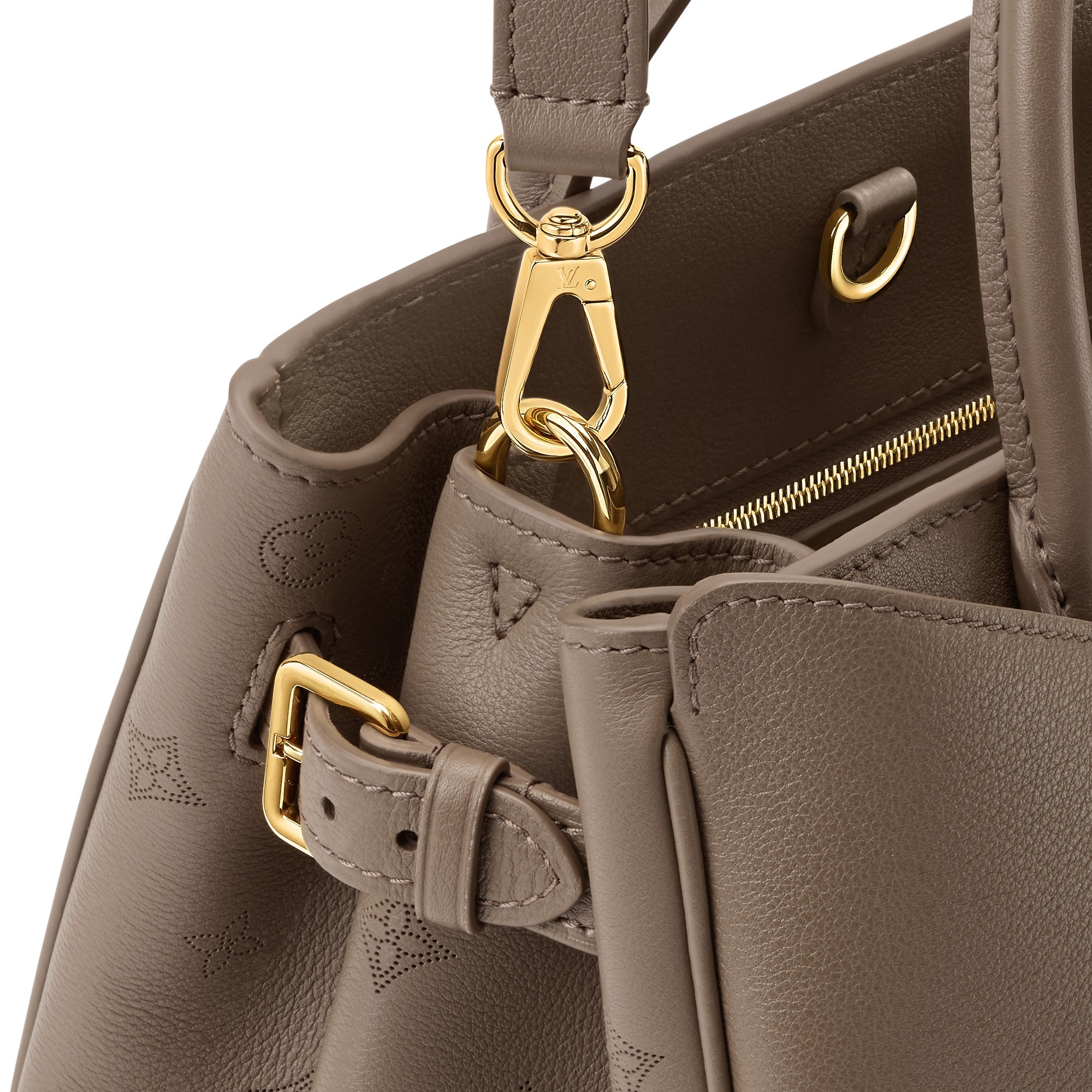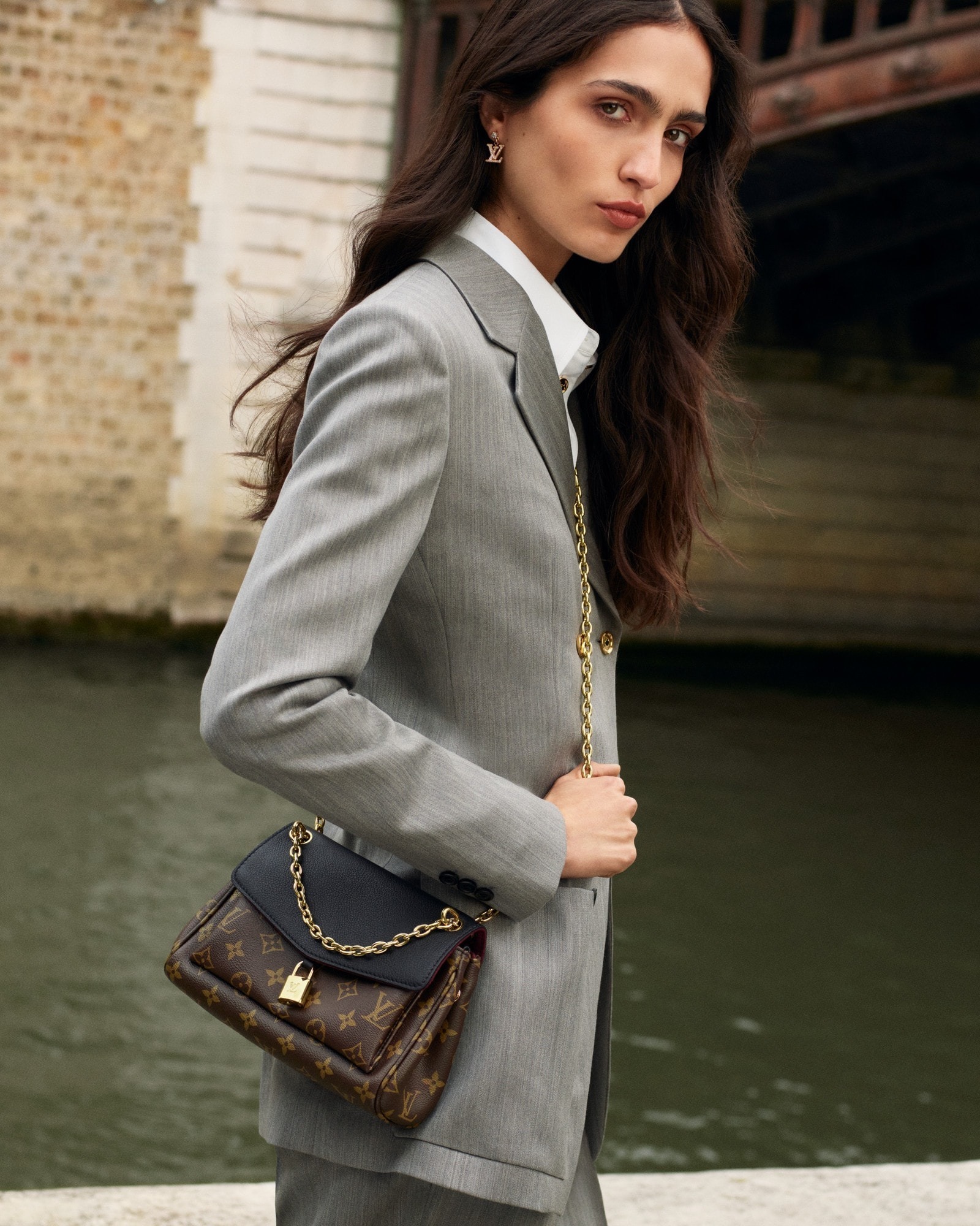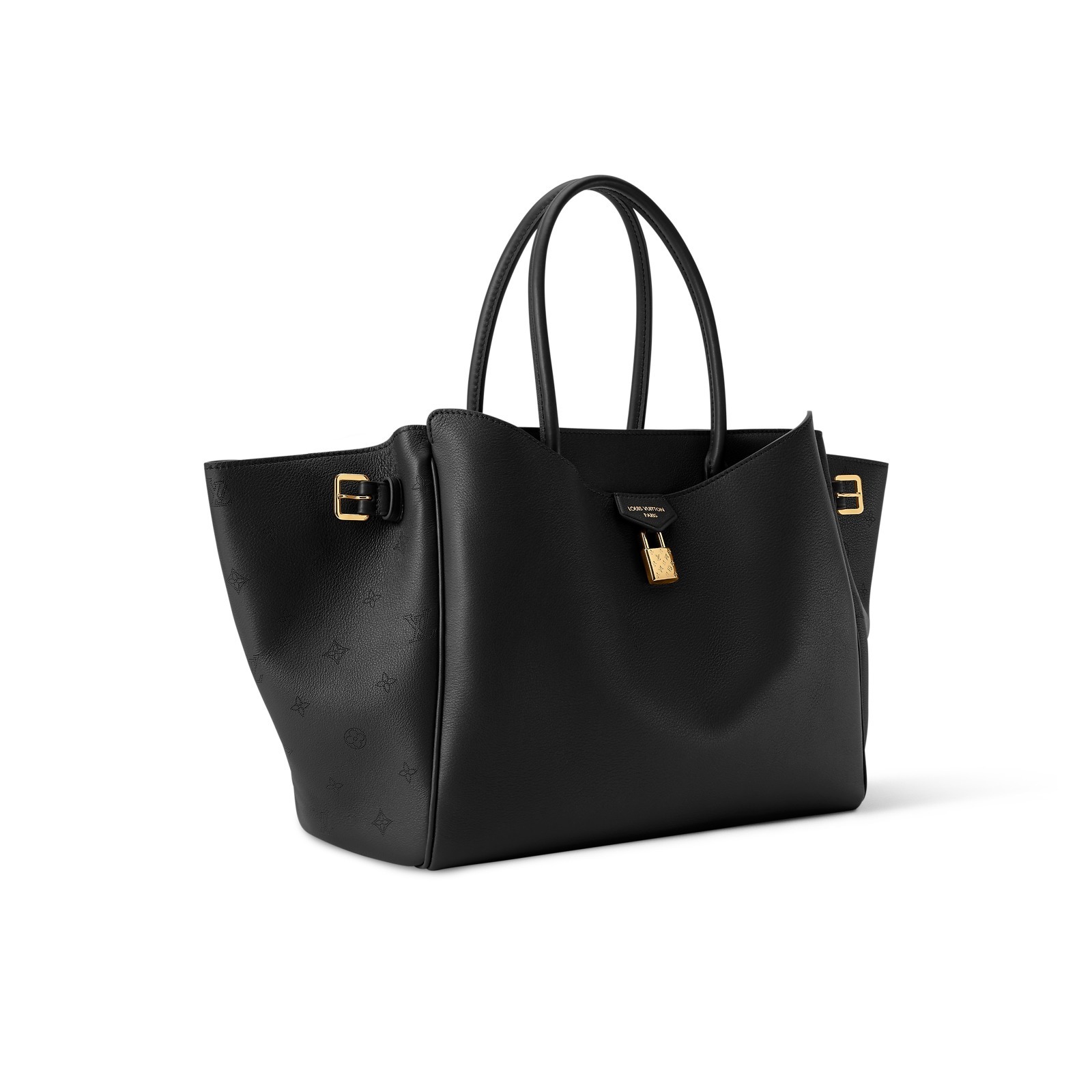 Vendôme 手袋以巴黎市中心繁华的「旺多姆广场」(Place Vendôme)命名,包包采用质感细腻的缎面小牛皮搭配同色系皮革内衬,侧面点缀 Monogram 镂孔花纹,金色铭文挂锁作为点睛。洗练托特包结构搭配顶部管状皮革双手柄,最大亮点是两侧的调节扣设计,可调节侧带扩展内部空间,内部钩扣提升安全指数。推出中号和小号2种尺寸,分别提供黑色和棕色、黑色和灰色2种颜色选择,内敛中性色调和干练包型颇有 office lady 风范。