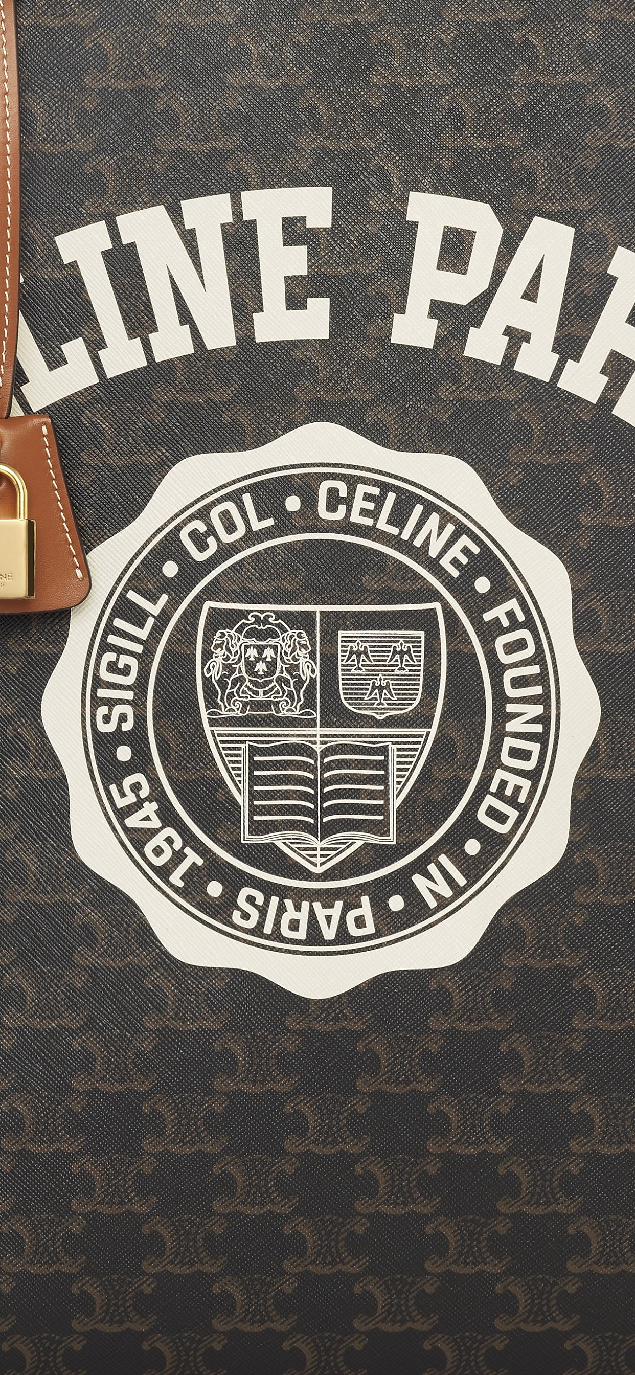 College(学院)徽章印花在 CELINE 2020秋冬季登场,采用盾形纹章为主体,圆环和齿轮形填充花边包围外部,让人联想到欧洲贵族的家族徽章。