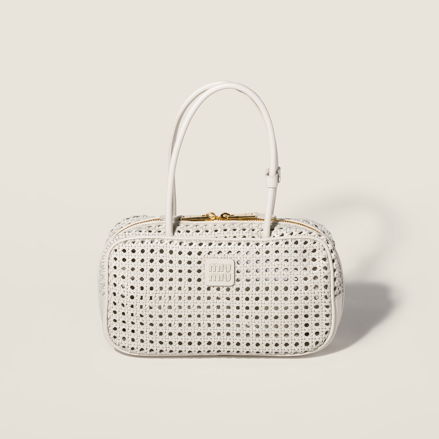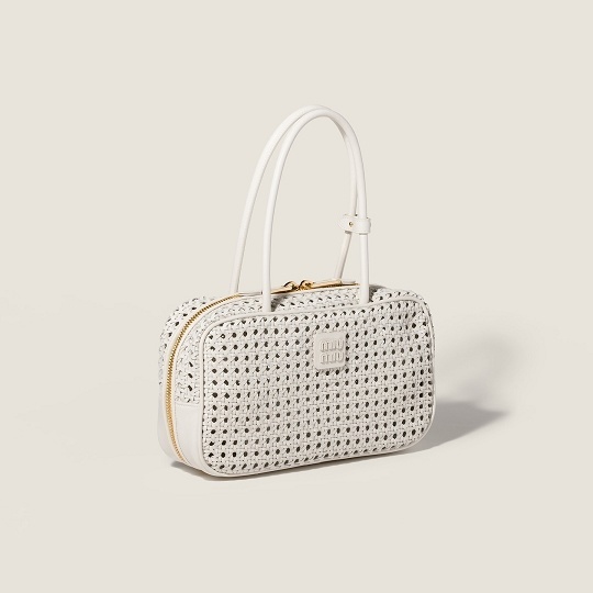 Wander 月牙包和 Beau 手袋采用蜡染皮革编织工艺打造镂空藤格纹理,轻盈通透的质感别具夏日氛围。推出干邑色和纯白色两种配色,搭配同色系浮雕皮革徽标,古典藤格纹为包包增添一抹书卷气息。