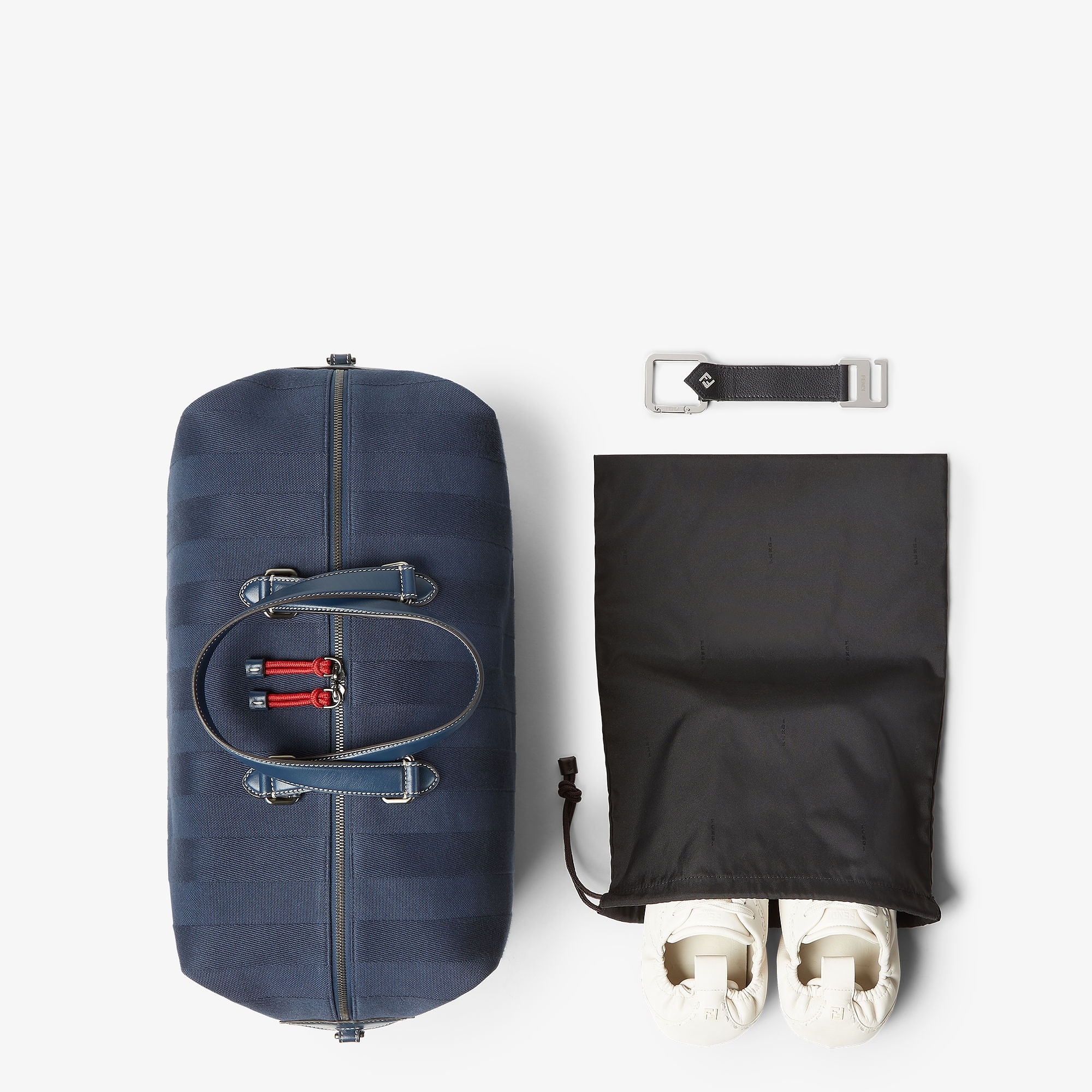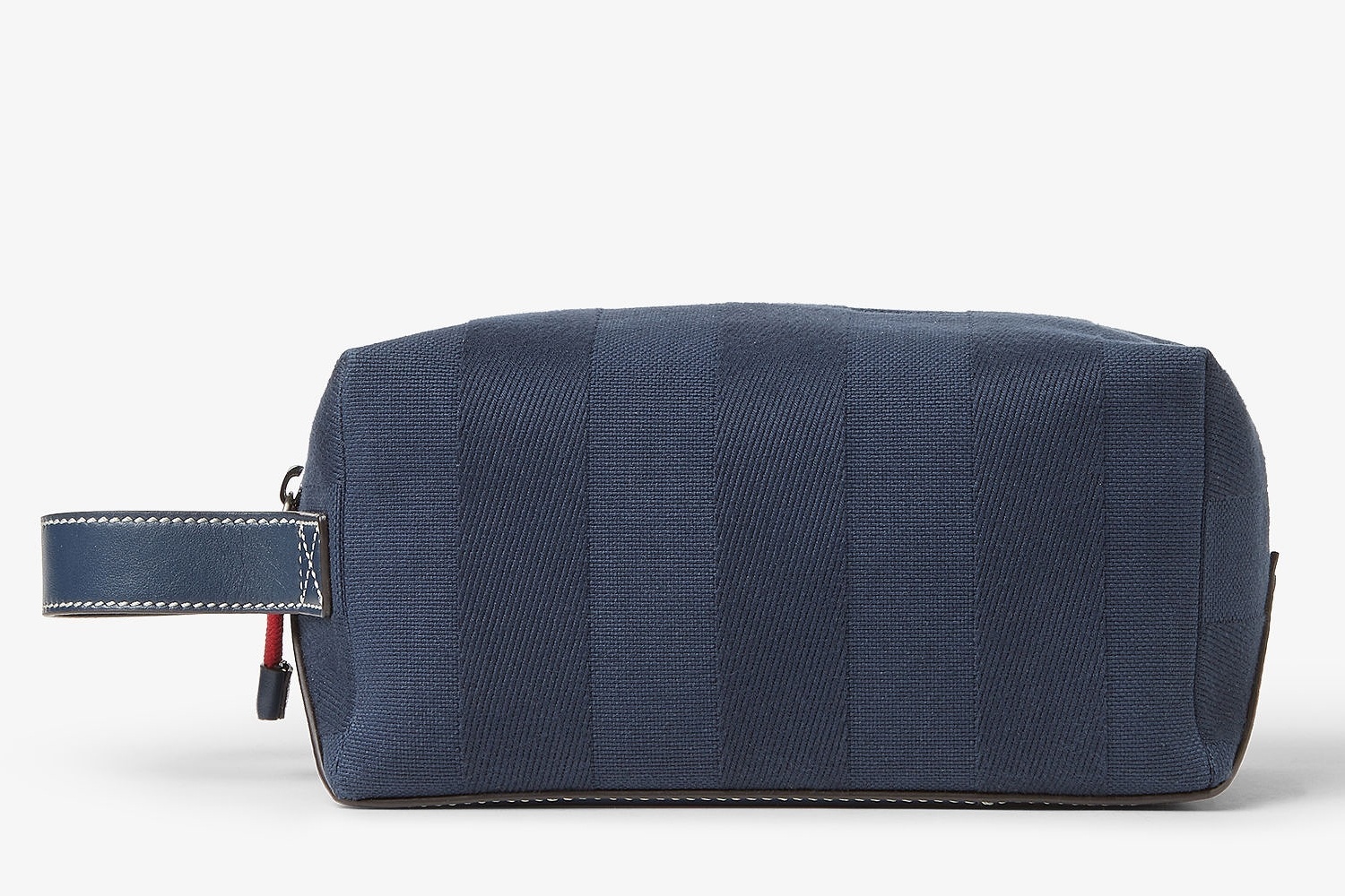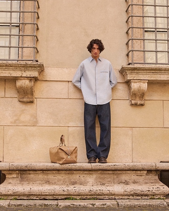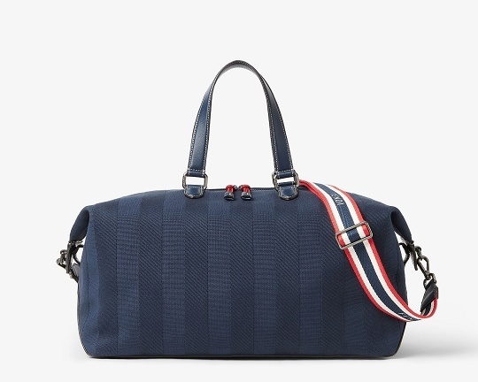 男士系列依然以轻便实用的 Lui 行李袋为主角,采用海军蓝色 Pequin 条纹帆布搭配同色系皮革饰边,金属 FF 贴花作为点睛。包包采用双滑扣长拉链开合设计,侧面按扣可调整形状和容量,便于旅途收纳携带。内部为高科技布料里衬并配有防水尼龙防尘袋,带弹簧钩的皮革肩带可将悬挂在滚轮行李箱上。同系列还推出一只 Lui 化妆包,侧面皮革提手和红色拉链头增添精致感细节。