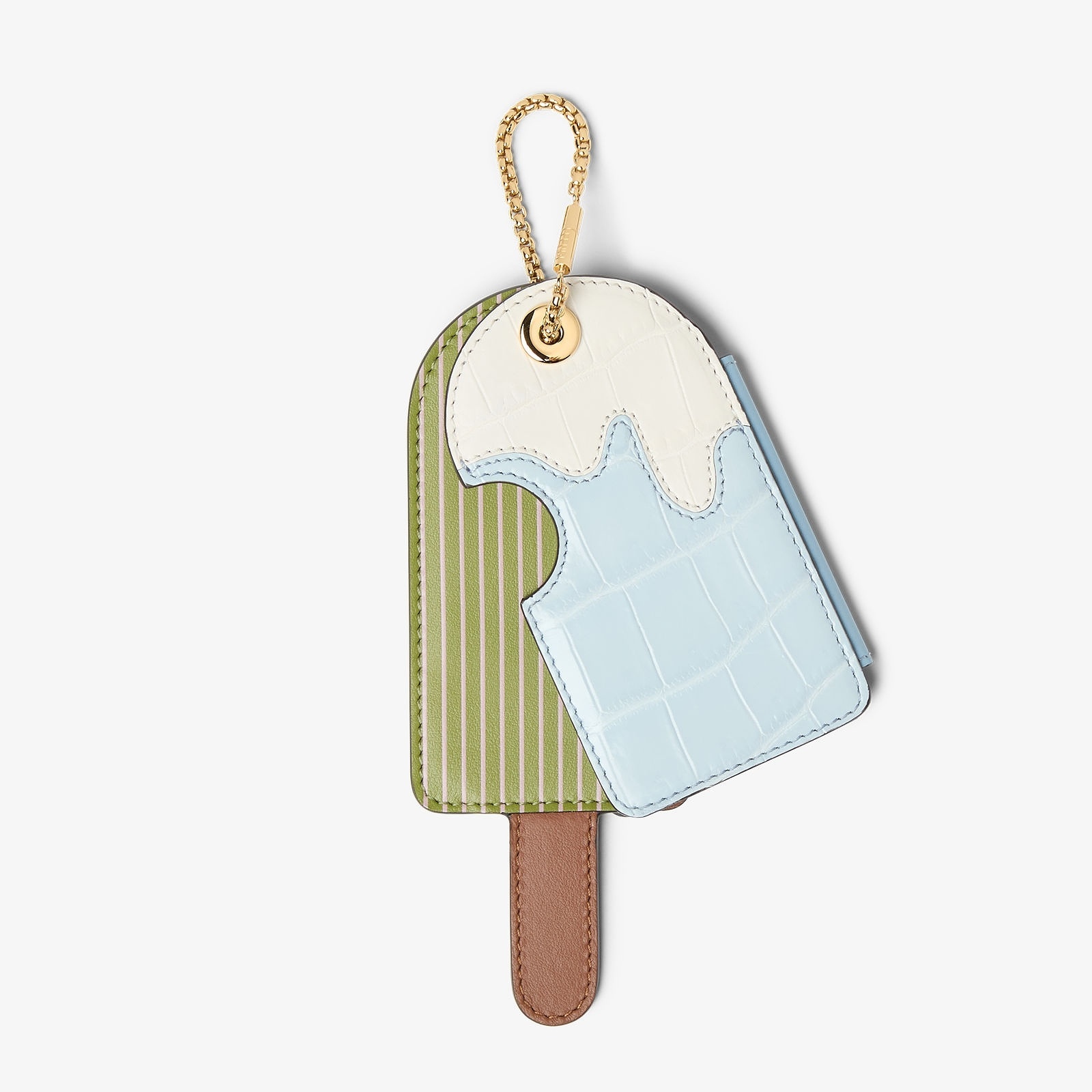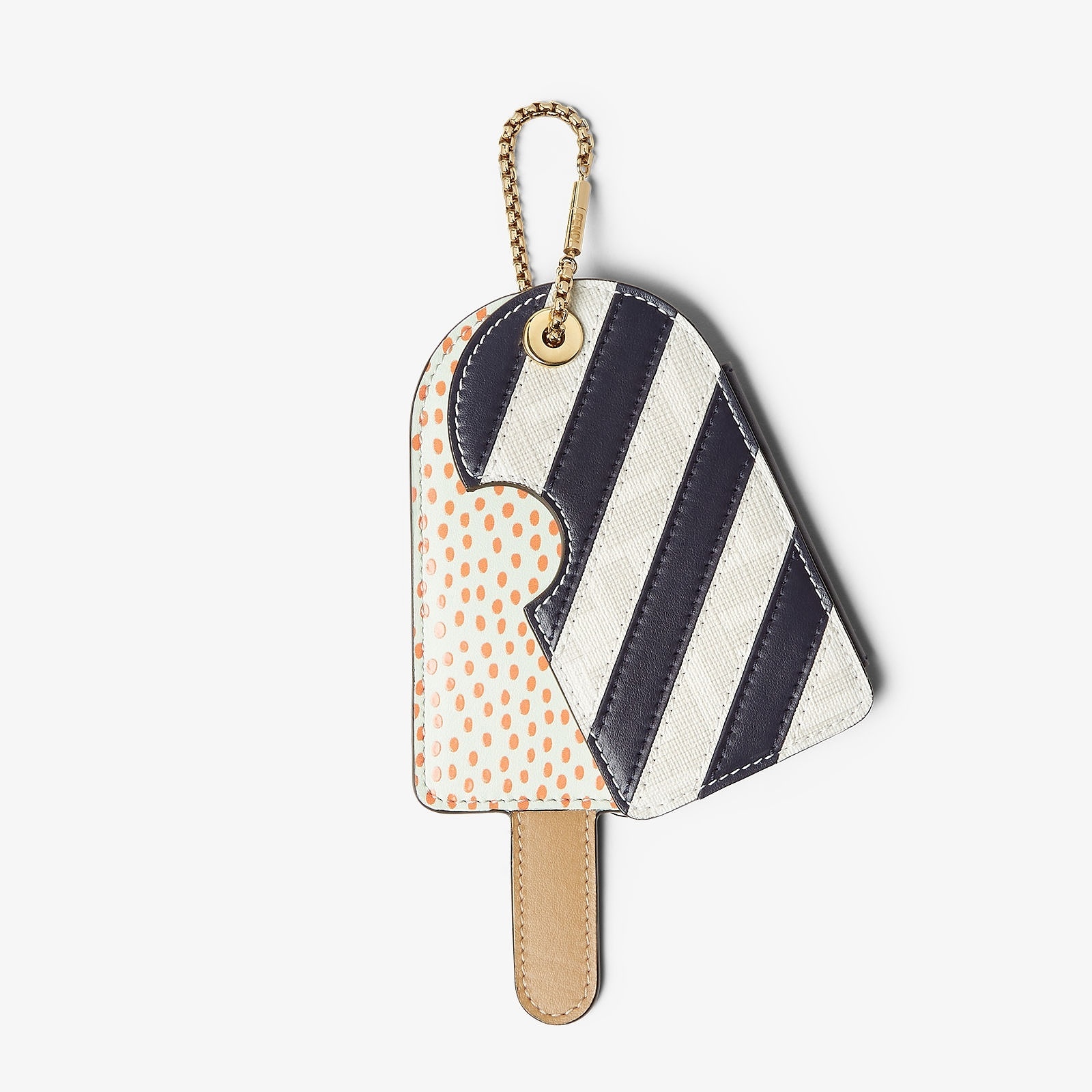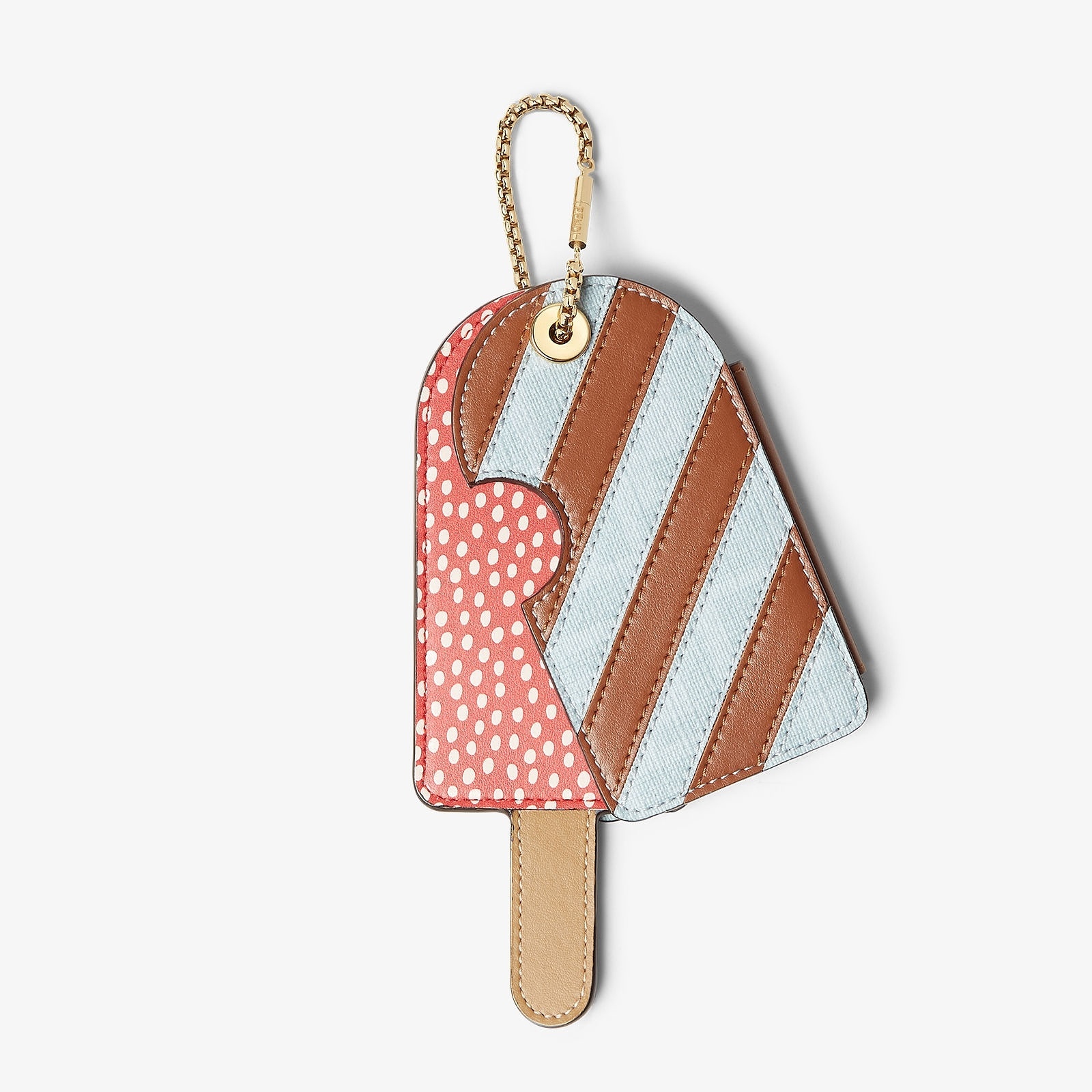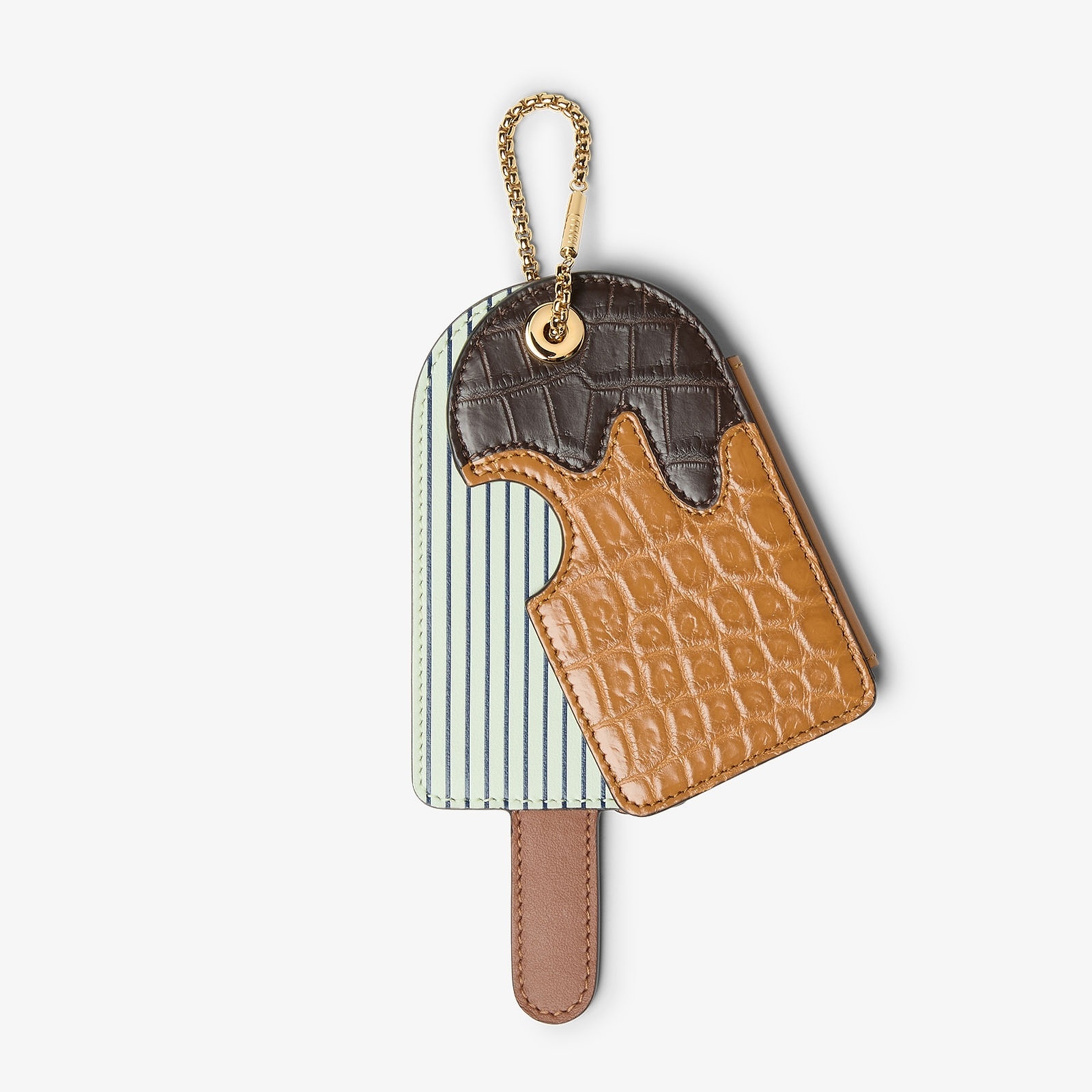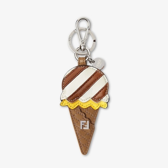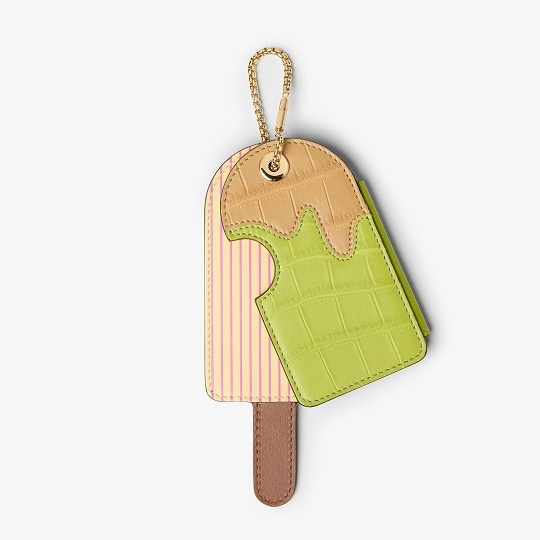 Itina 小狗挂饰换上编织草帽、缎带蝴蝶结、雏菊发夹、粉红色救生圈、毛巾布等充满度假感的配饰,显得优雅又俏皮。新季还推出一组冰激凌造型的挂件,通过嵌花工艺将小牛皮、FF提花帆布、鳄鱼皮、水貂毛等材质塑造成色彩缤纷的雪糕和甜筒,充满童趣和夏日情调。
