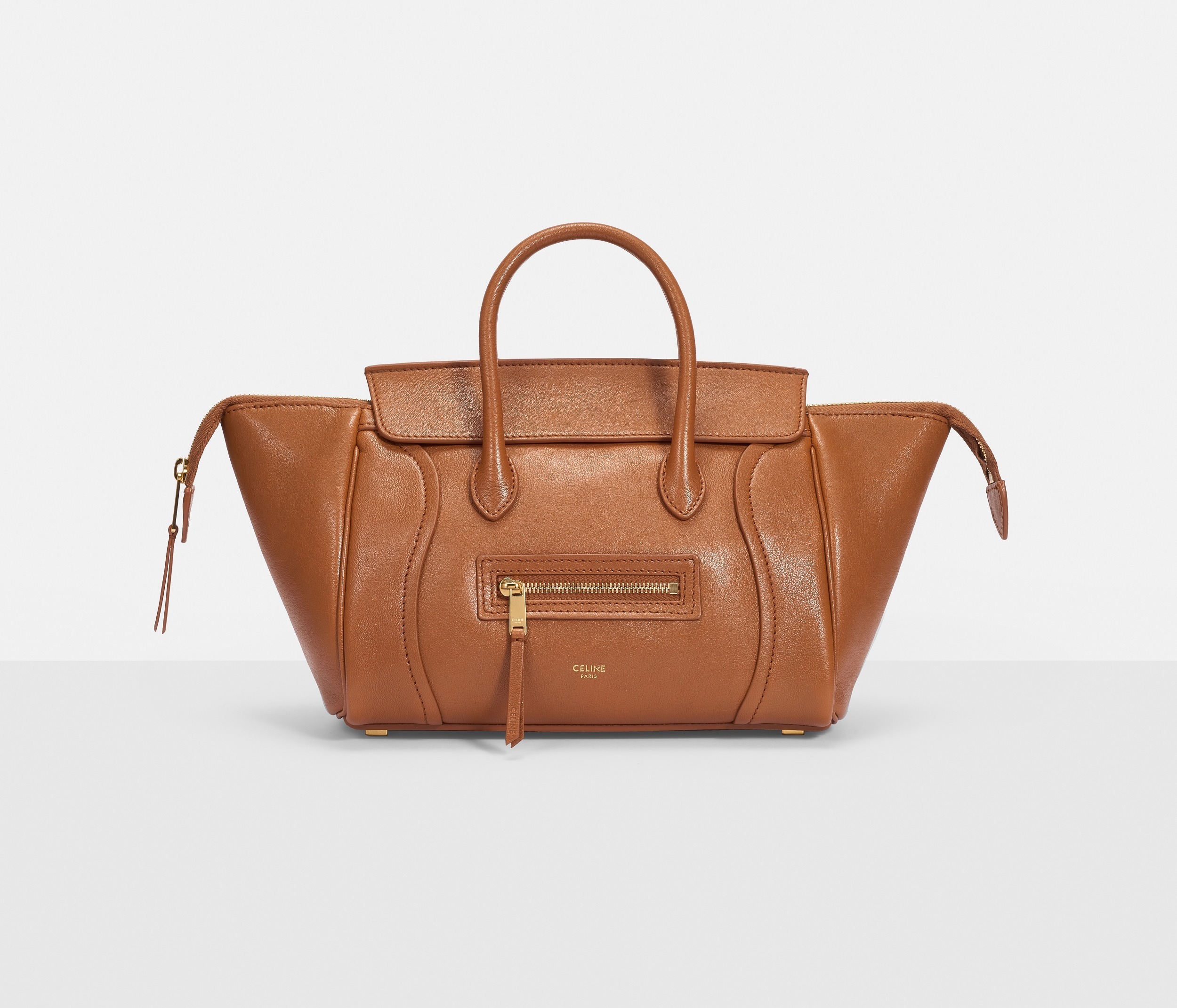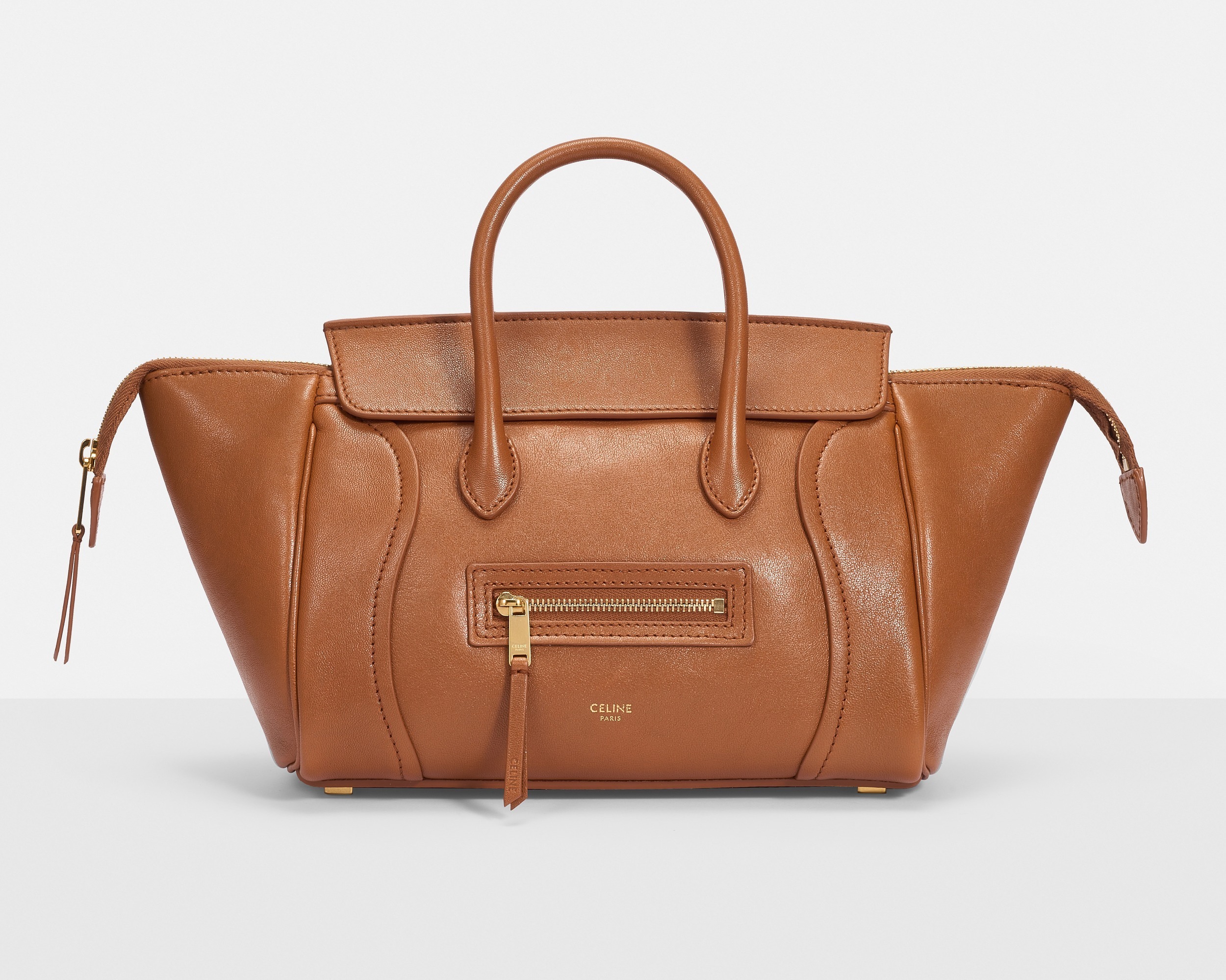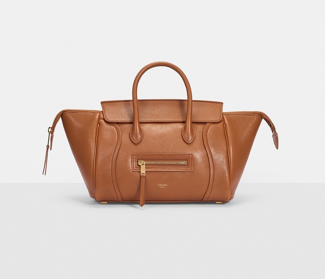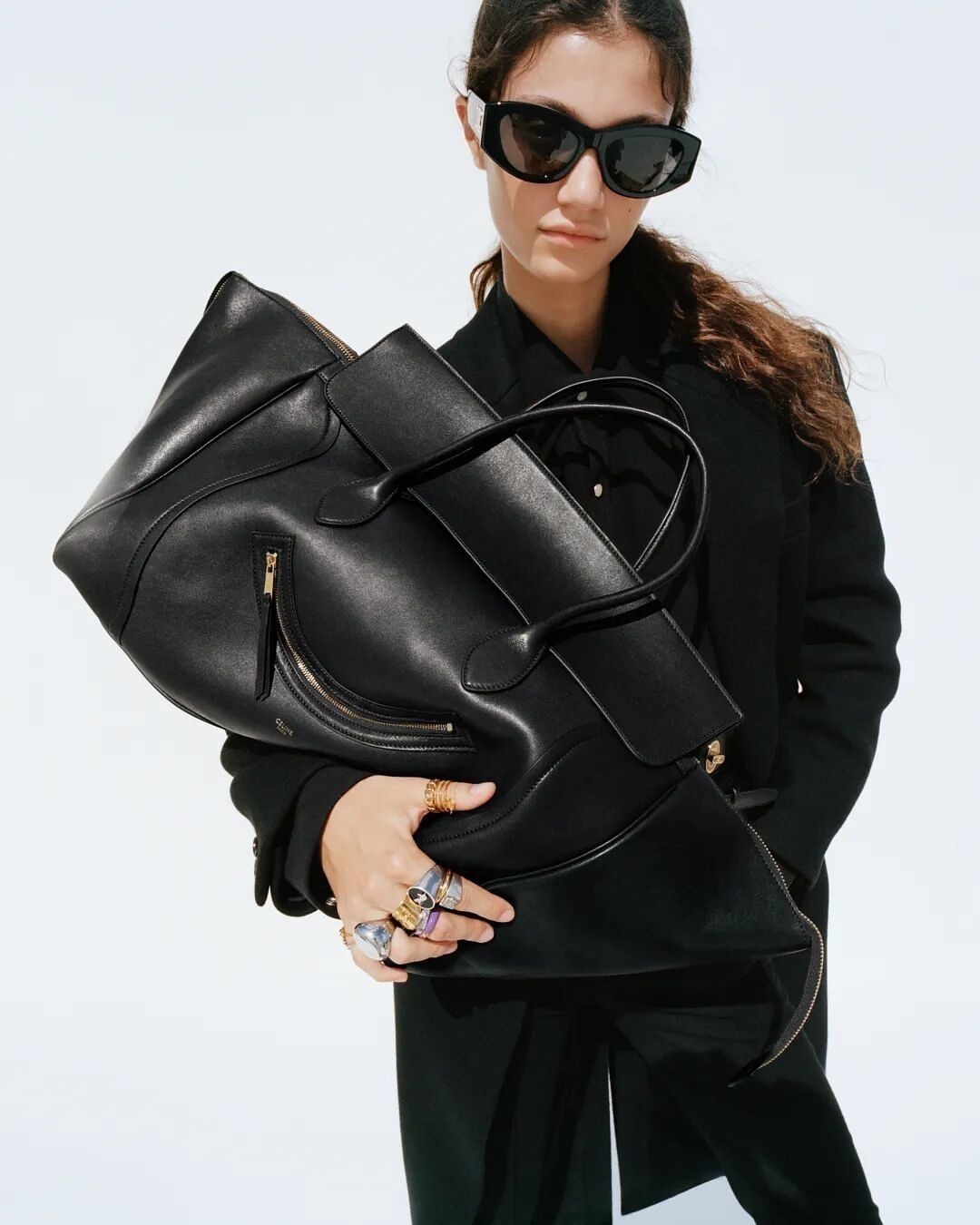 Phantom Luggage 手袋由 Phoebe Philo 于2010年设计,其独特的波浪形线条灵感来源于1969年品牌创始人 Céline Vipiana 女士设计的 Mistral 手袋。新版 New Luggage 笑脸包是现任创意总监 Michael Rider 为品牌设计的首款手袋作品,在2026春季秀场上首次亮相,通过现代廓形重新诠释典藏设计。