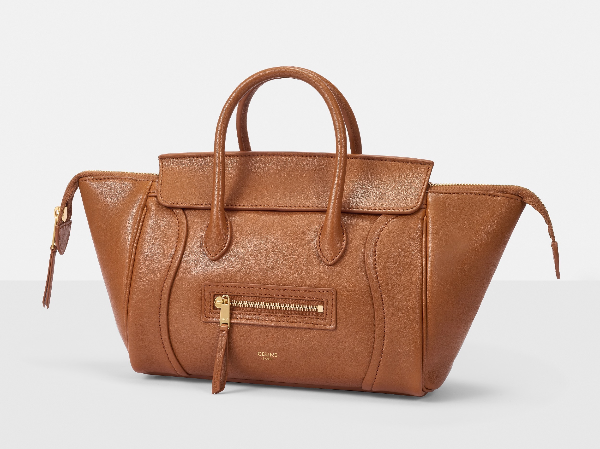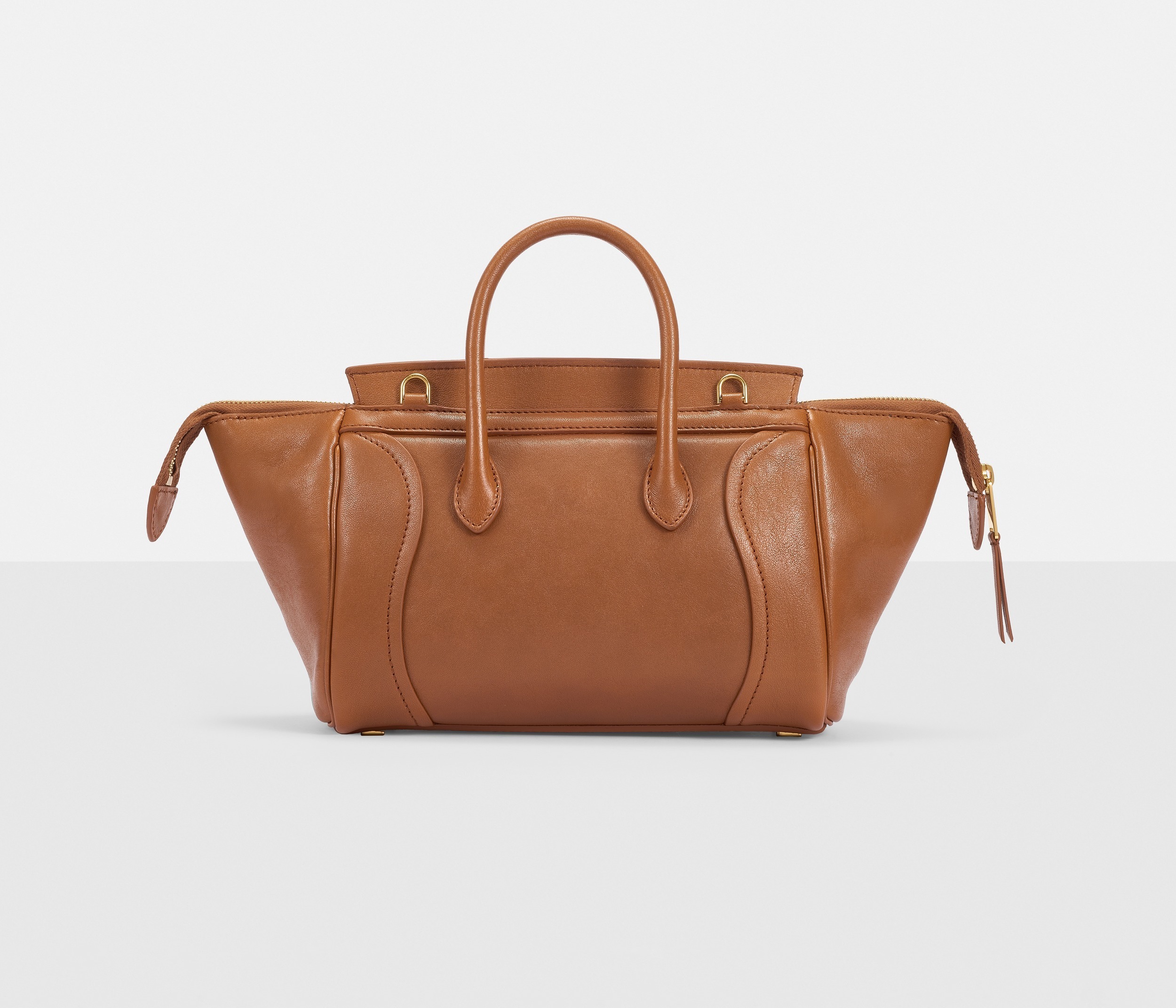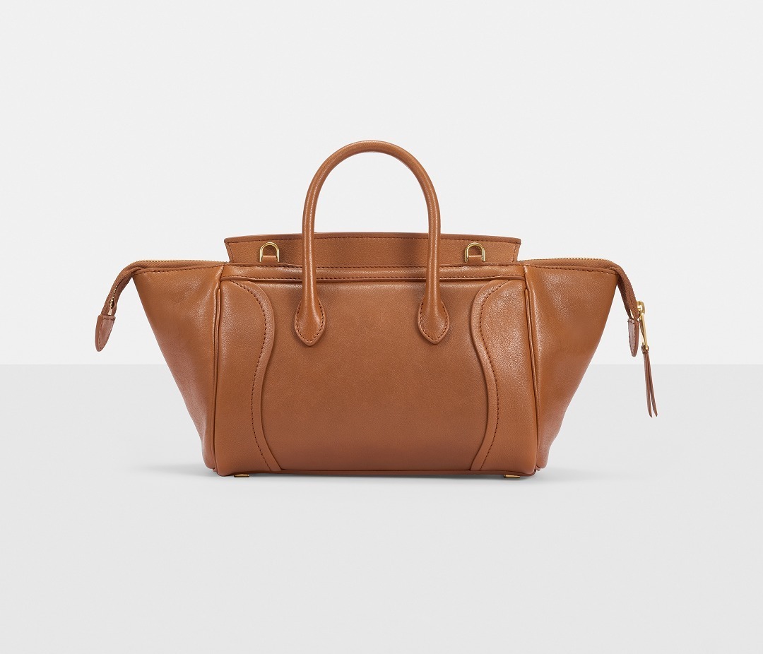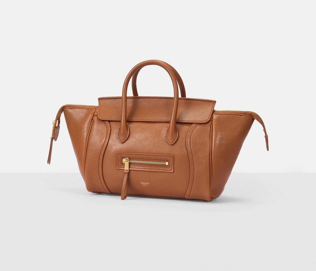 Phantom Luggage 手袋由 Phoebe Philo 于2010年设计,其独特的波浪形线条灵感来源于1969年品牌创始人 Céline Vipiana 女士设计的 Mistral 手袋。新版 New Luggage 笑脸包是现任创意总监 Michael Rider 为品牌设计的首款手袋作品,在2026春季秀场上首次亮相,通过现代廓形重新诠释典藏设计。