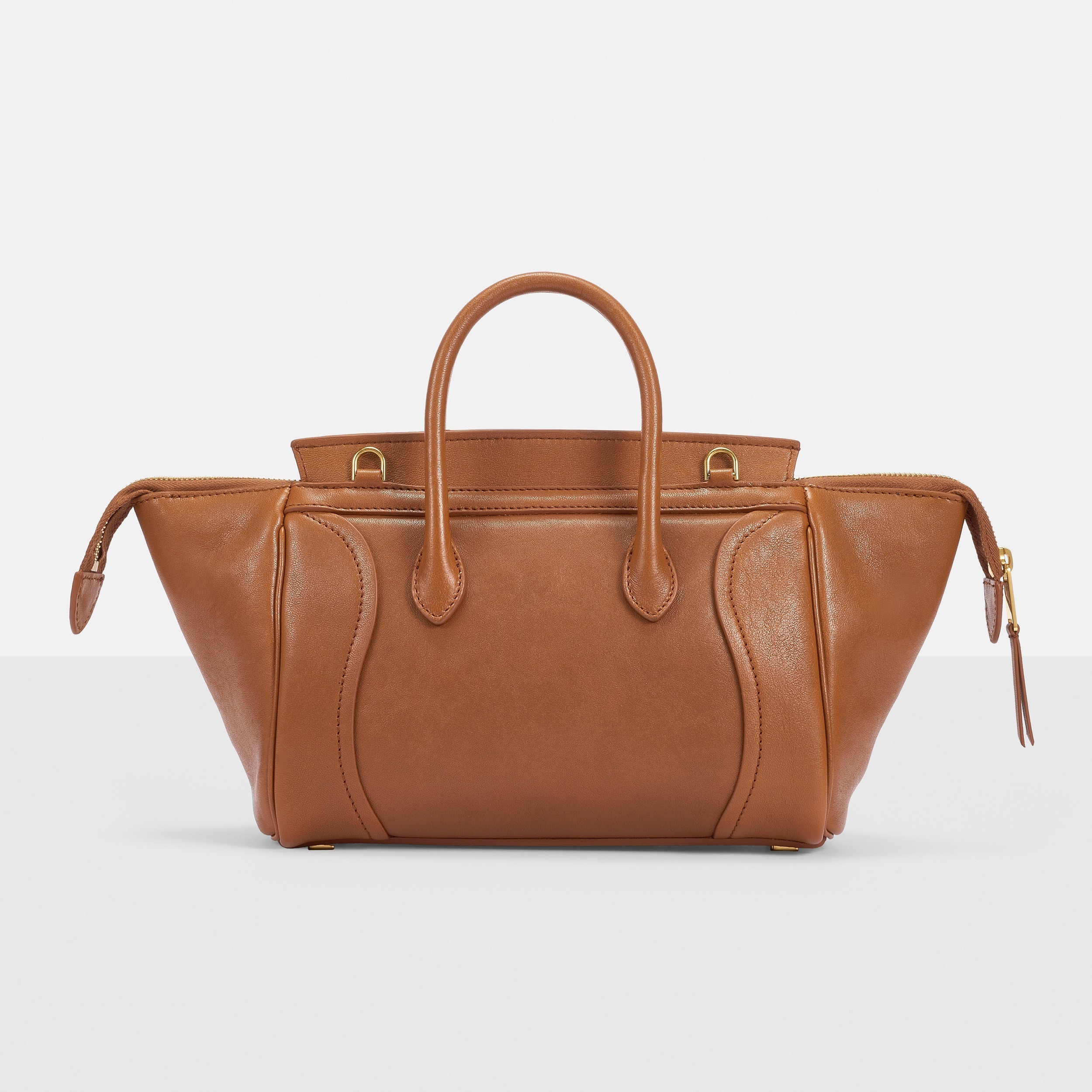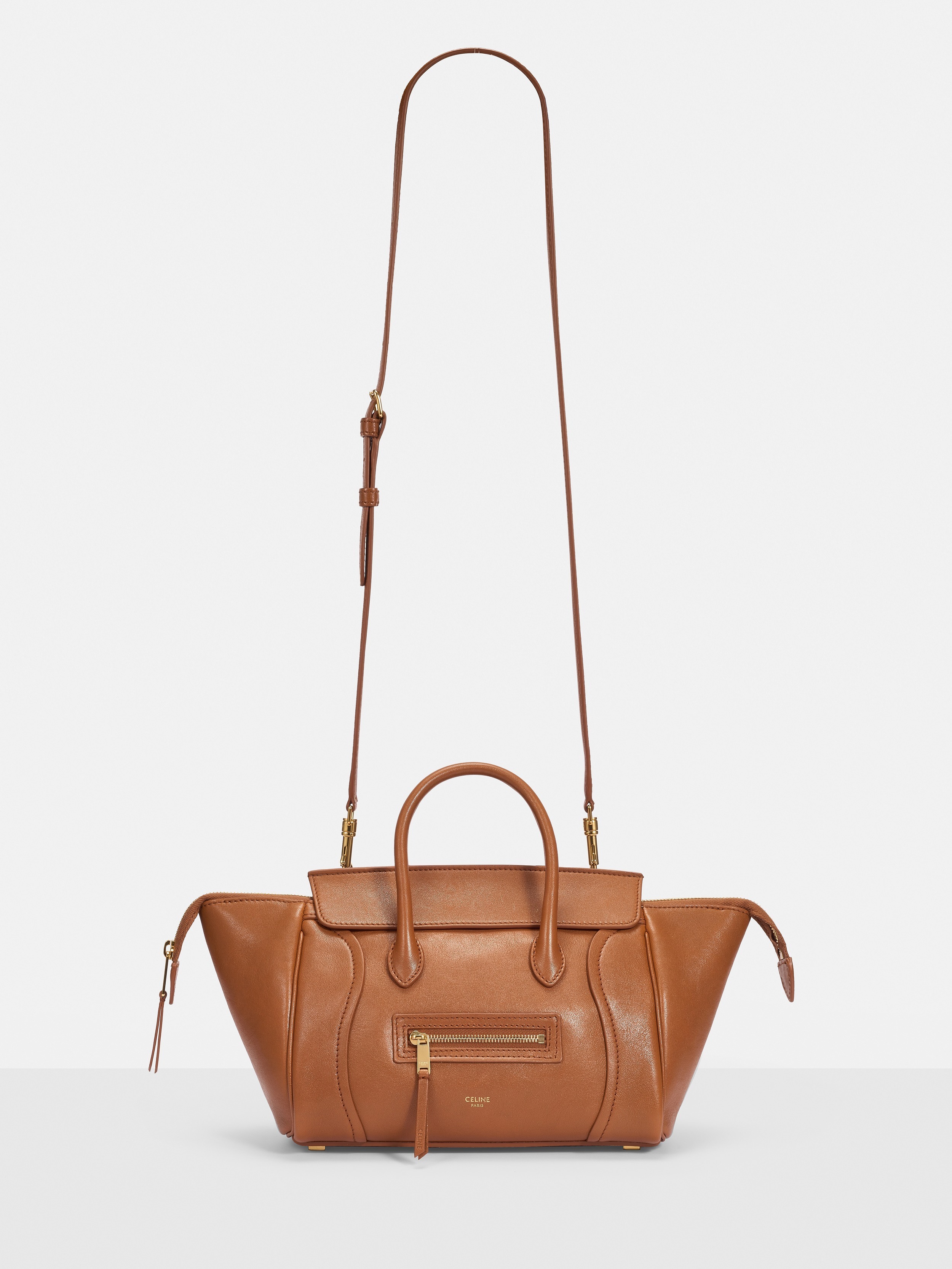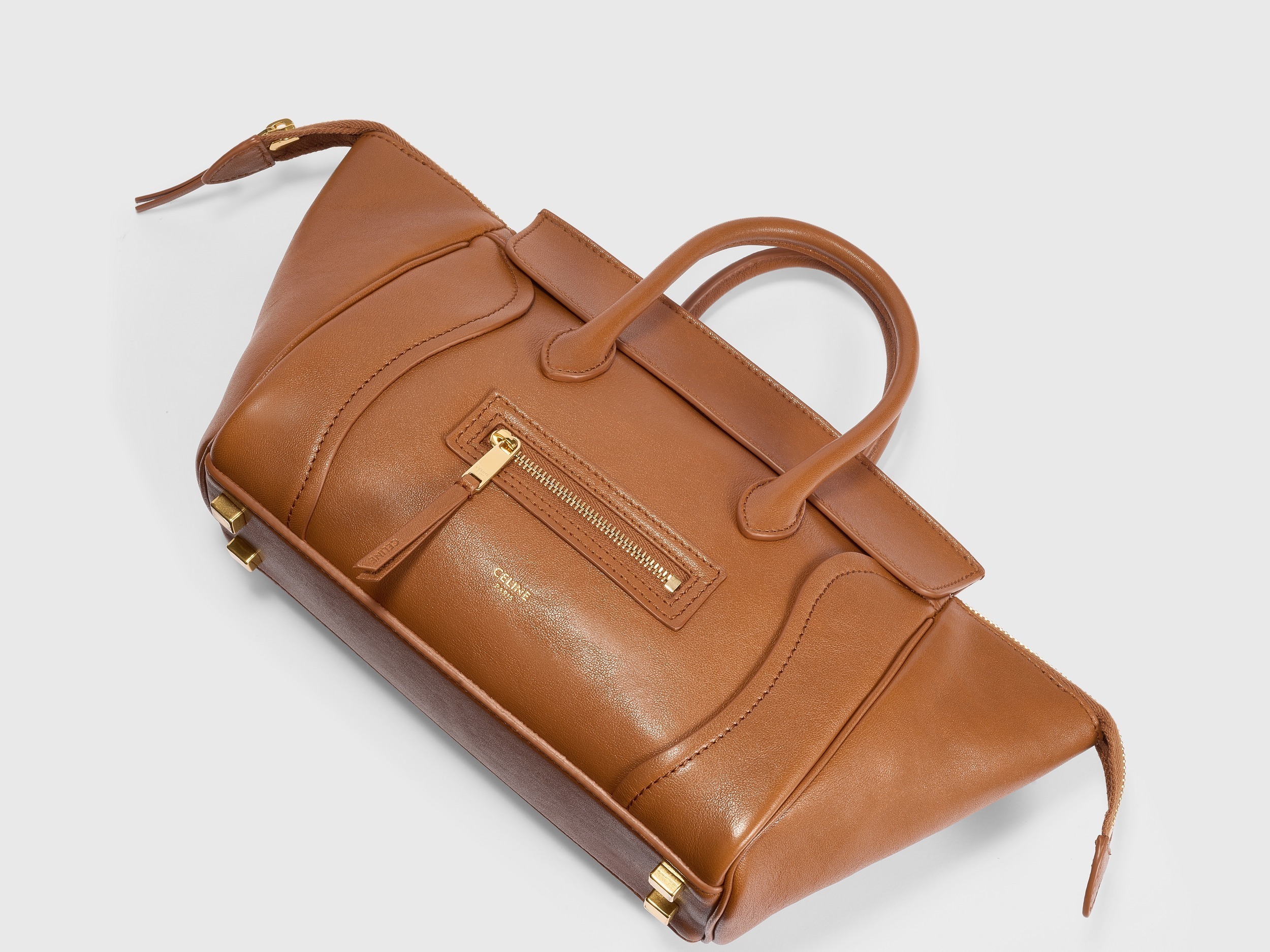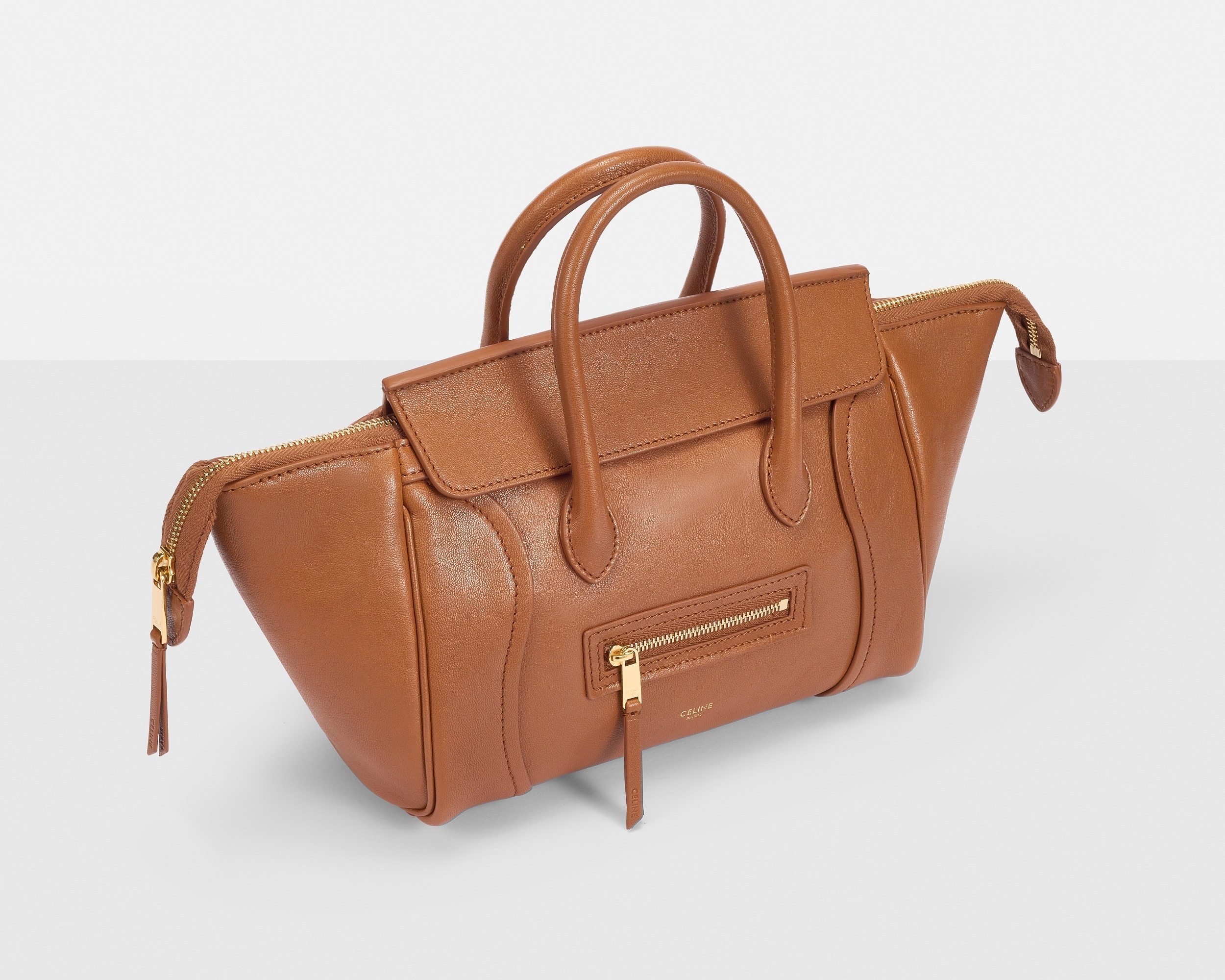 Phantom Luggage 手袋由 Phoebe Philo 于2010年设计,其独特的波浪形线条灵感来源于1969年品牌创始人 Céline Vipiana 女士设计的 Mistral 手袋。新版 New Luggage 笑脸包是现任创意总监 Michael Rider 为品牌设计的首款手袋作品,在2026春季秀场上首次亮相,通过现代廓形重新诠释典藏设计。