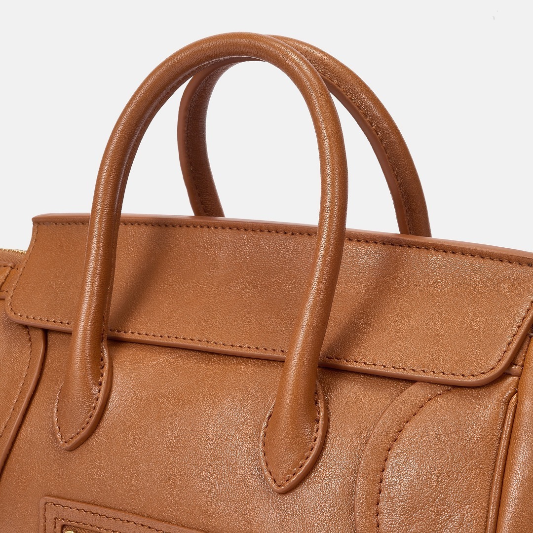 我们介绍的这只小号 New Luggage 手袋采用 38.5x11.5x16.5cm 的小巧规格,尤其适合身材娇小的女生。