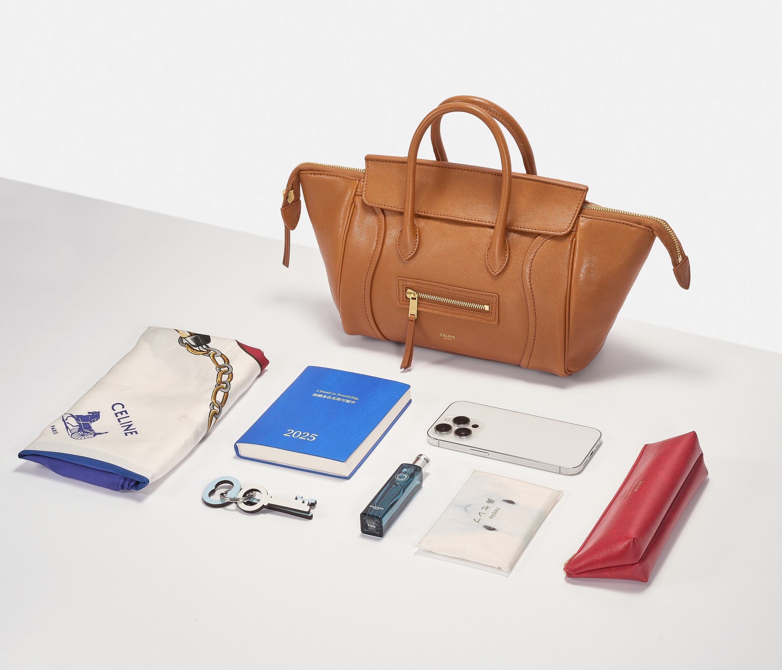 CELINE 2026春季系列带来全新 New Luggage 手袋,新作采用全新横版廓形和柔软羊皮革重塑诞生于2010年的 Phantom Luggage 笑脸包,小巧玲珑的构型搭配标志性拉链口袋,呈现优雅和随性面貌。
