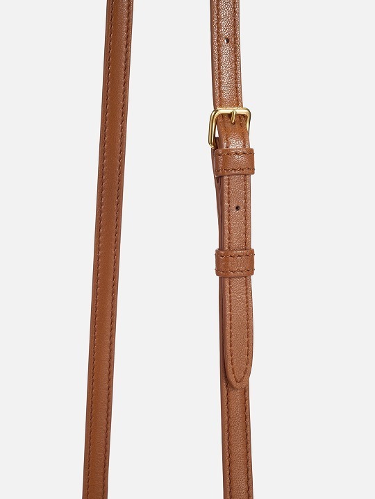 管状皮革手柄拎在手里舒适且利落,还配有一根可拆卸可调节肩带,44厘米-50.5厘米的调节幅度可单肩或者斜挎。