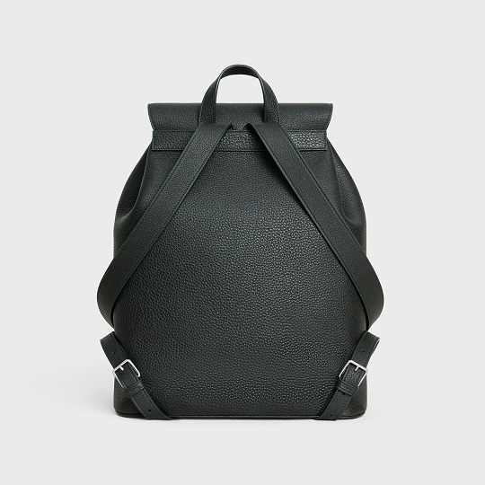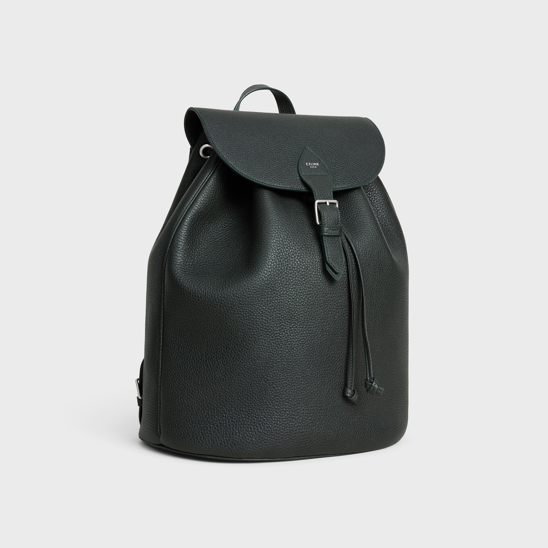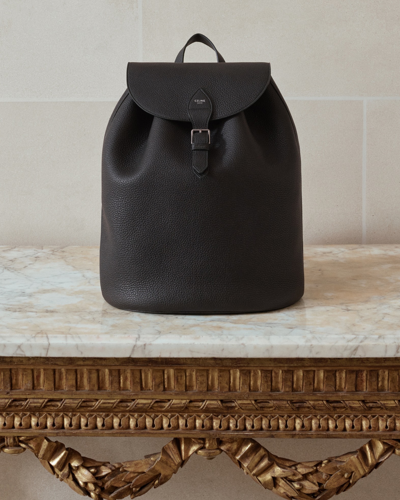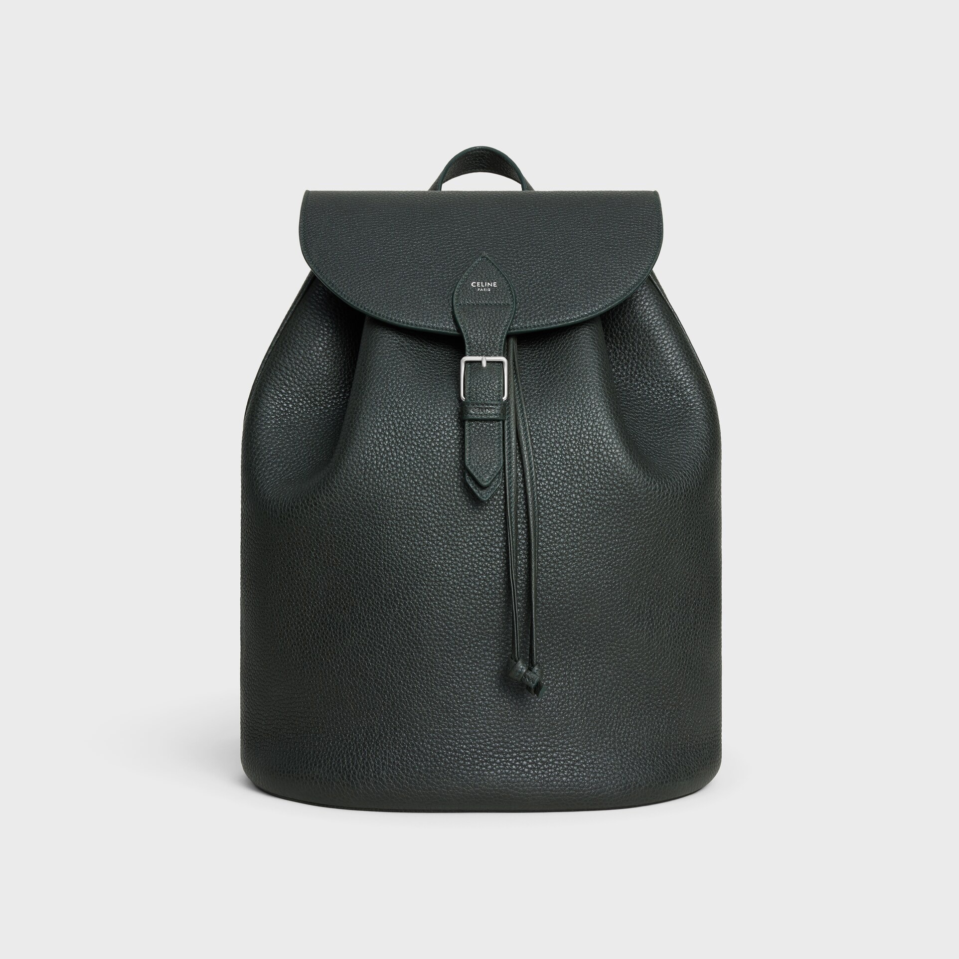Folco 双肩包采用暗夜绿色粒面牛皮革演绎极简构型,抽绳束口和半圆形包盖为包包增添儒雅绅士格调,皮革插扣上低调点缀 CELINE 烫印徽标,双肩背带解放双手。