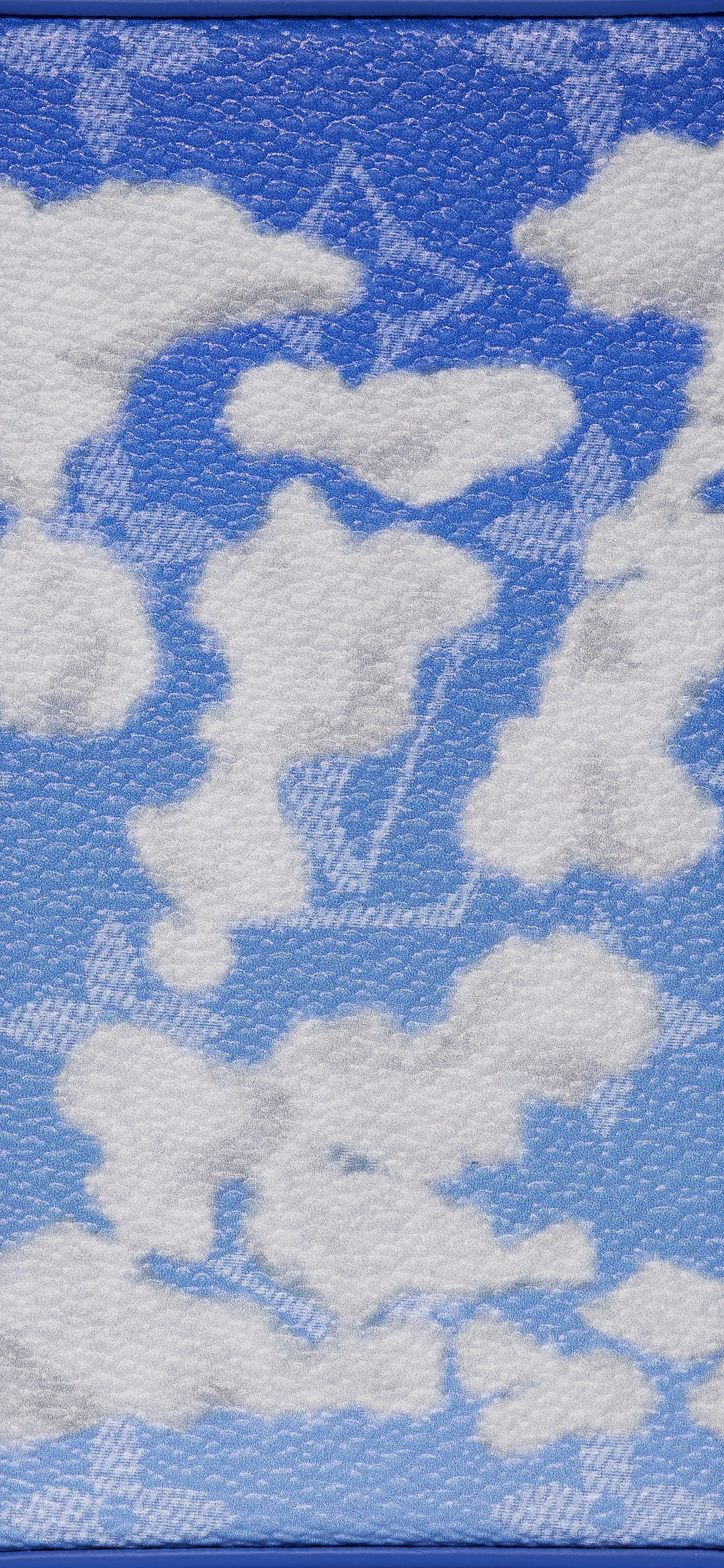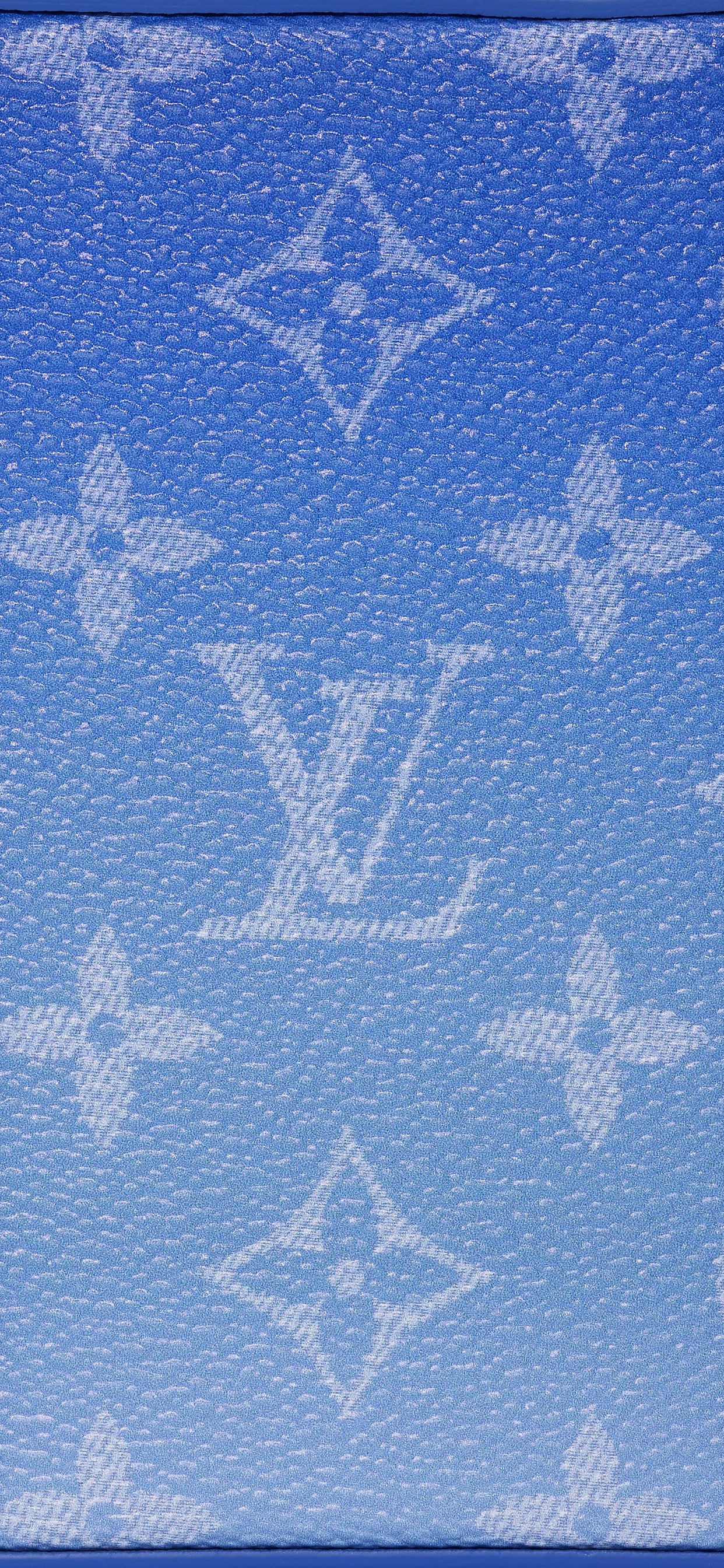 包身依然使用轻便防水的 Monogram 涂层帆布制成,清爽的蓝白渐变色背景上叠印半透明的白色老花图案。