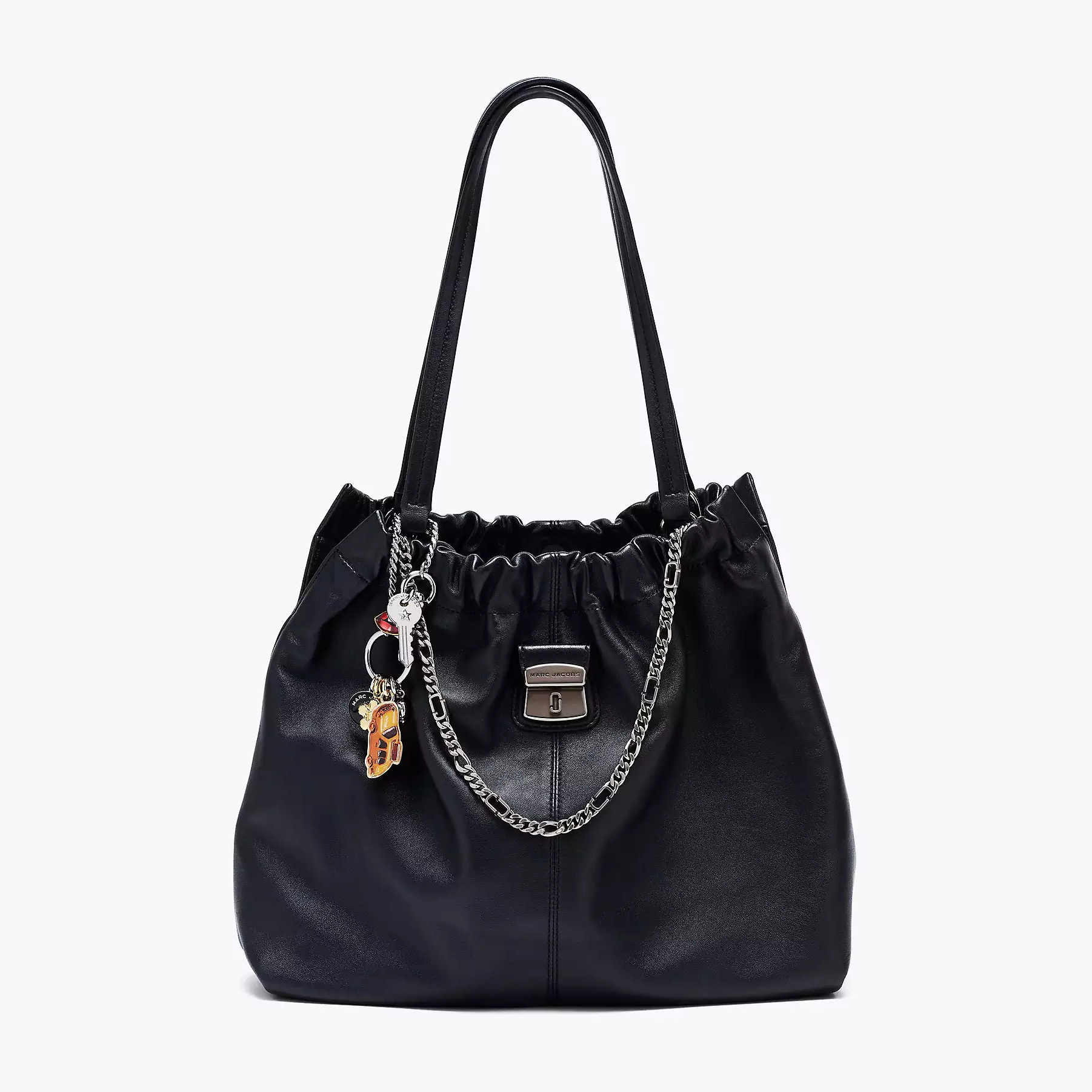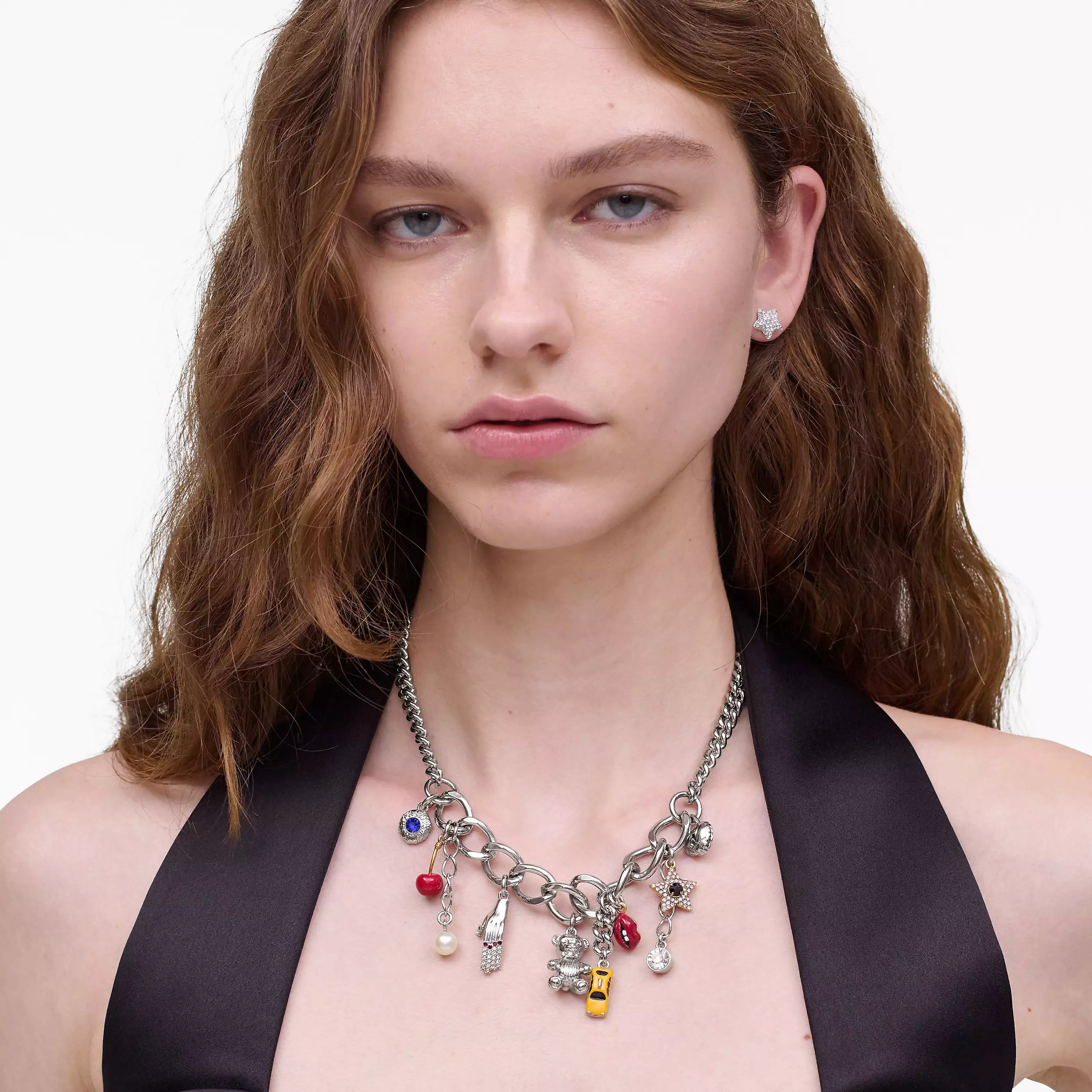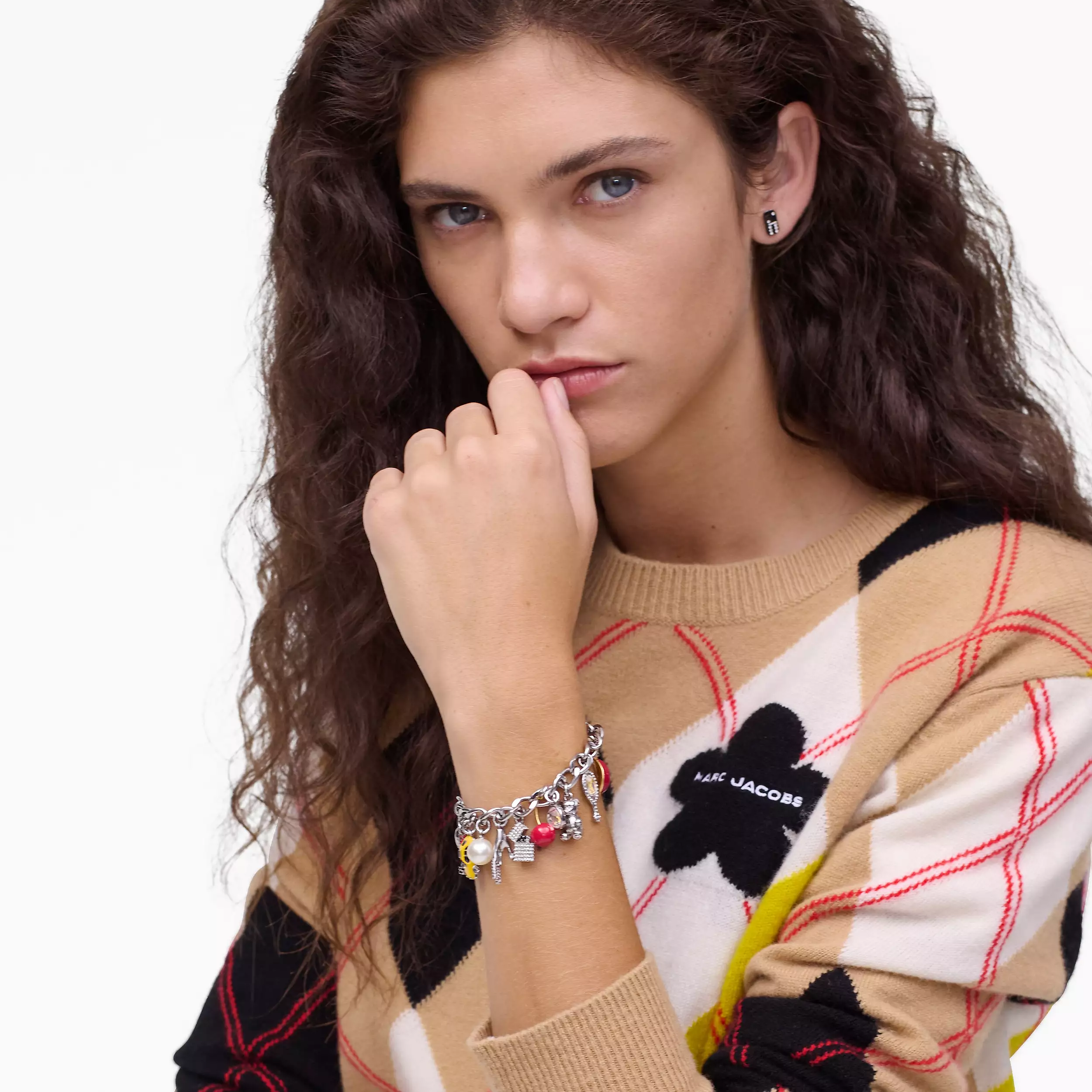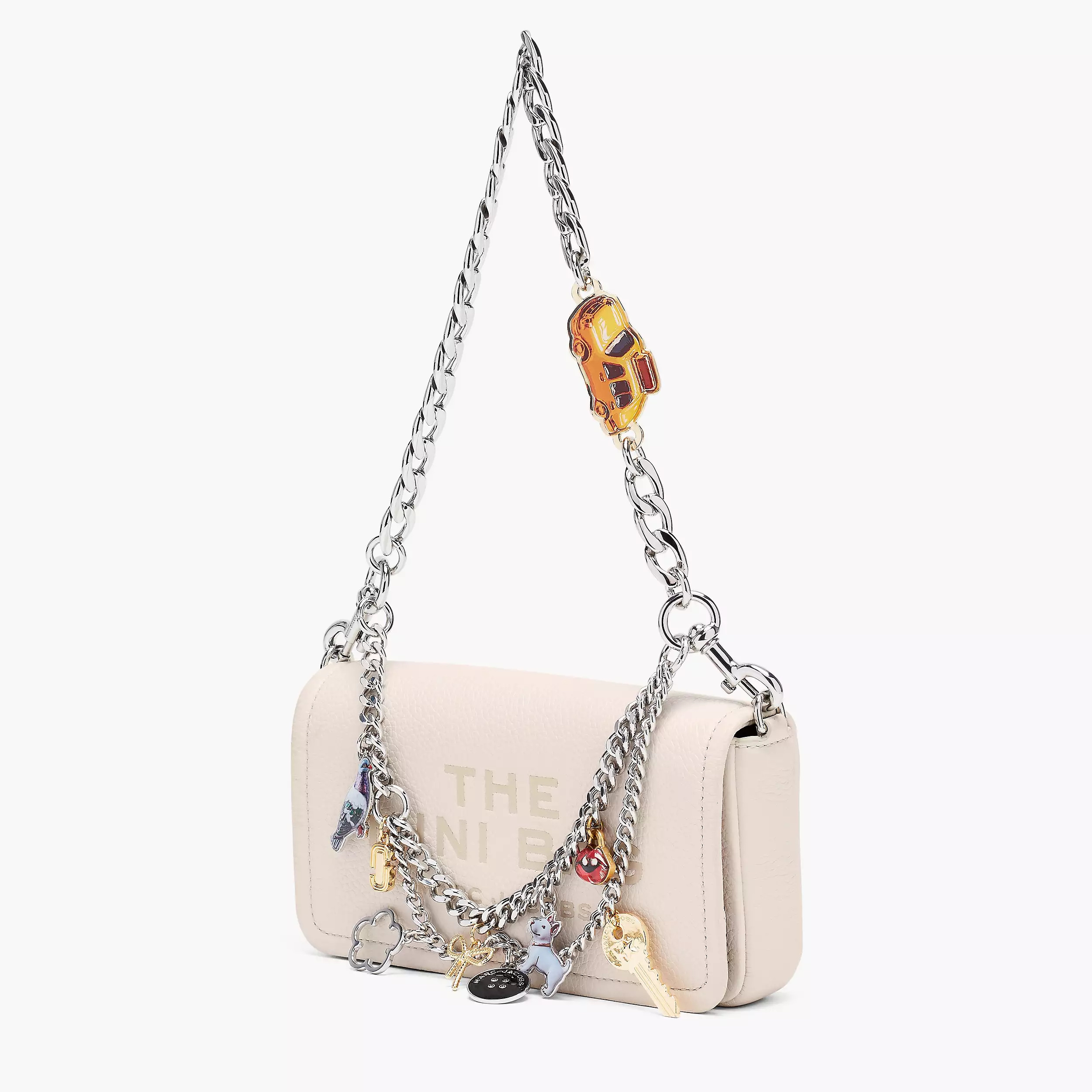 手链和项链以精心挑选的符号组合——从致敬纽约根源的出租车吊坠,到灵感源自 Marc Jacobs 本人造型的手指美甲图案……每一款吊坠都蕴含着丰富的意义,展现 Marc Jacobs 独有的品牌基因。