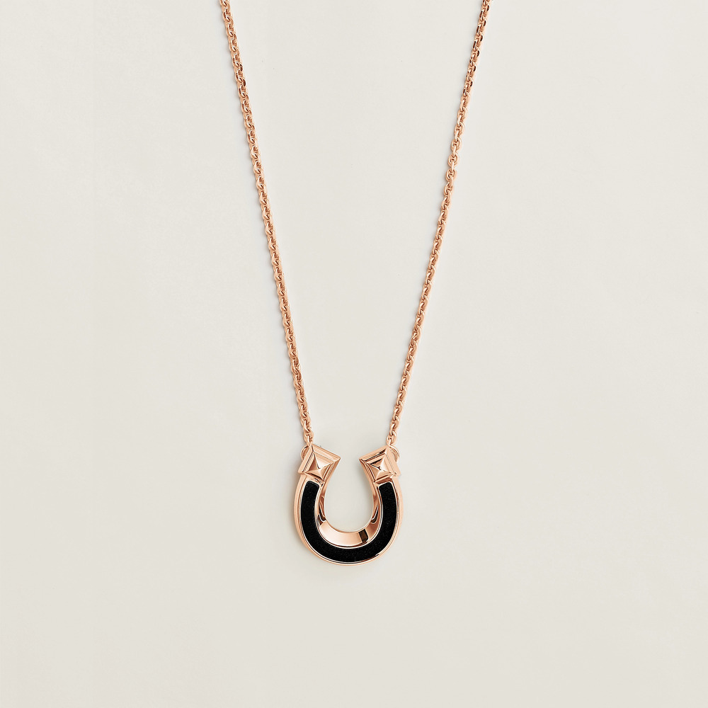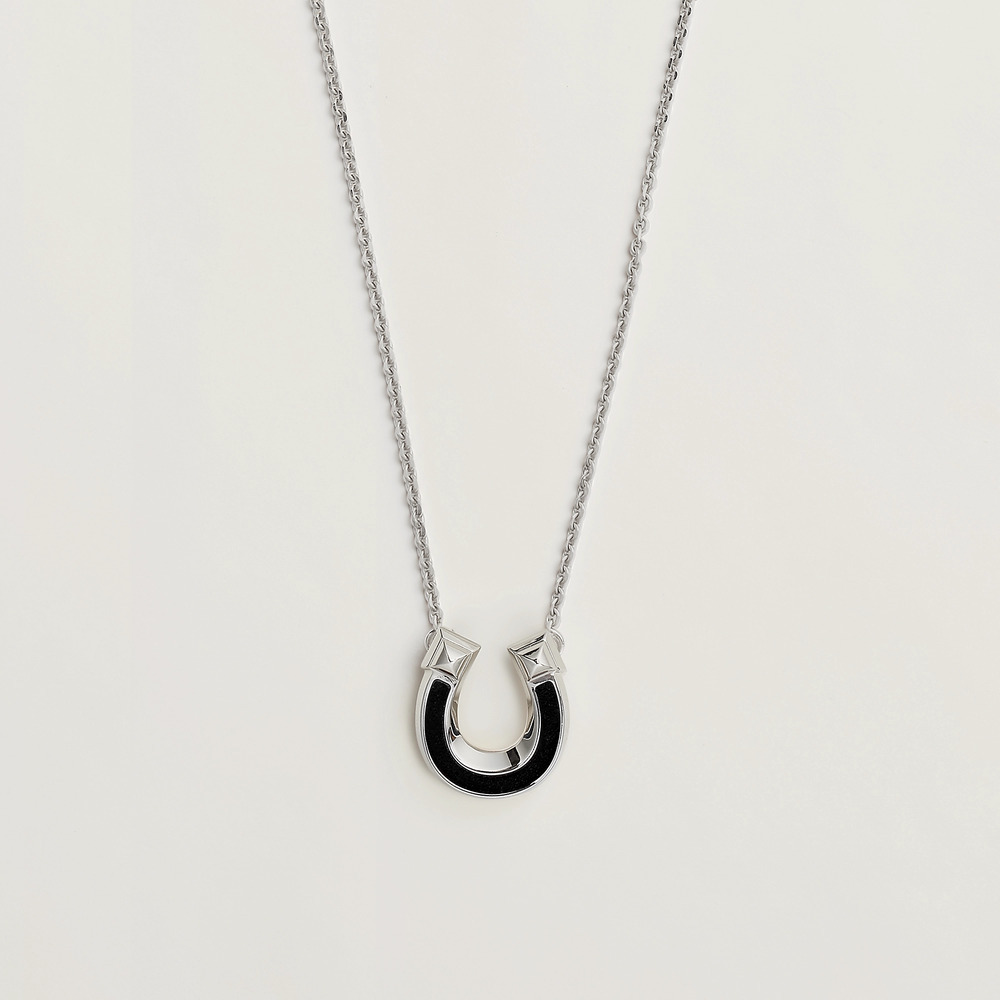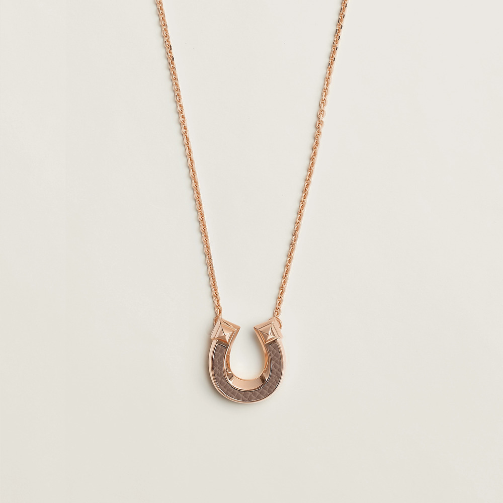 本系列共推出6件项链挂坠作品,采用银色、黄金色和玫瑰金色饰面金属为主材质,可选2种小牛皮——「Box 小牛皮」是 Hermès 使用历史最久的皮革,触感顺滑且自带柔亮光泽;「Epsom 小牛皮」表面热压立体的交叉粒纹装饰,风格自然而亲和。
