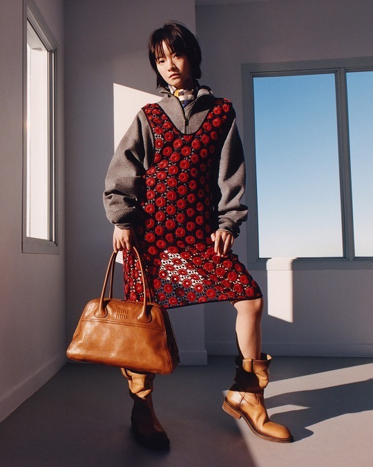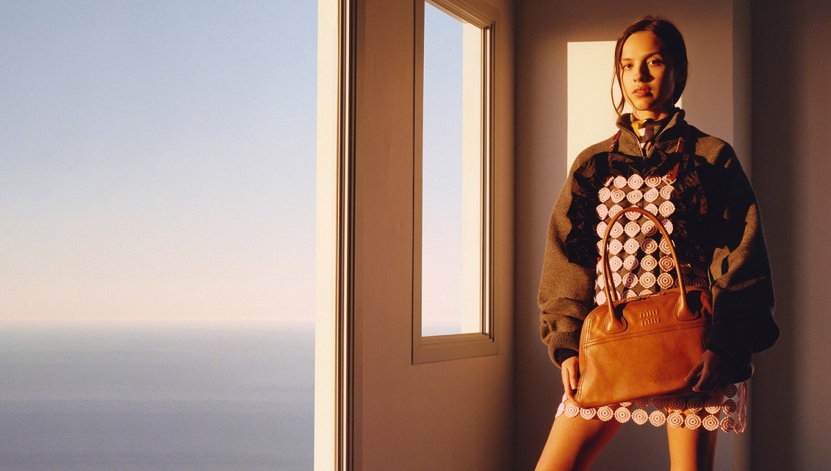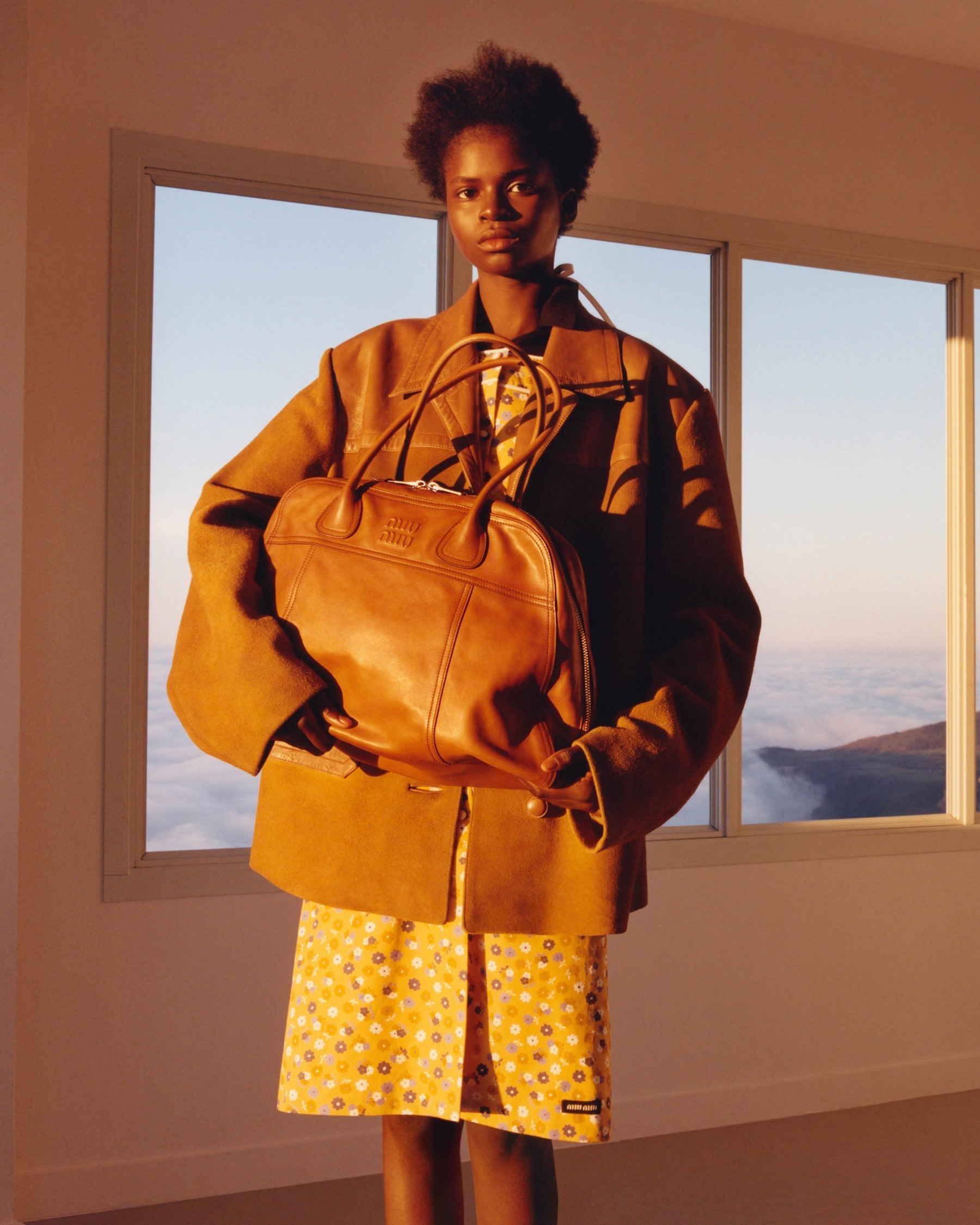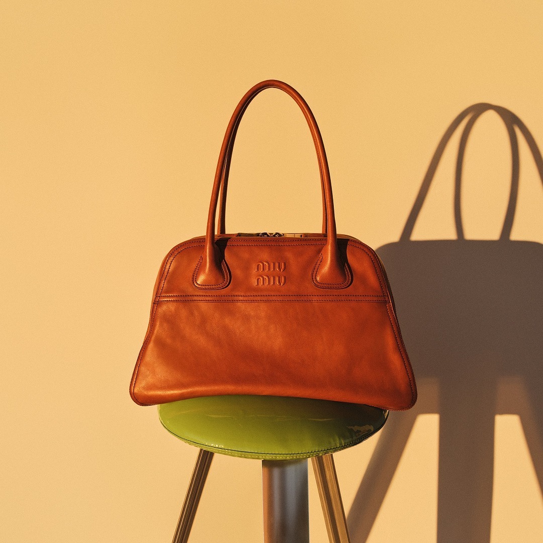 Miu Miu Vivant 手袋出自2026春夏「Manifeste」限时系列,采用 Vitello Antic 仿旧牛皮革塑造富有建筑感的保龄球包型,呈现温润的色泽变化与自然时间感。包包采用梯形轮廓搭配管状皮革双手柄,同色系浮雕压纹徽标和明缝车线注入复古书卷气息,提供小号和大号2种尺寸选择,宽敞容量满足日常需求。包名「Vivant」在法语中意为有生命力的、生动的,巧妙契合这款包包的实用属性。
