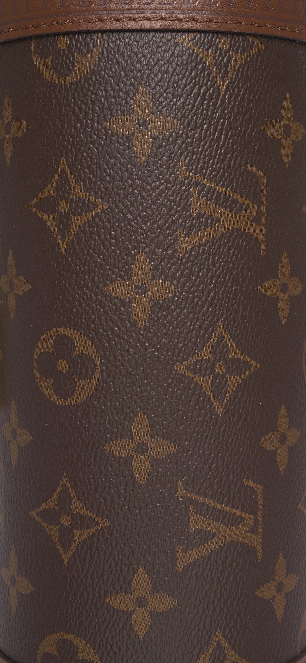 包身主体采用 Monogram 老花帆布打造,具有轻便防水耐磨等优势。小牛皮饰边上整齐压印 LV 徽标并用金属铆钉加固,同样秉承传统制箱工艺。