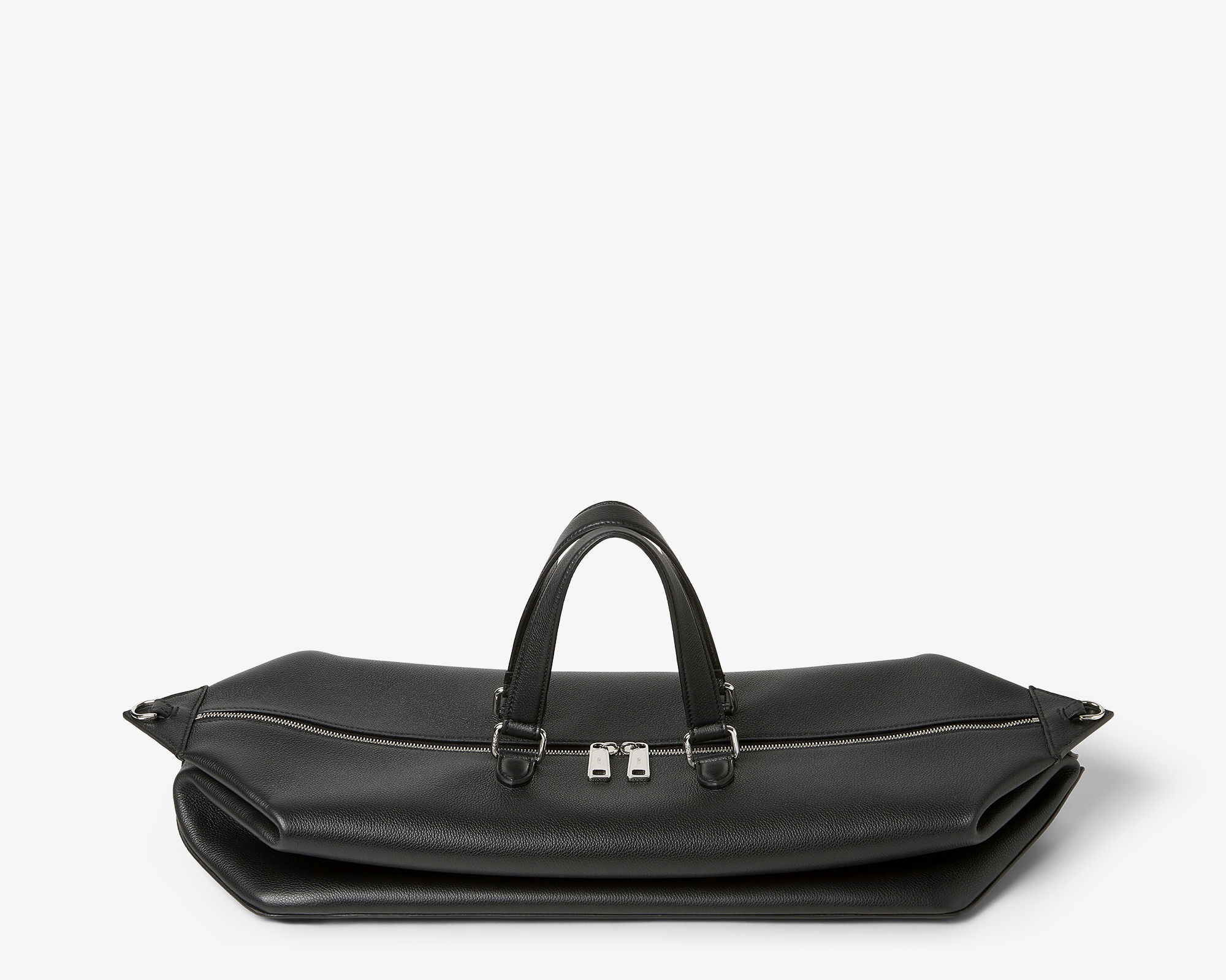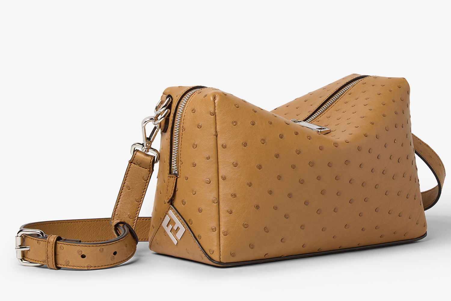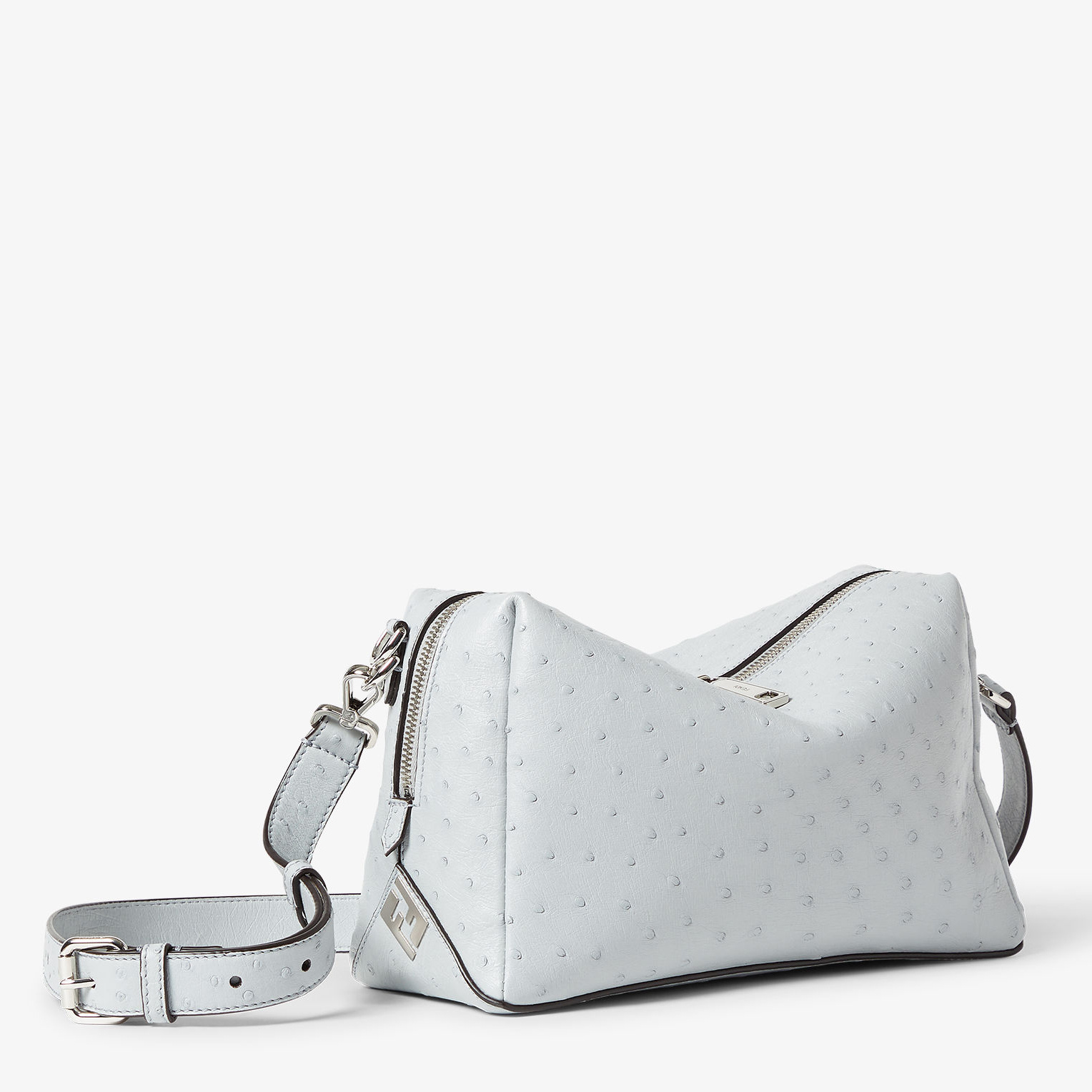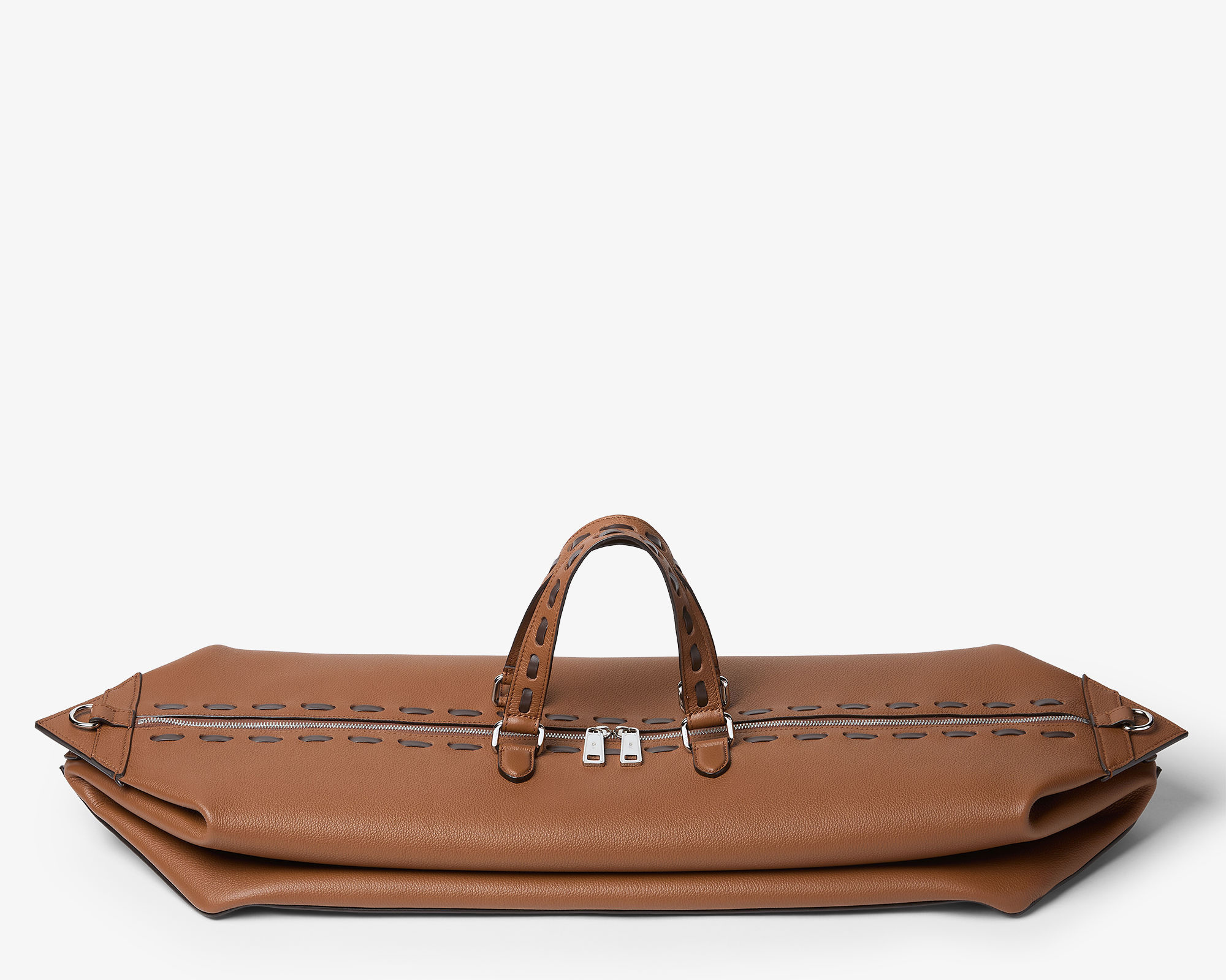 全新 FENDI Lui 行李袋采用柔软的全粒面小牛皮材质,双向拉链开合便于放置大件行李,边角FF金属徽饰作为点睛。包包最大亮点是侧边的按扣设计,空包时可以折叠成扁扁的一片,内部还配有防水尼龙防尘袋,带弹簧扣的皮革绑带可以将包包固定在行李箱的把手上,非常适合旅途使用。推出45厘米宽度和55厘米宽度两种尺寸,里衬为科技布料,配有衬垫提手和可调节可拆卸式肩带,可手提或肩挎。