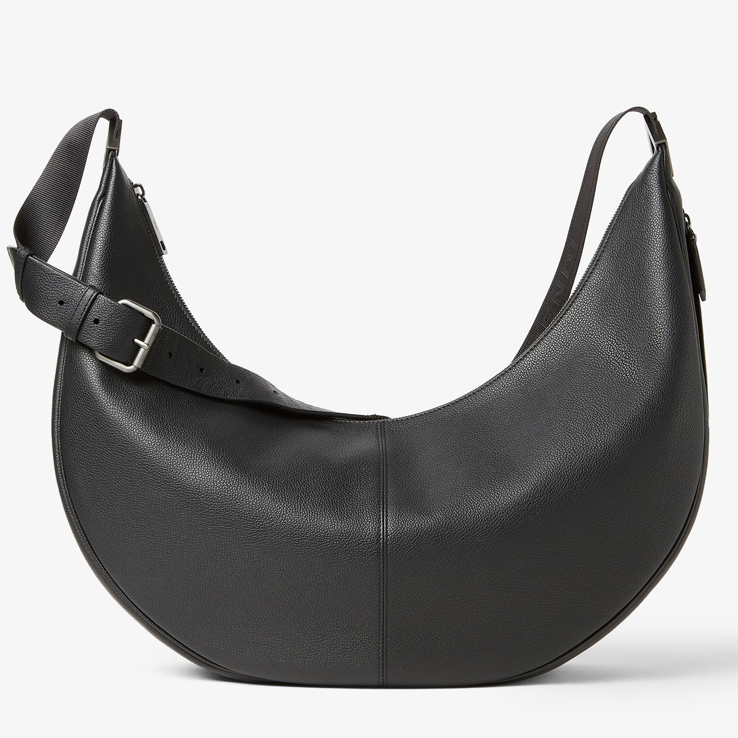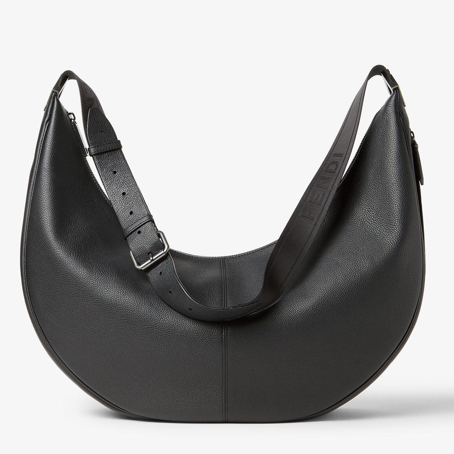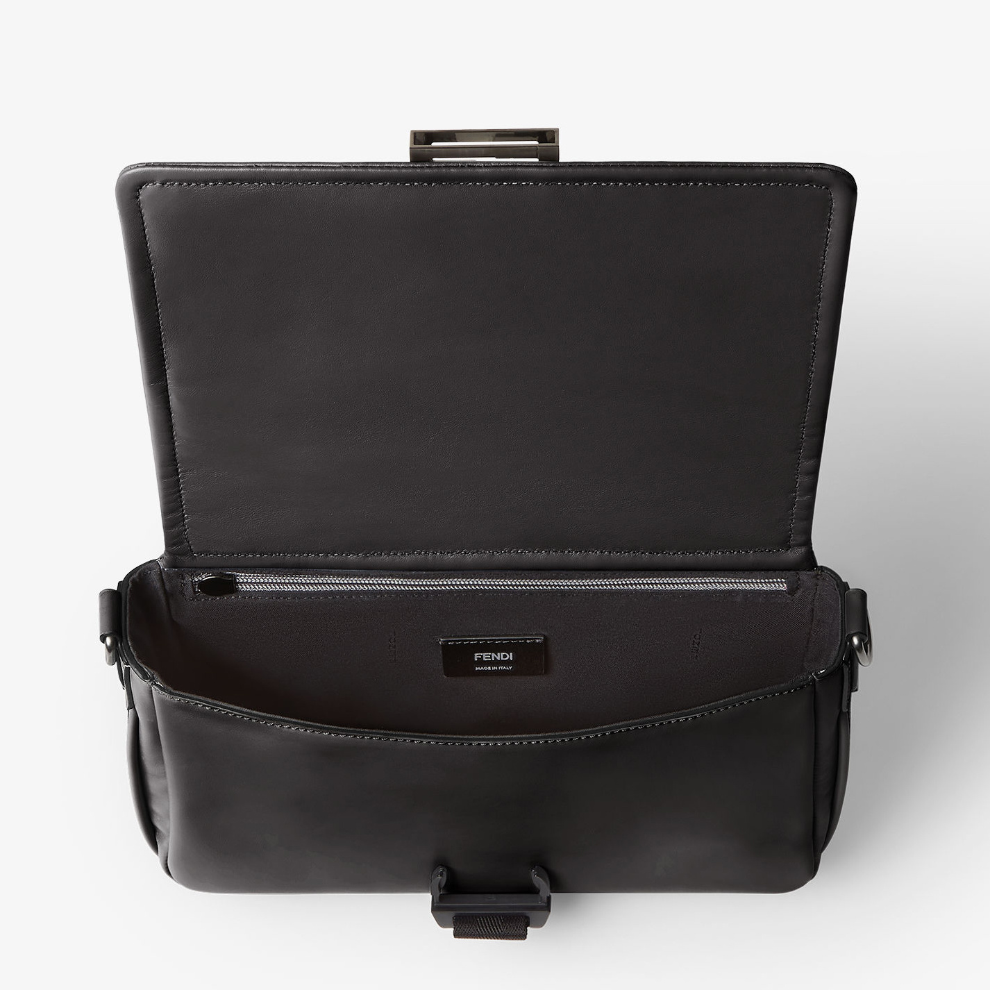 Melon 肩背包推出新款大号尺寸,延续轻松随性的月牙廓形,包包采用黑色全粒面小牛皮制作而成,配有实用侧拉链口袋和FF金属贴花,简约版型调动搭配灵感,探寻日常的无限可能。
