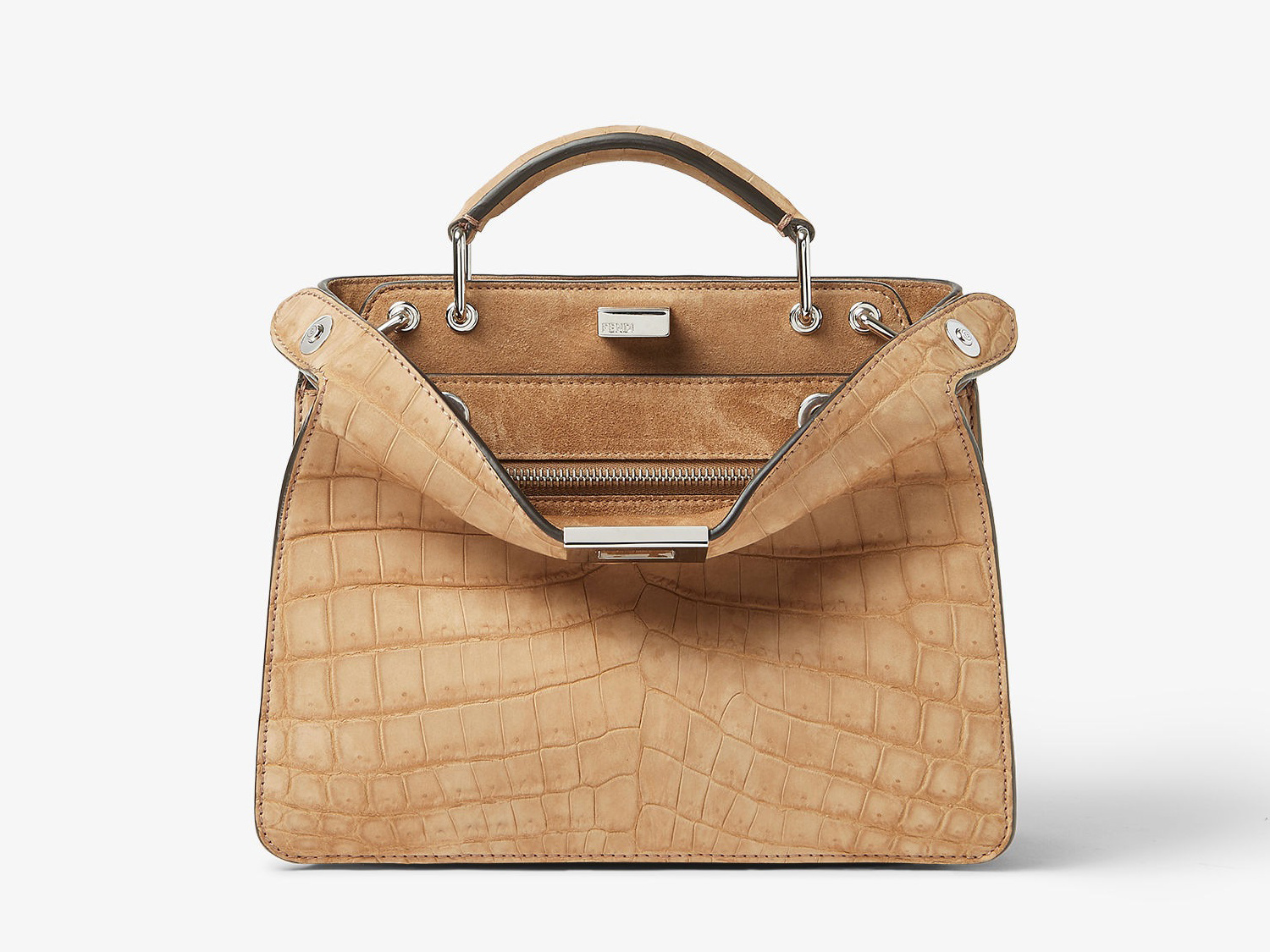 经典款 Lui 中号手袋推出 Selleria 明线装饰款式,以及鸵鸟皮绒面鳄鱼皮等珍稀皮款式,洗练廓形在奢华皮质烘托下流露沉稳低调风度。Peekaboo ISeeU 小号手袋采用驼色鳄鱼皮构筑包身,温润绒面革饰面为包包注入儒雅格调。
