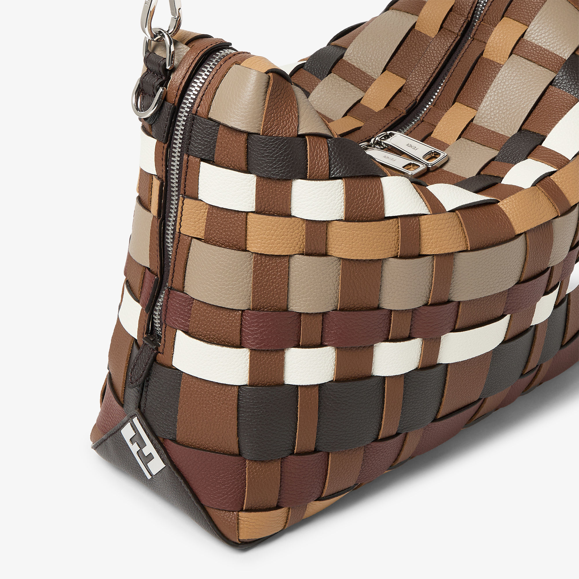 新季小皮具也精彩纷呈,FF Sphera 球形挂饰采用棕色和黑色皮革条手工编织而成,以精湛工艺巧妙呈现FF图案。Ito 小狗挂饰换上黑色和白色波点马毛,或者采用黄色或棕色皮革制作而成,软萌设计为包包增添有爱细节。钥匙扣和卡包采用不同色彩的全粒面皮革拼接镶嵌而成,波浪形剪裁让人联想到起伏的沙丘和海浪,为日常单品注入浪漫意趣。