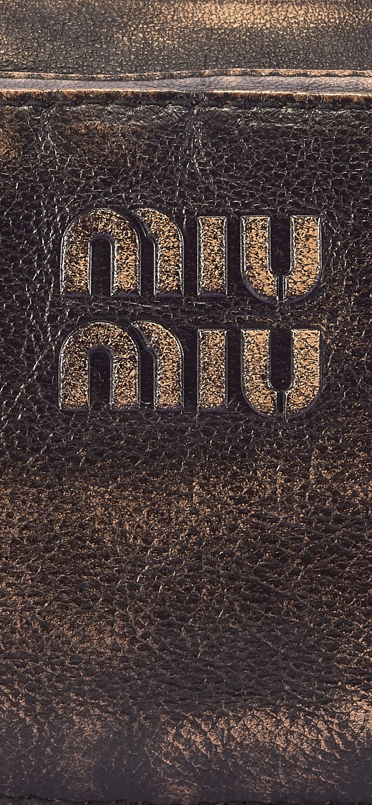 包包衬里为黑色棉缎材质,衬托一枚 Miu Miu 金属徽标贴片。