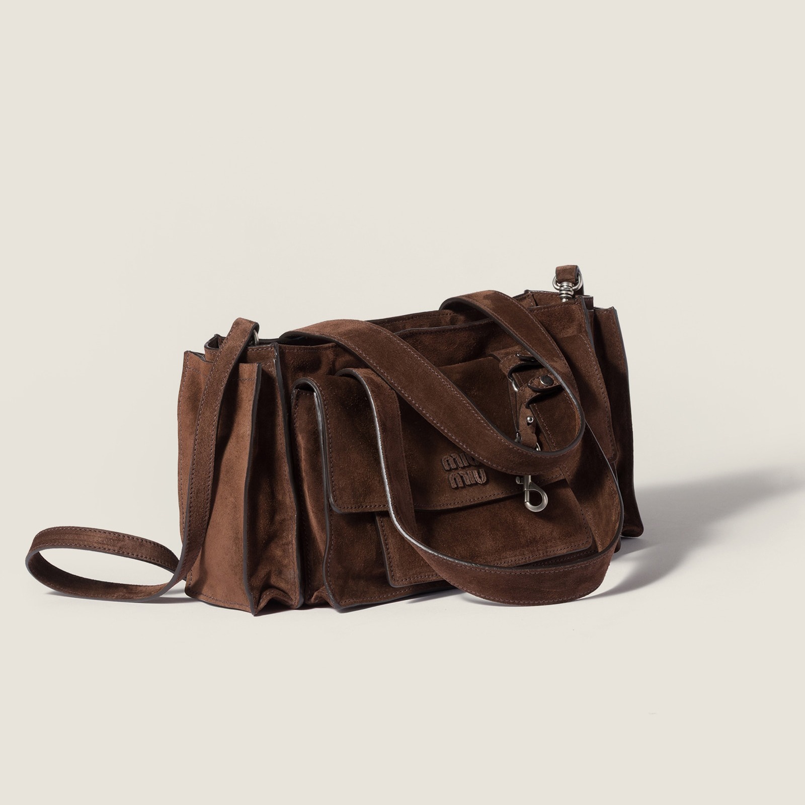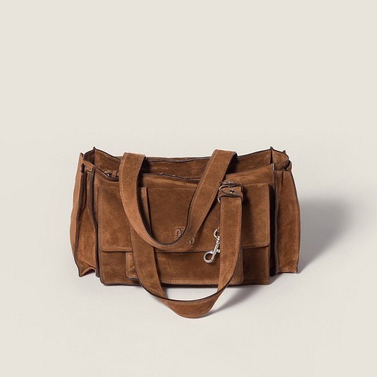新系列共推出手提包和斜挎包2款包型,包包采用绒面小牛皮材质搭配棉缎衬里,深棕和可可棕两种配色自带复古韵味。手提包采用方正的矩形轮廓搭配顶部拉链开合,双手柄和可拆卸肩带实现手拎、肩背、斜挎等多种背法。多功能口袋设计为包包注入帅气工装风格——包包正反两面各有一只大容量翻盖口袋,两侧为磁扣外袋,大大小小的口袋让收纳变得井然有序,兼具颜值和功能。