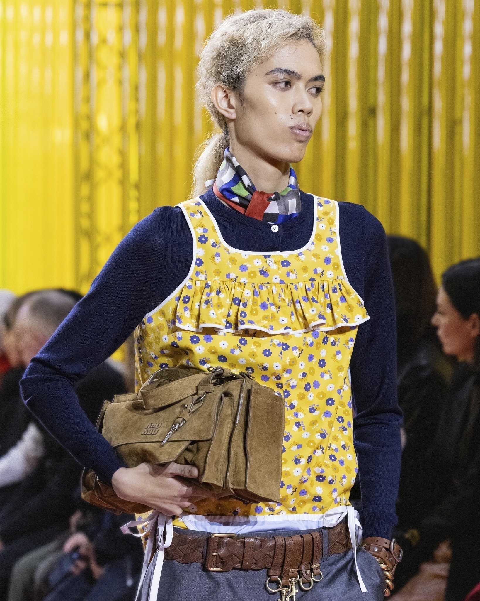 斜挎包采用利落矩形结构搭配休闲舒适的宽肩带,可调节长短实现单肩或斜挎背法。包包前后左右共有3只翻盖口袋和2只磁扣侧袋,便于收置手机、耳机、钥匙、口红等常用物品,正面点缀同色系 MIU MIU 皮革徽标,手绘油边和钢制五金饰件为包包增添怀旧气息。肩带上设有多个金属扣环,用于搭配各种个性挂饰。焦糖棕色系中性百搭,配成情侣或者闺蜜包包也非常出彩。