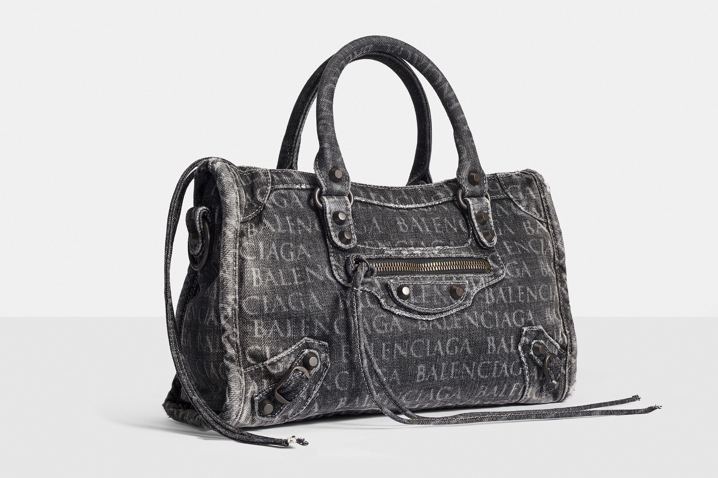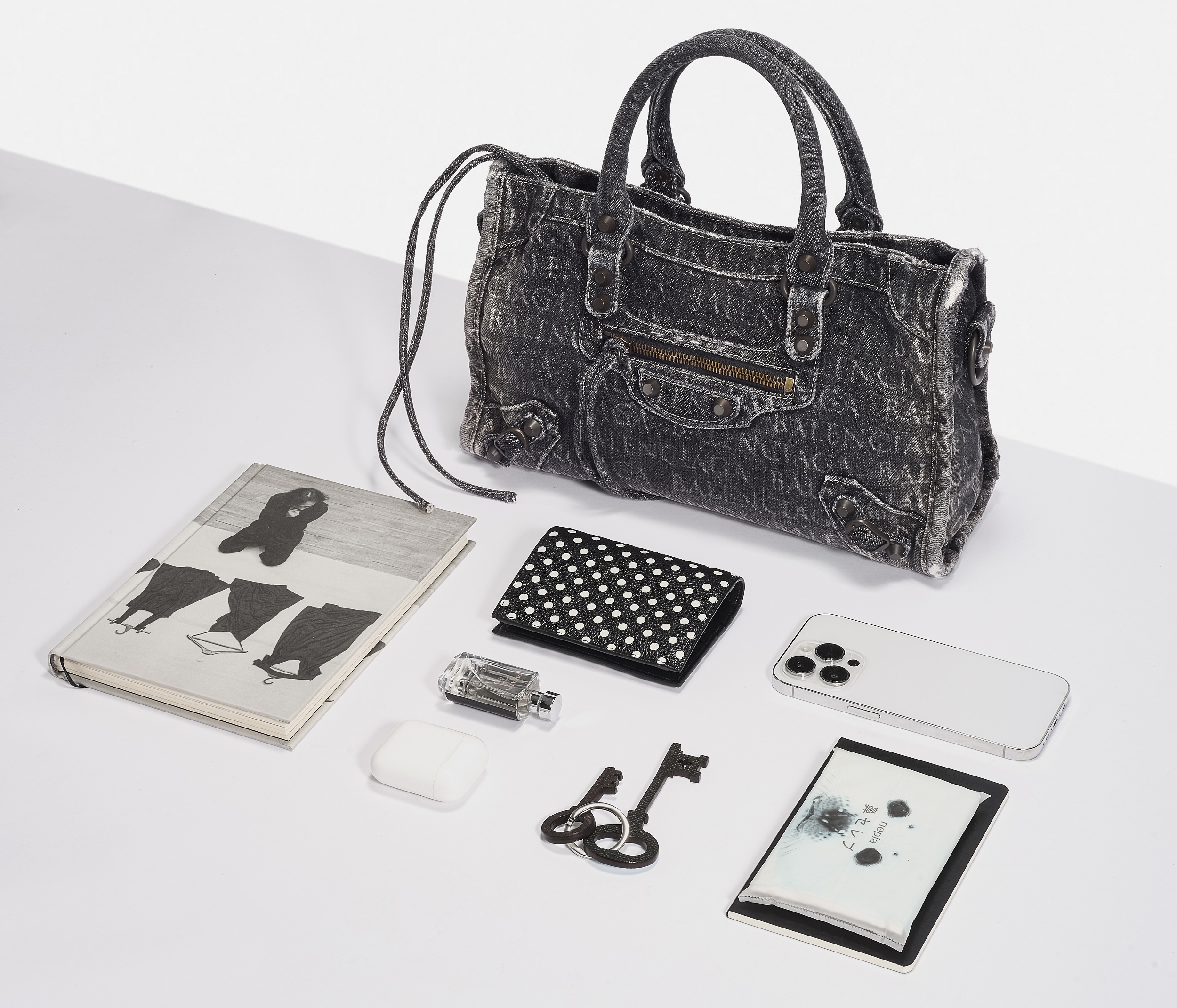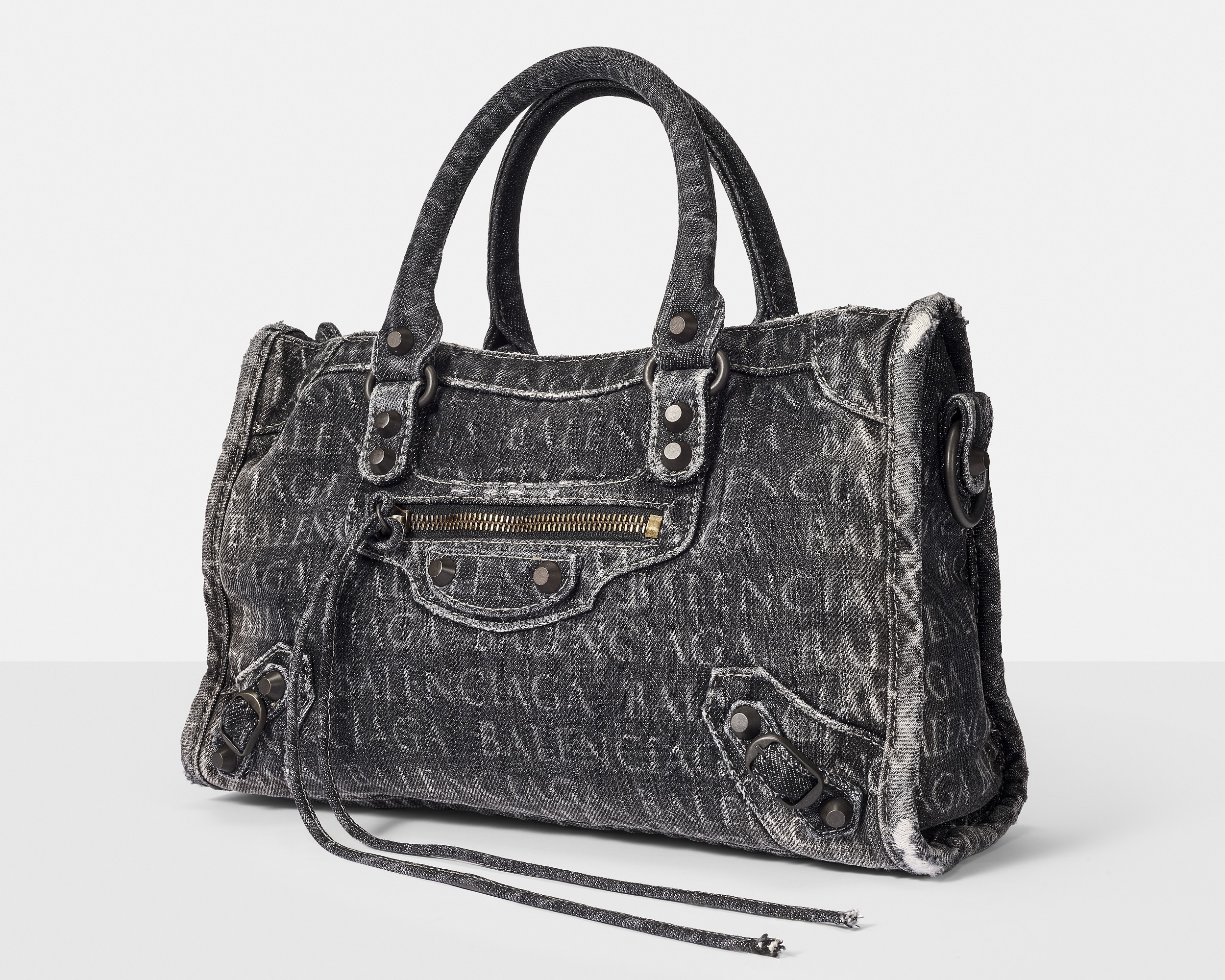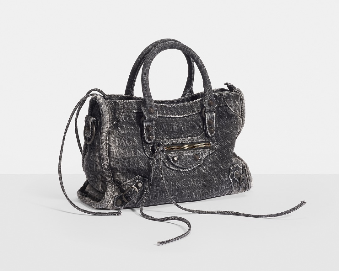 粗粝又坚韧的牛仔材质与机车包的风格也颇为契合——诞生于2001年的 Le City 手袋是 Balenciaga 最具标志性的手袋作品,设计初衷是「为女孩们创造一款骑机车时也能搭配的帅气包包」。包包采用无 Logo 设计,标志性元素是金属铆钉、皮绳拉链头和特殊洗旧处理的皮质,整体外观粗犷而中性,颠覆了当时以优雅为标准的主流审美风格。