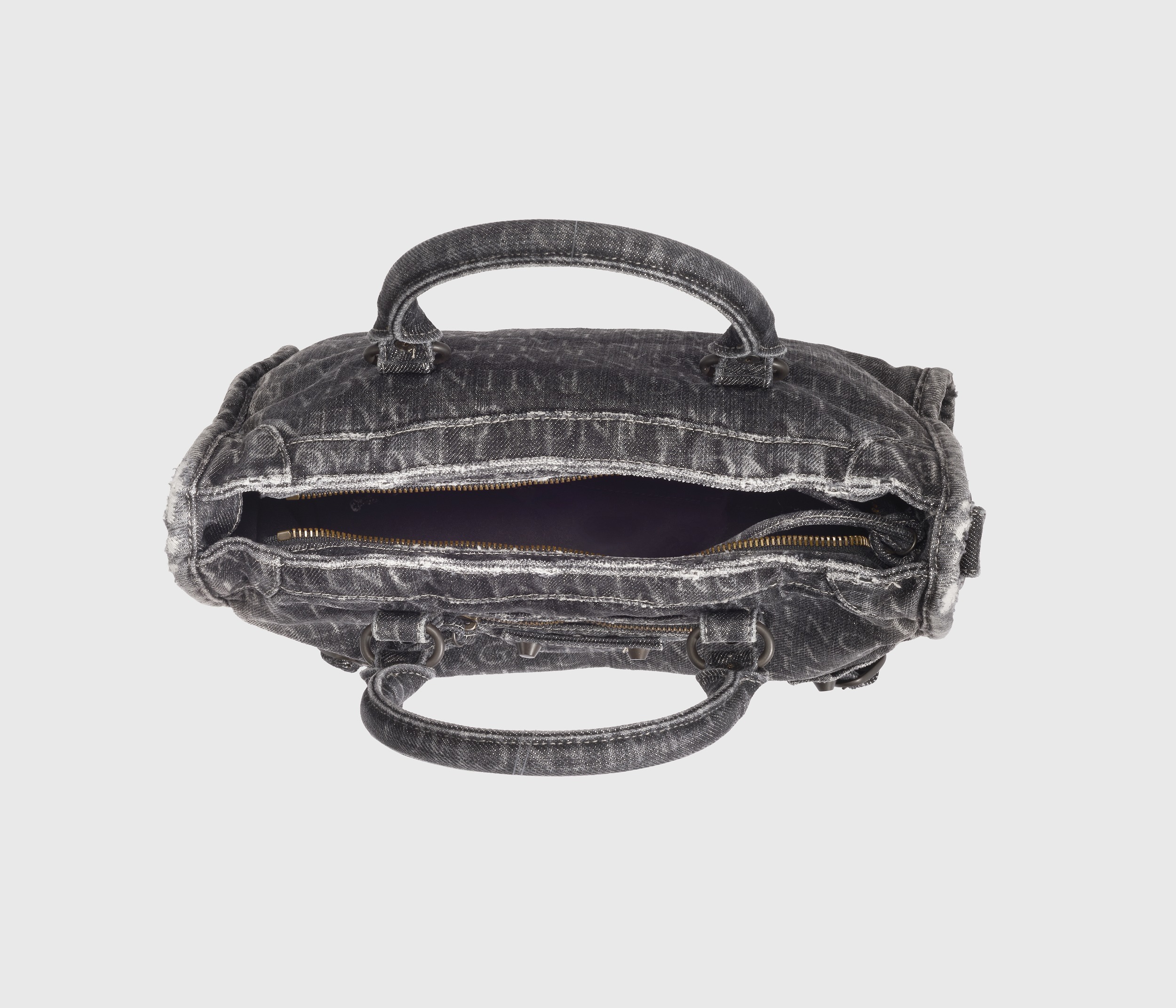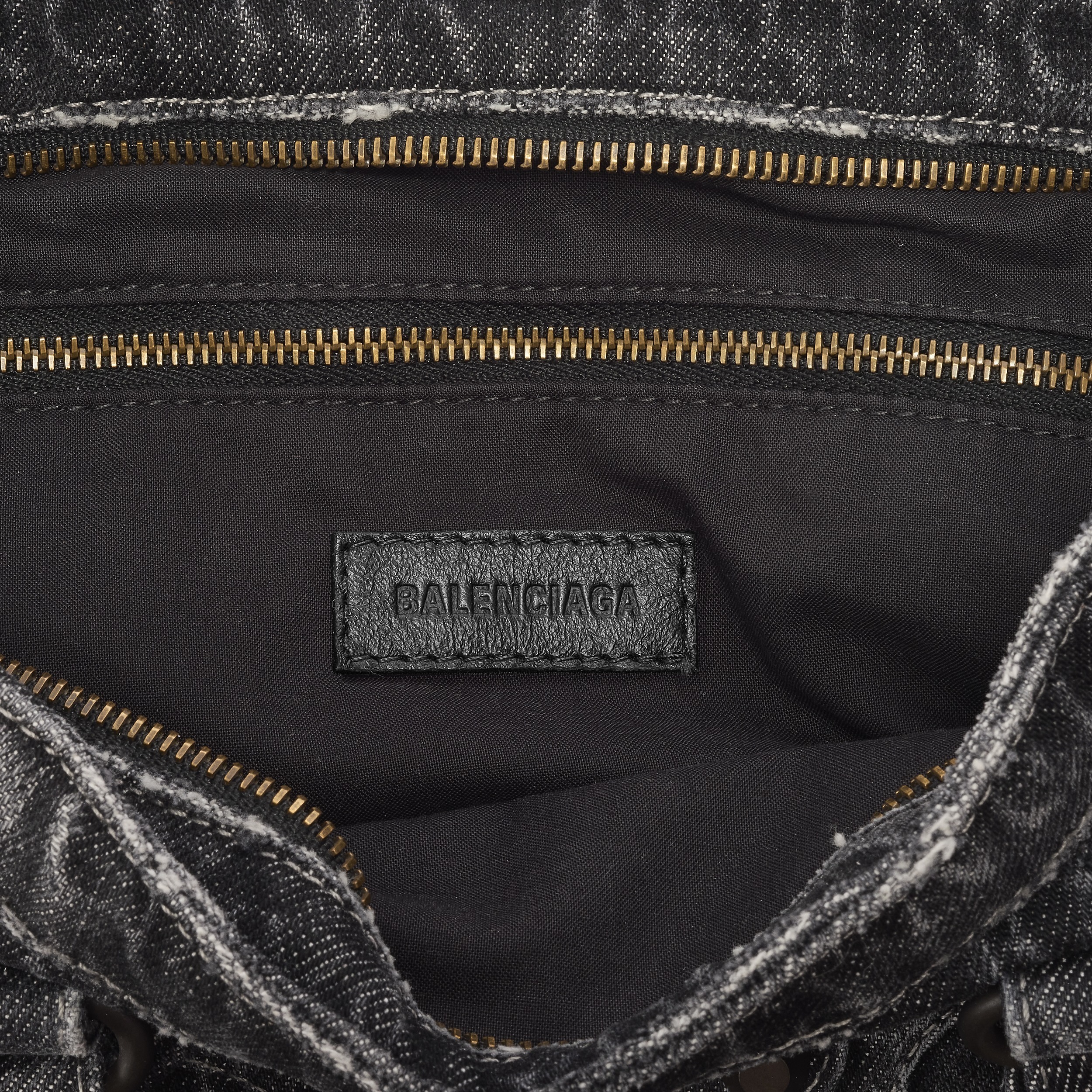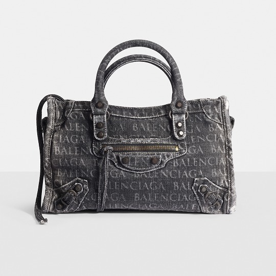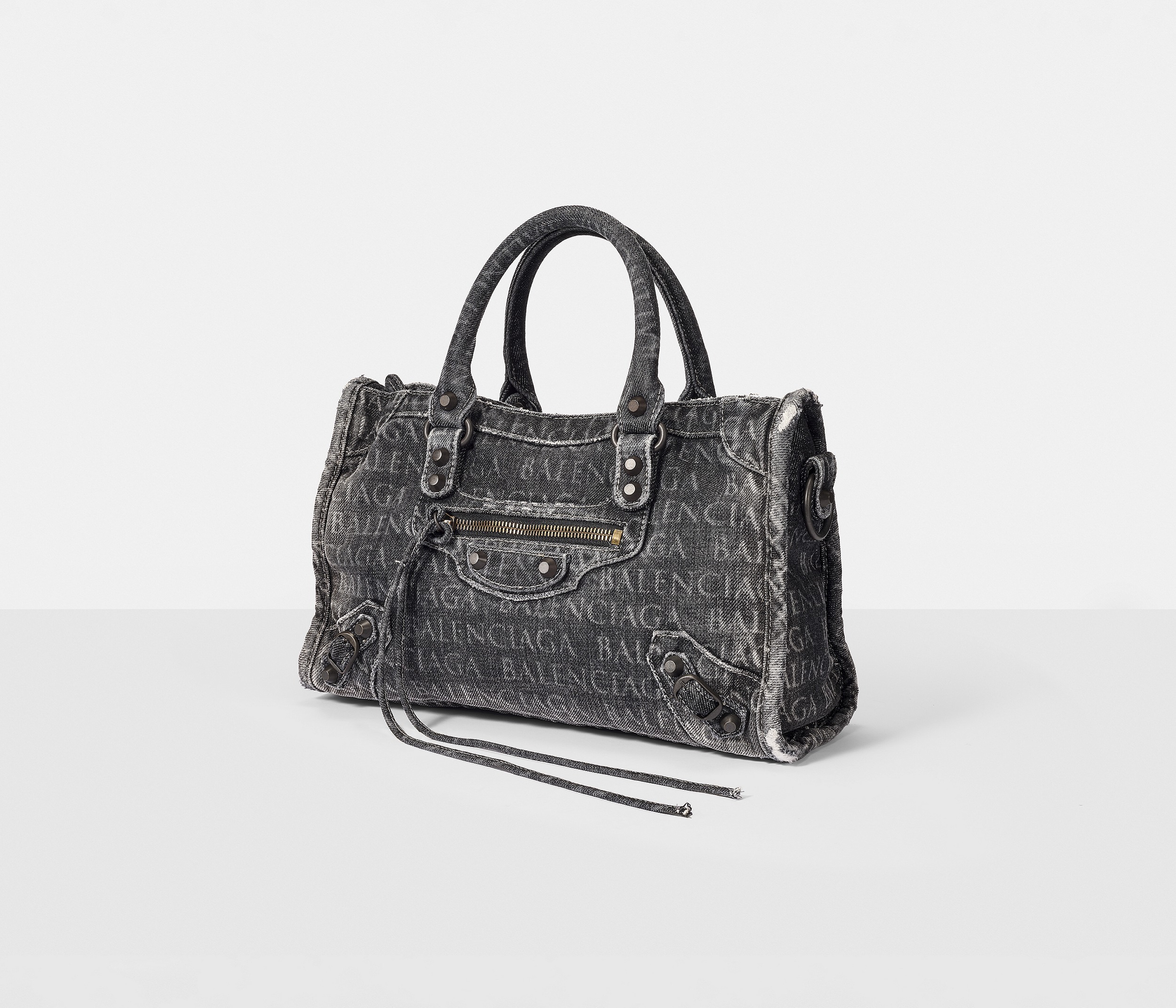粗粝又坚韧的牛仔材质与机车包的风格也颇为契合——诞生于2001年的 Le City 手袋是 Balenciaga 最具标志性的手袋作品,设计初衷是「为女孩们创造一款骑机车时也能搭配的帅气包包」。包包采用无 Logo 设计,标志性元素是金属铆钉、皮绳拉链头和特殊洗旧处理的皮质,整体外观粗犷而中性,颠覆了当时以优雅为标准的主流审美风格。
