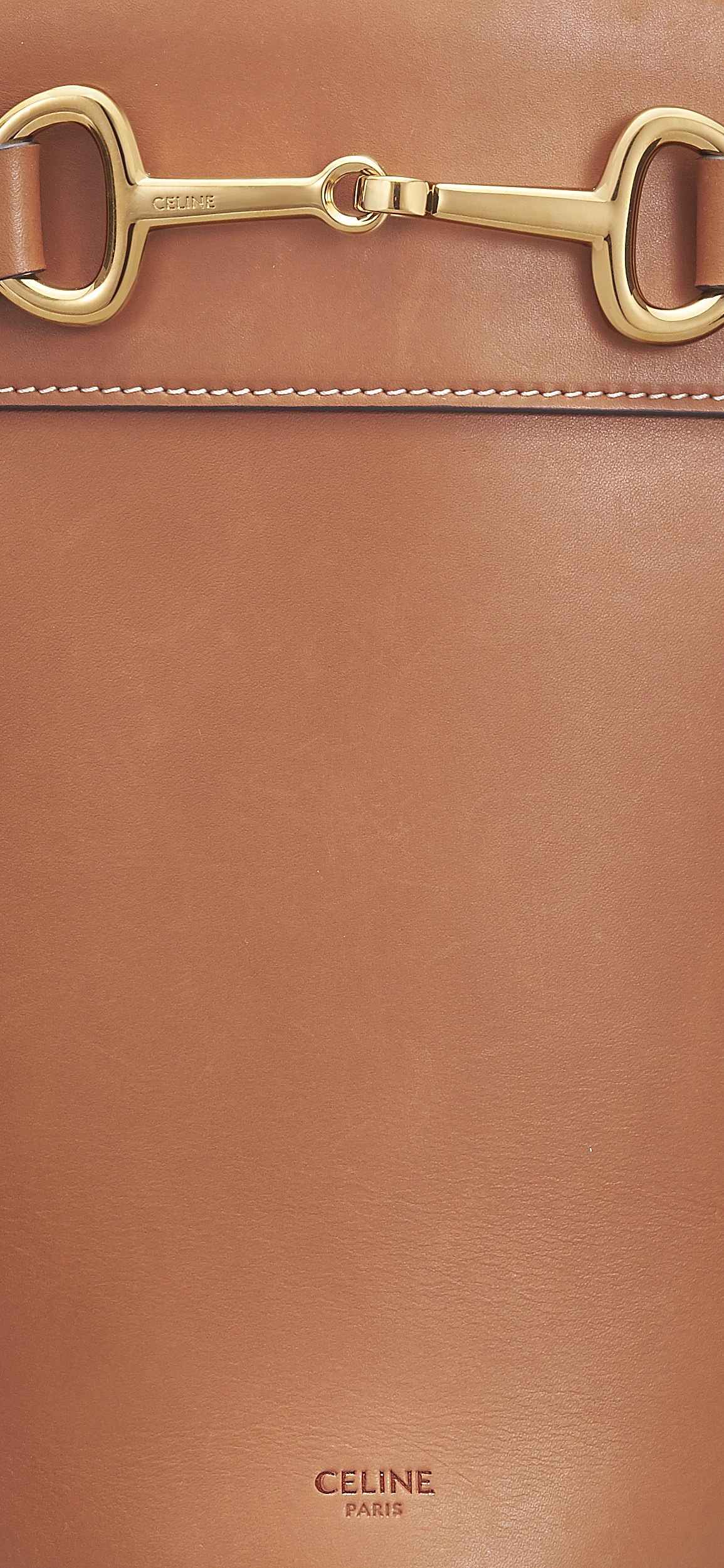 马衔扣是这只包包上唯一的五金装饰,通过皮带扣固定在包口马鞍形部分,D型衔环一侧镌刻 CELINE 标识,低调而精致。