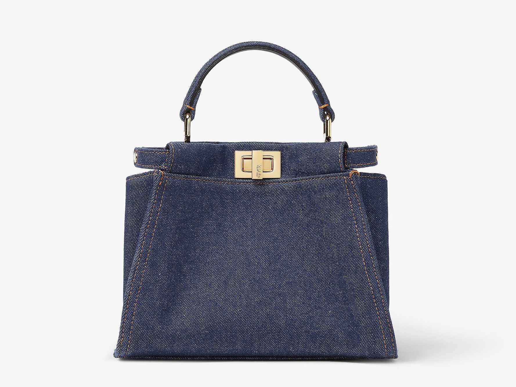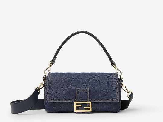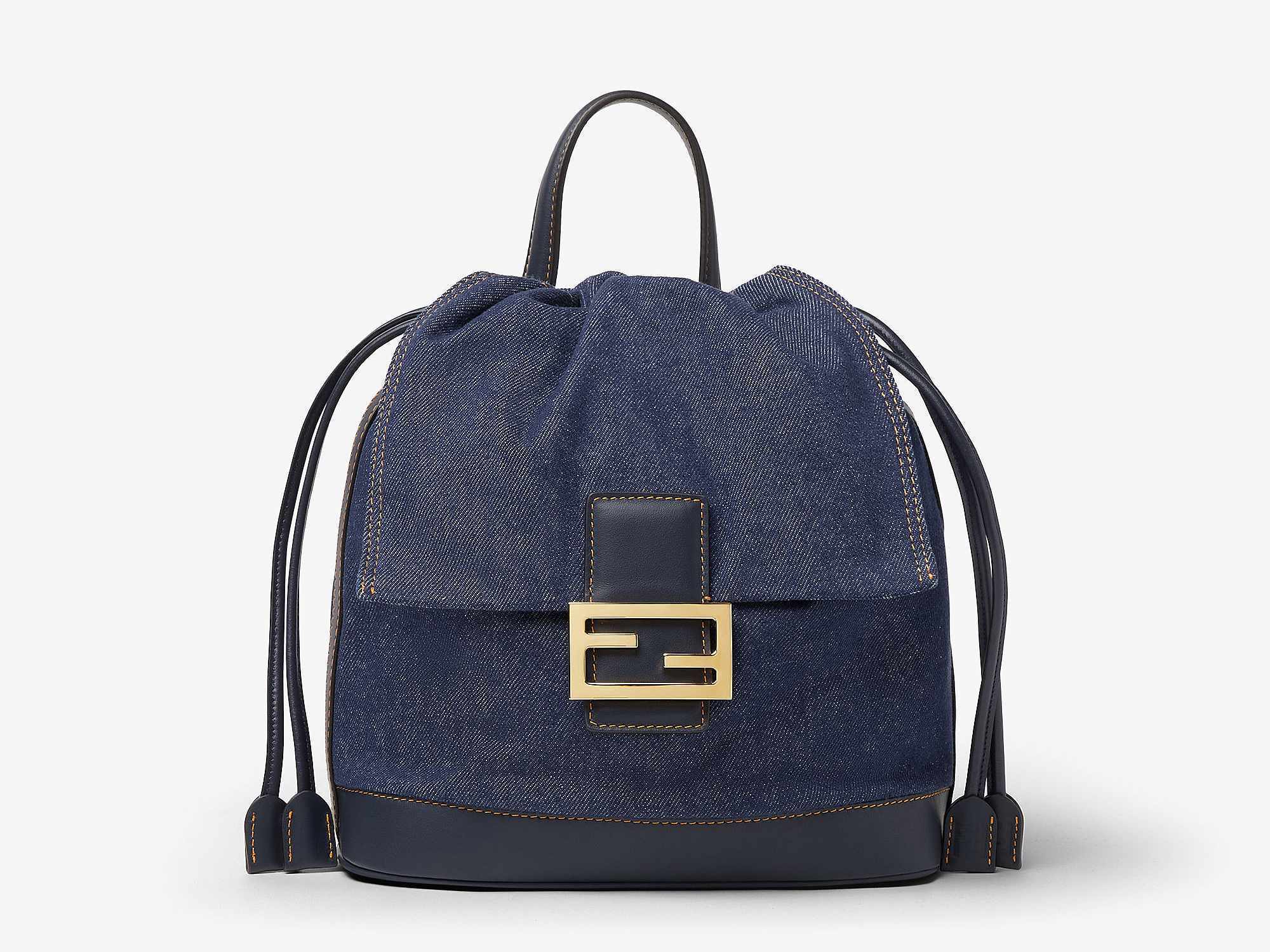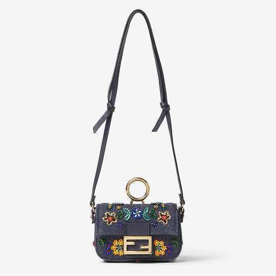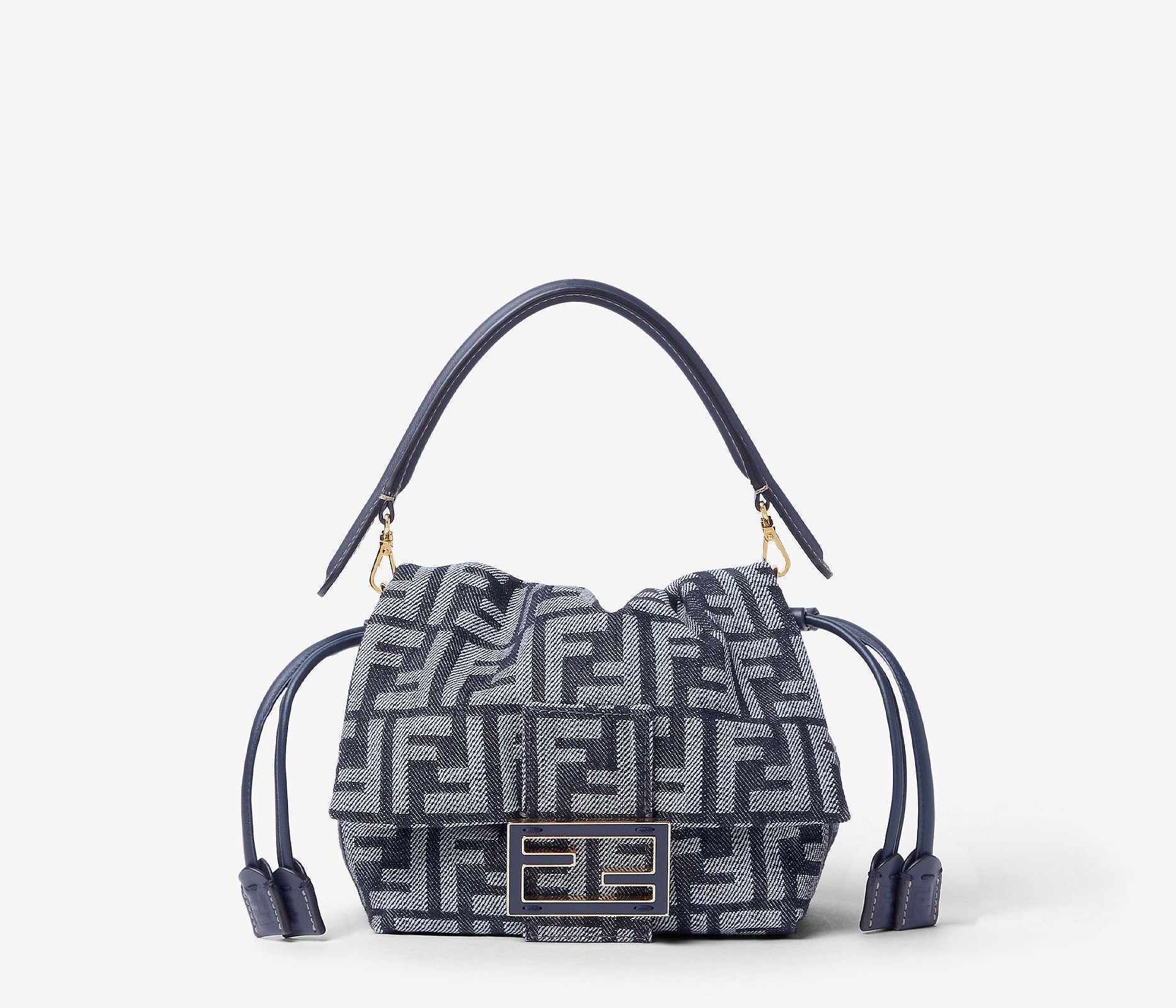 这组包包以深蓝色牛仔布为主要材质,通过镂空刺绣或串珠工艺在包身妆点浪漫花卉元素,或以纯色极简设计、FF提花布料登场,复古丹宁营造出轻松街头气息。