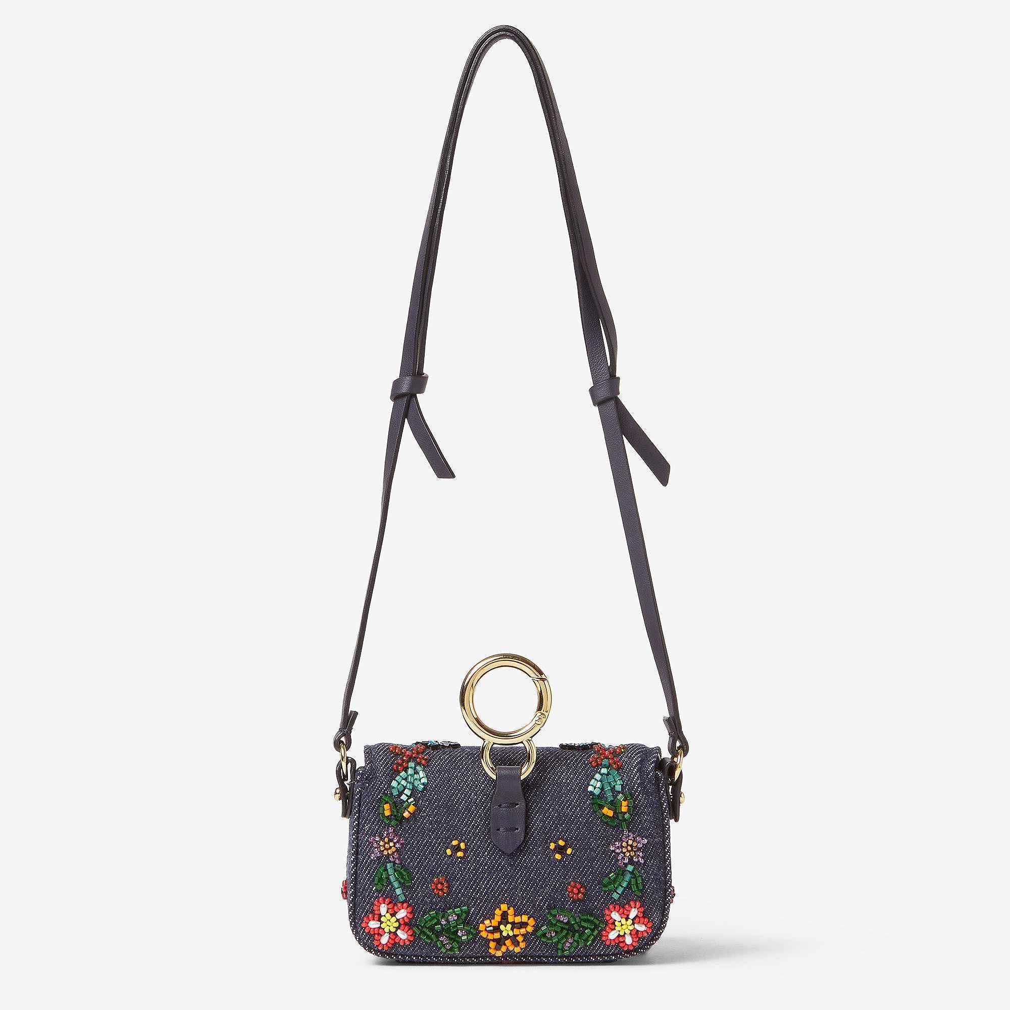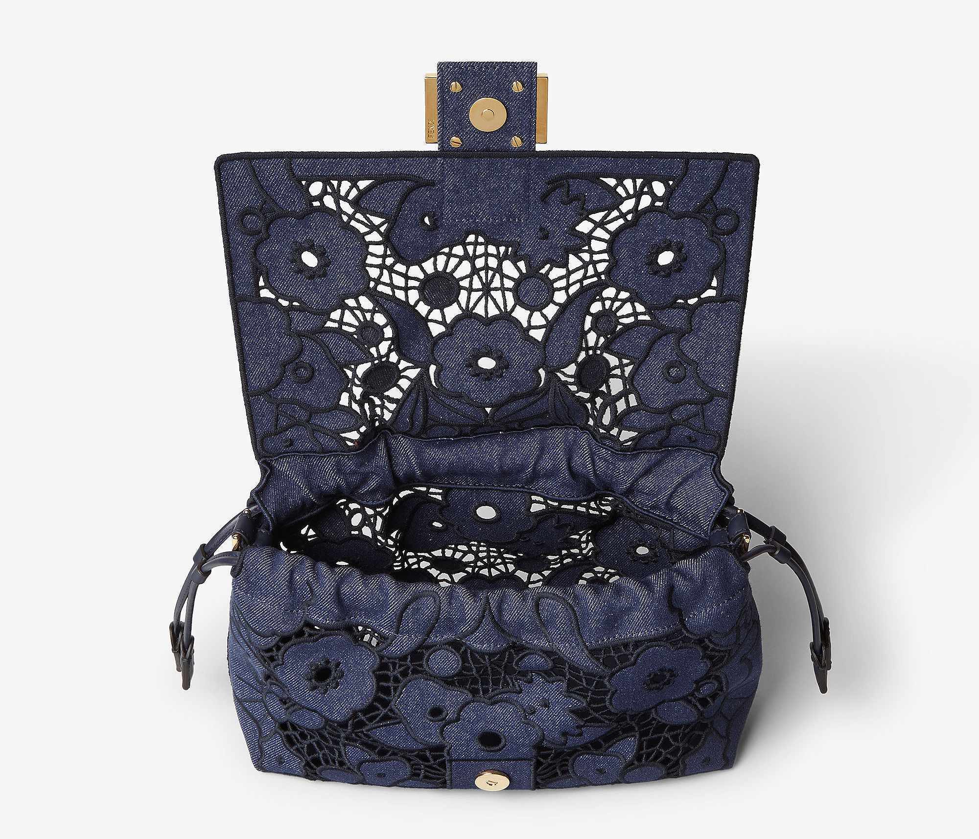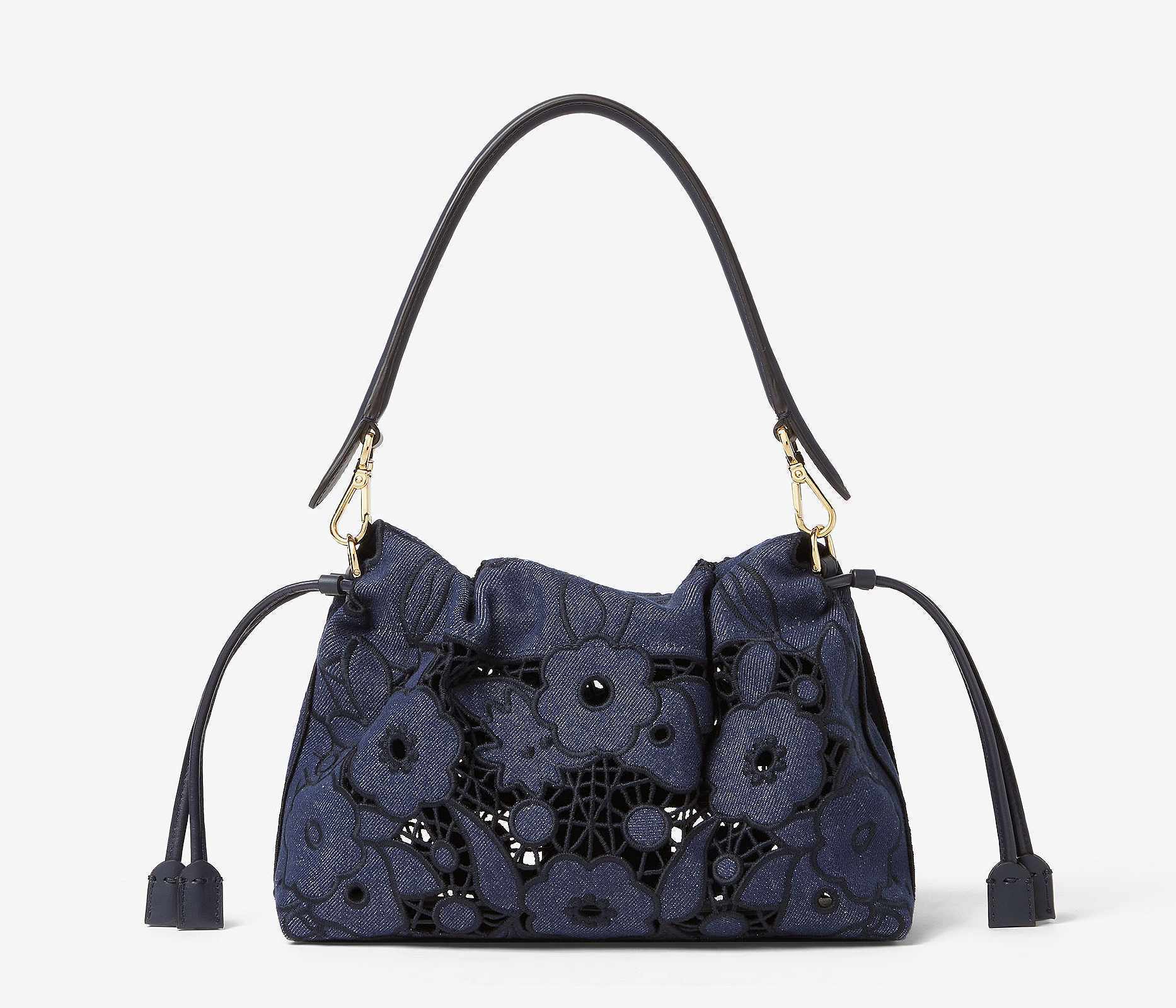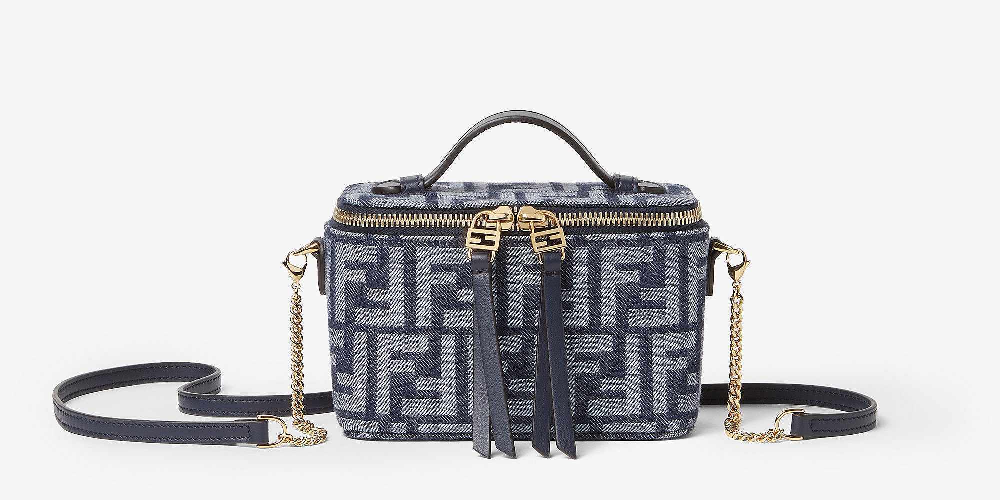 这组包包以深蓝色牛仔布为主要材质,通过镂空刺绣或串珠工艺在包身妆点浪漫花卉元素,或以纯色极简设计、FF提花布料登场,复古丹宁营造出轻松街头气息。