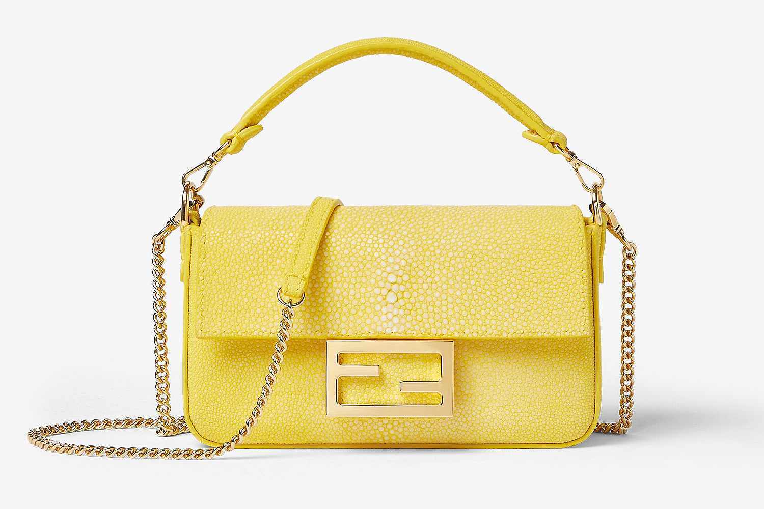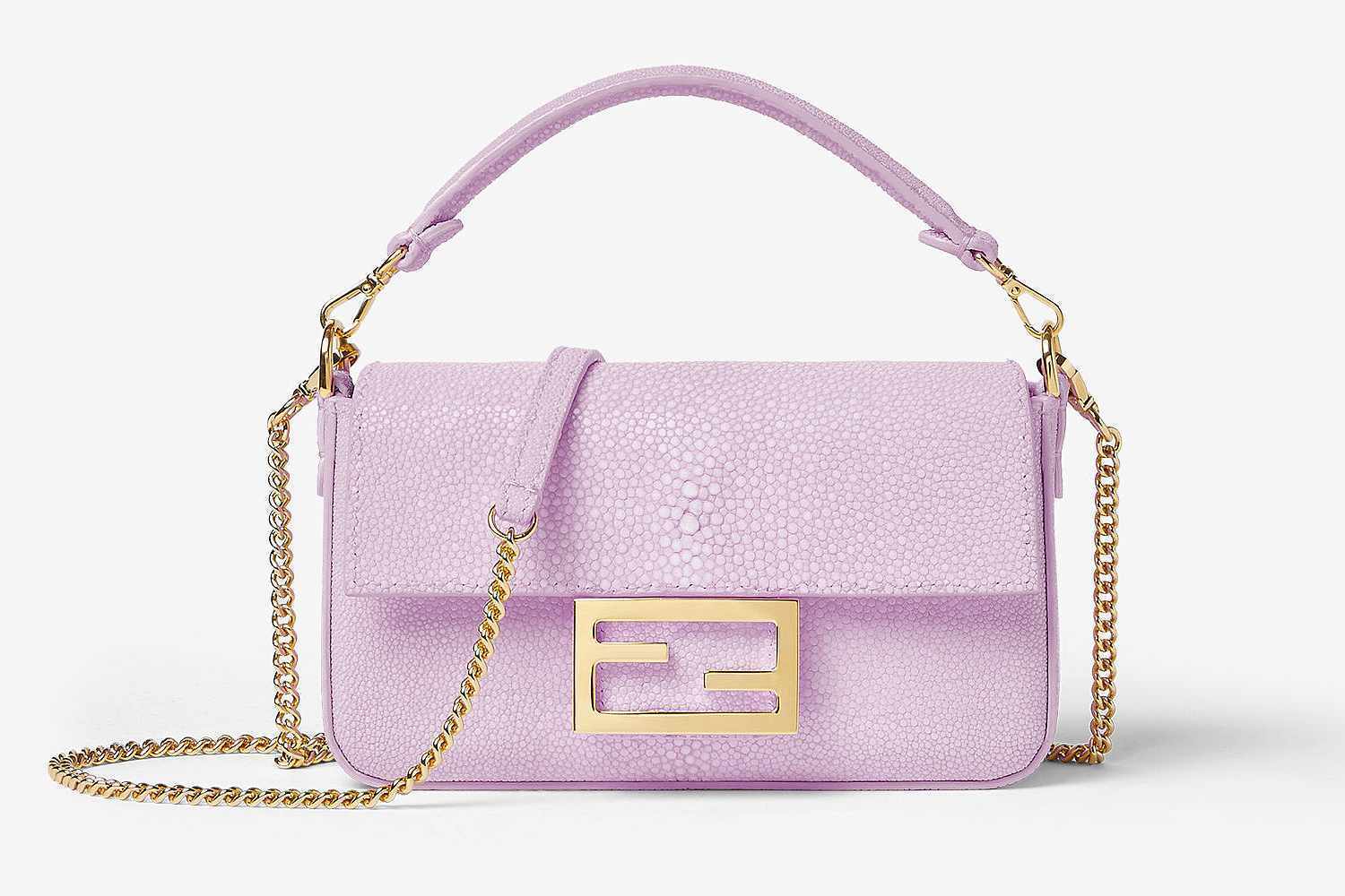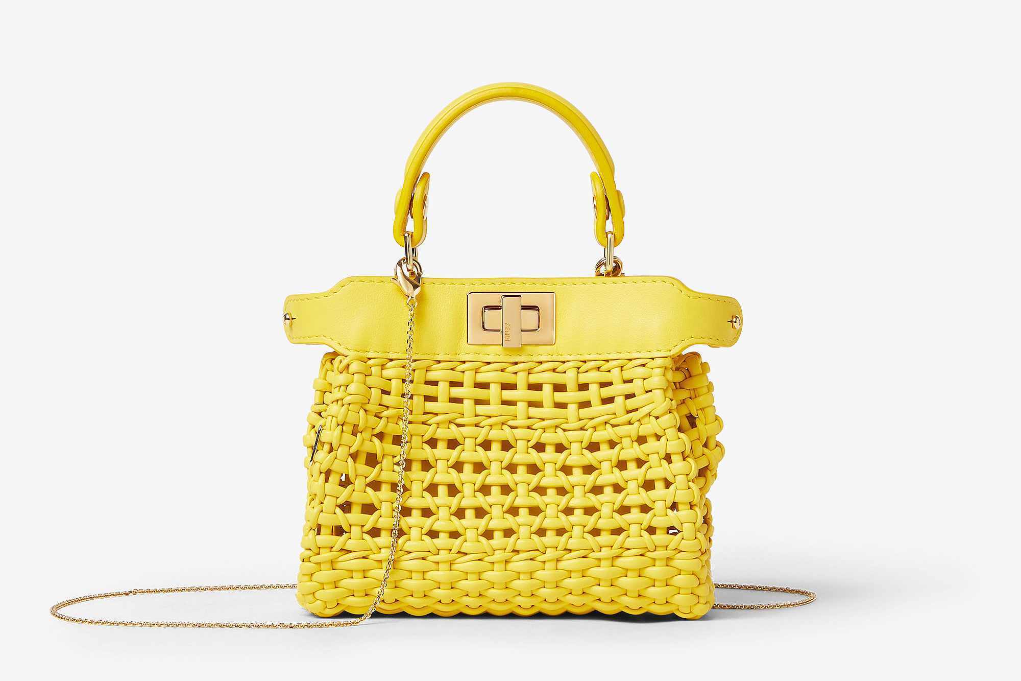 Peekaboo ISeeU Petite 手袋和 Baguette 迷你手袋采用富有光泽感的珍珠鱼皮制作而成,搭配青绿、日光黄、银莲花紫等清新糖果色调,为穿搭注入轻快活力。另一组 Peekaboo ISeeU Petite 手袋在蟒蛇皮鳄鱼皮上渲染水彩花卉图腾,营造出浪漫意境。